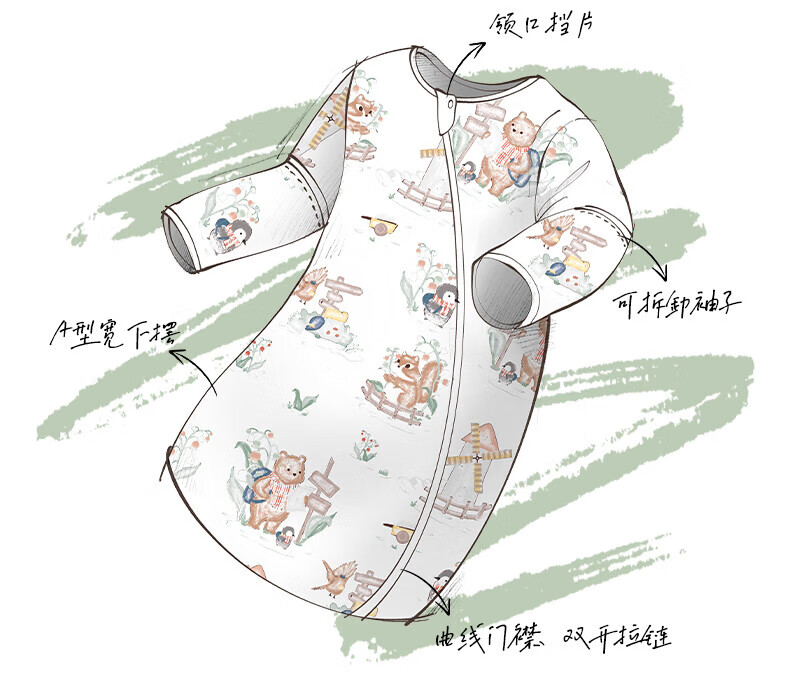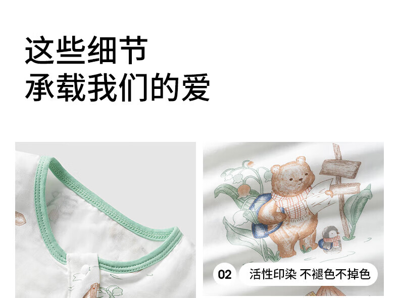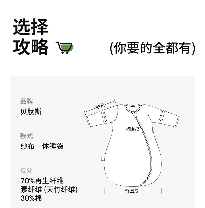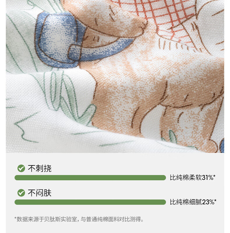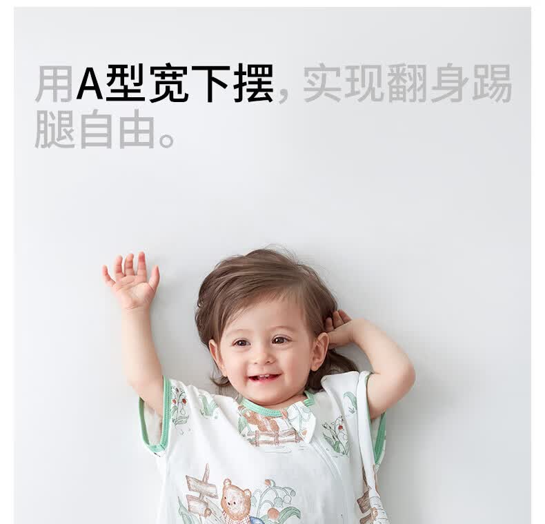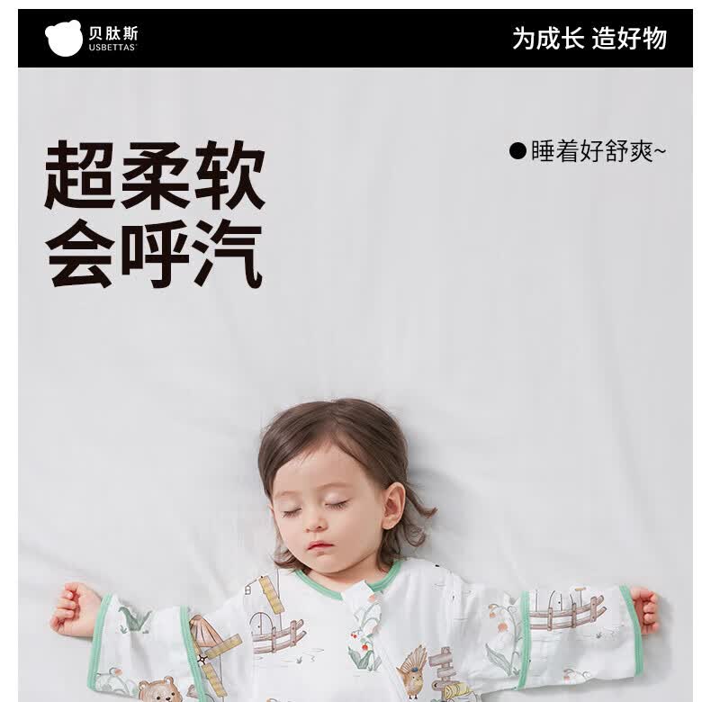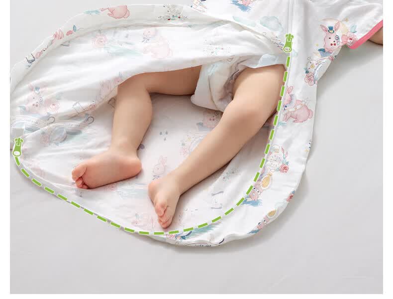 贝肽斯婴儿睡袋春秋竹棉纱布宝宝睡衣一体儿童防踢被睡袋前6后4乔兔 M