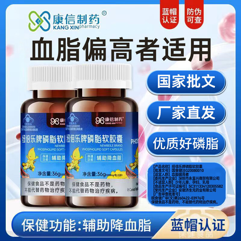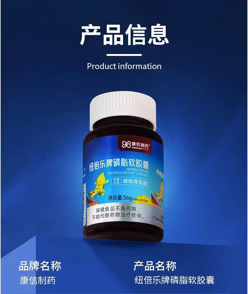 康信制药磷脂软胶囊30粒辅助降血脂偏高者适用大豆卵磷脂酰胆碱蓝帽认证 康信制药磷脂软胶囊 30粒*5瓶