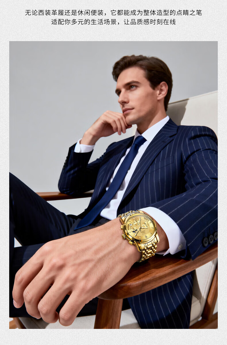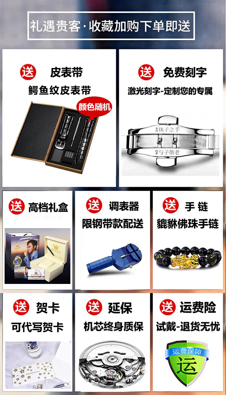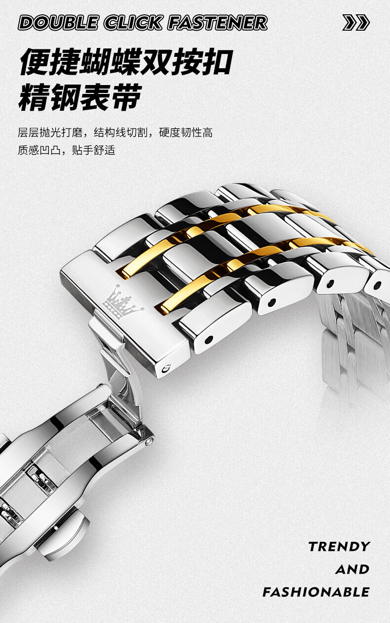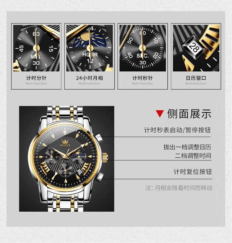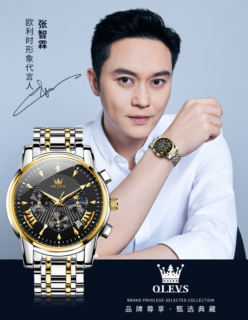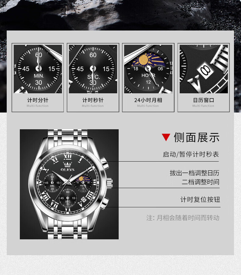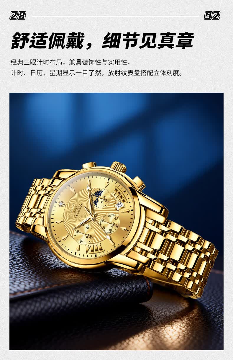 欧利时(OLEVS)瑞士认证品牌十大名表2026新款手表男石英表夜光防水商务男士手表 典藏版2871钢带全黑 免费刻字 终身质保