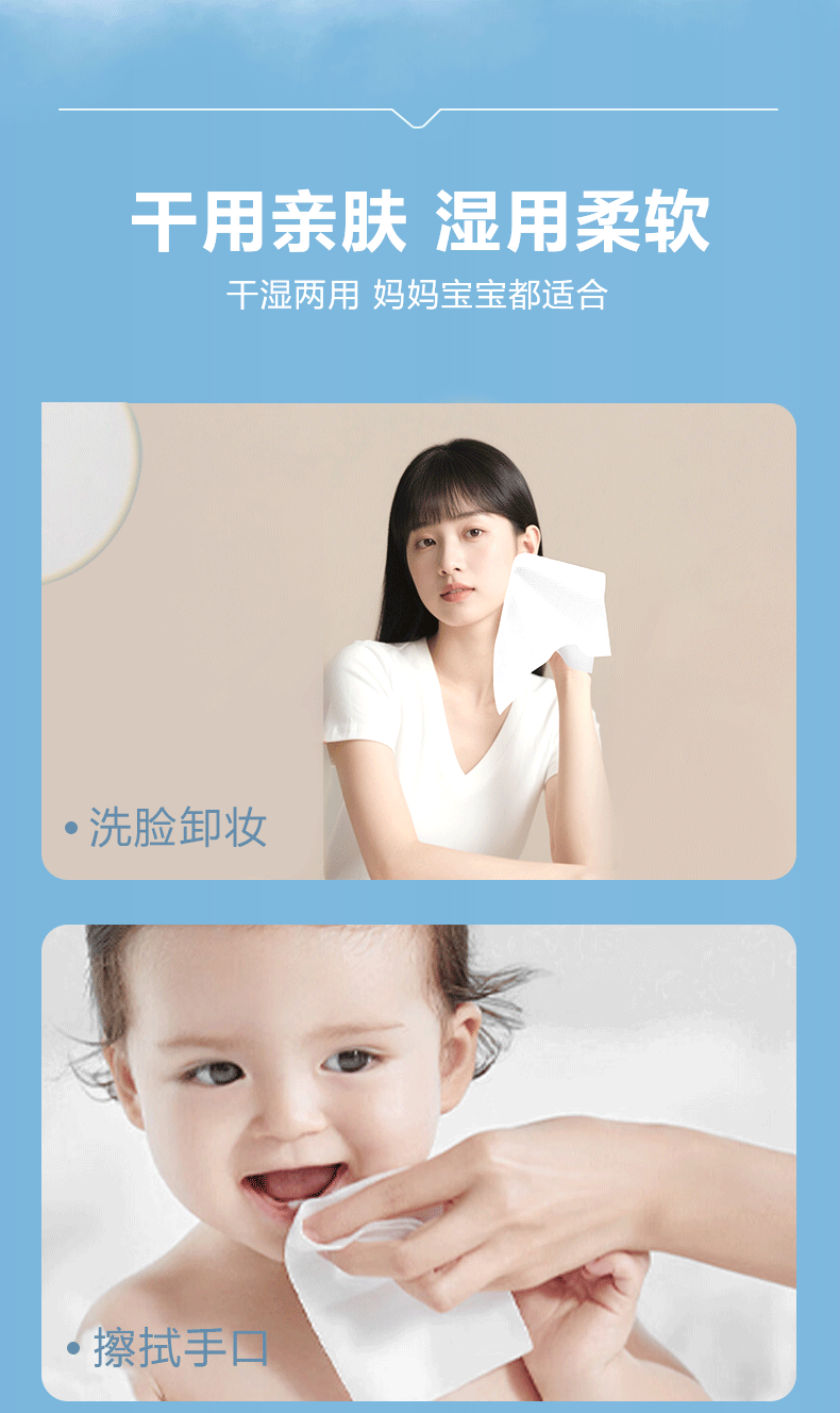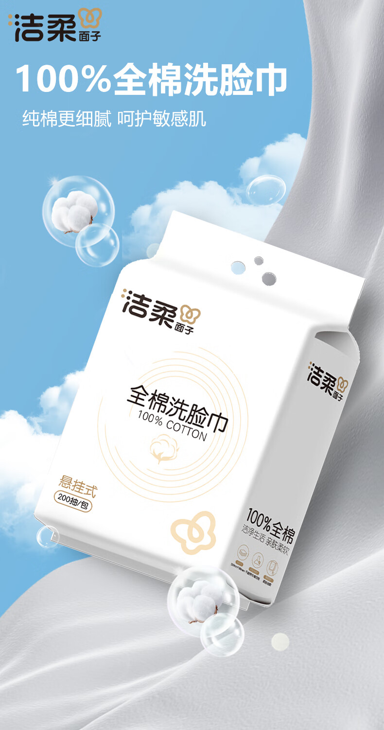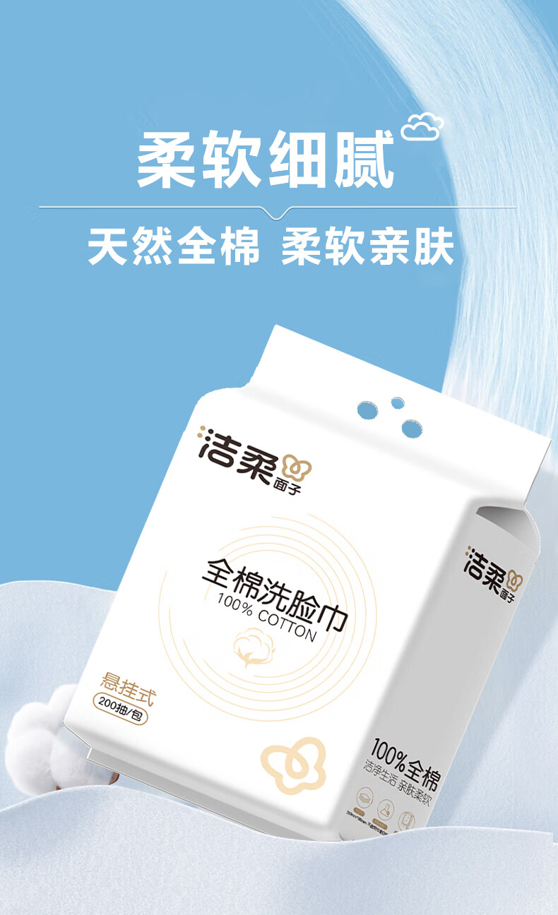 洁柔婴儿棉柔巾100%纯棉洗脸巾干湿两用宝宝棉柔纸巾一次性擦脸巾 【100%全棉】80抽*2包