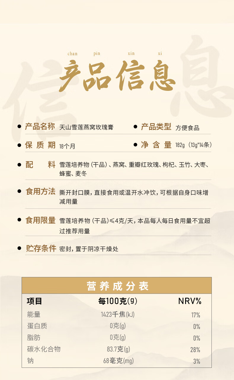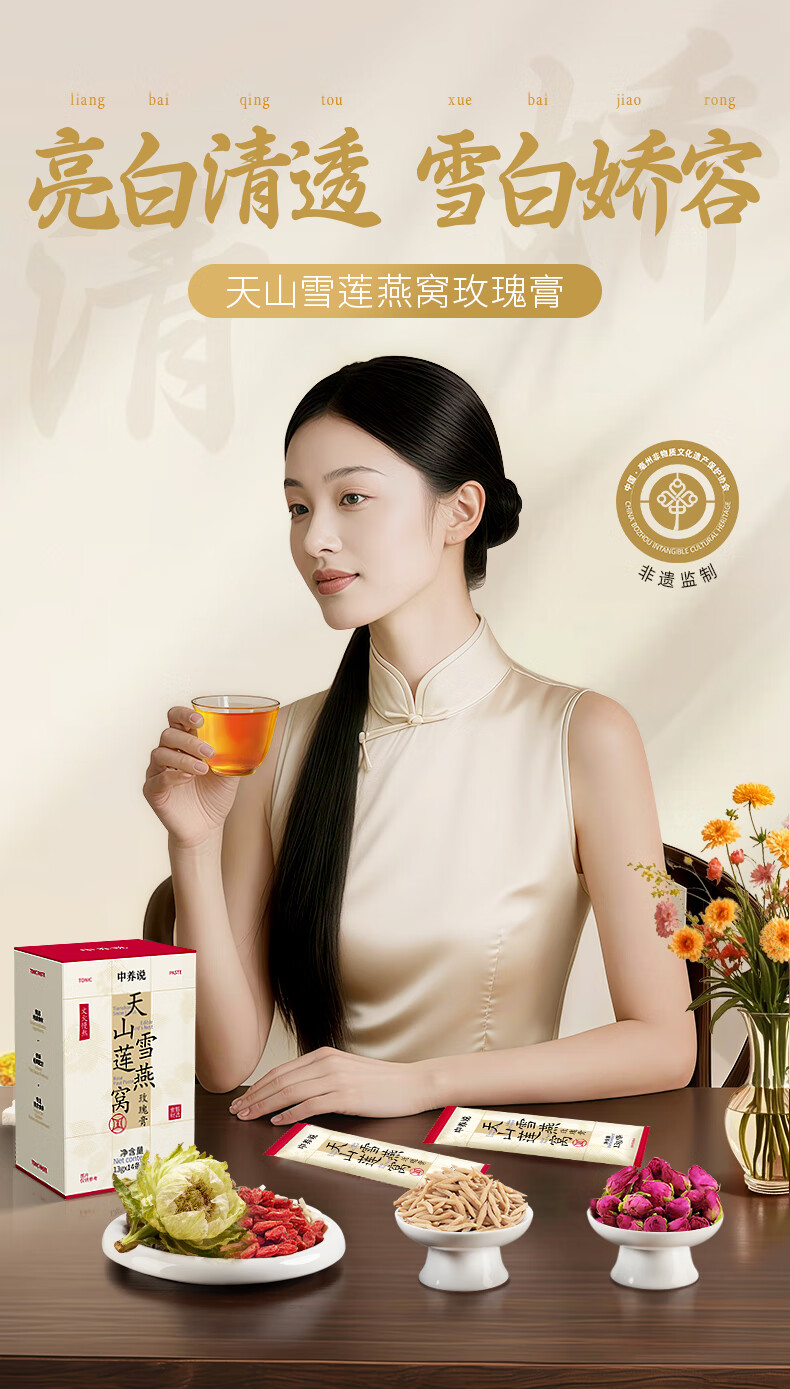 中养说天山雪莲燕窝玫瑰膏内服美白调理全身黄黑皮痘印斑气色差暗沉肤色 【拍2盒 到手共28支 单盒低至29.9】
