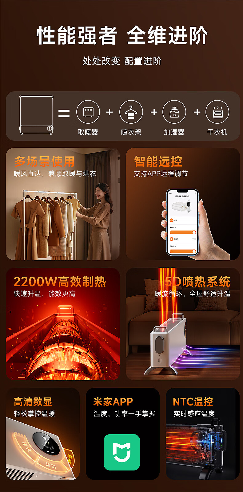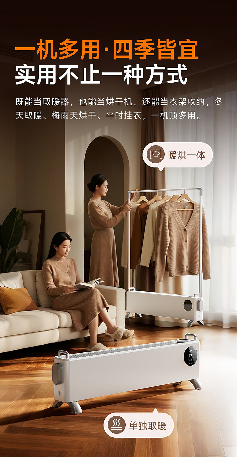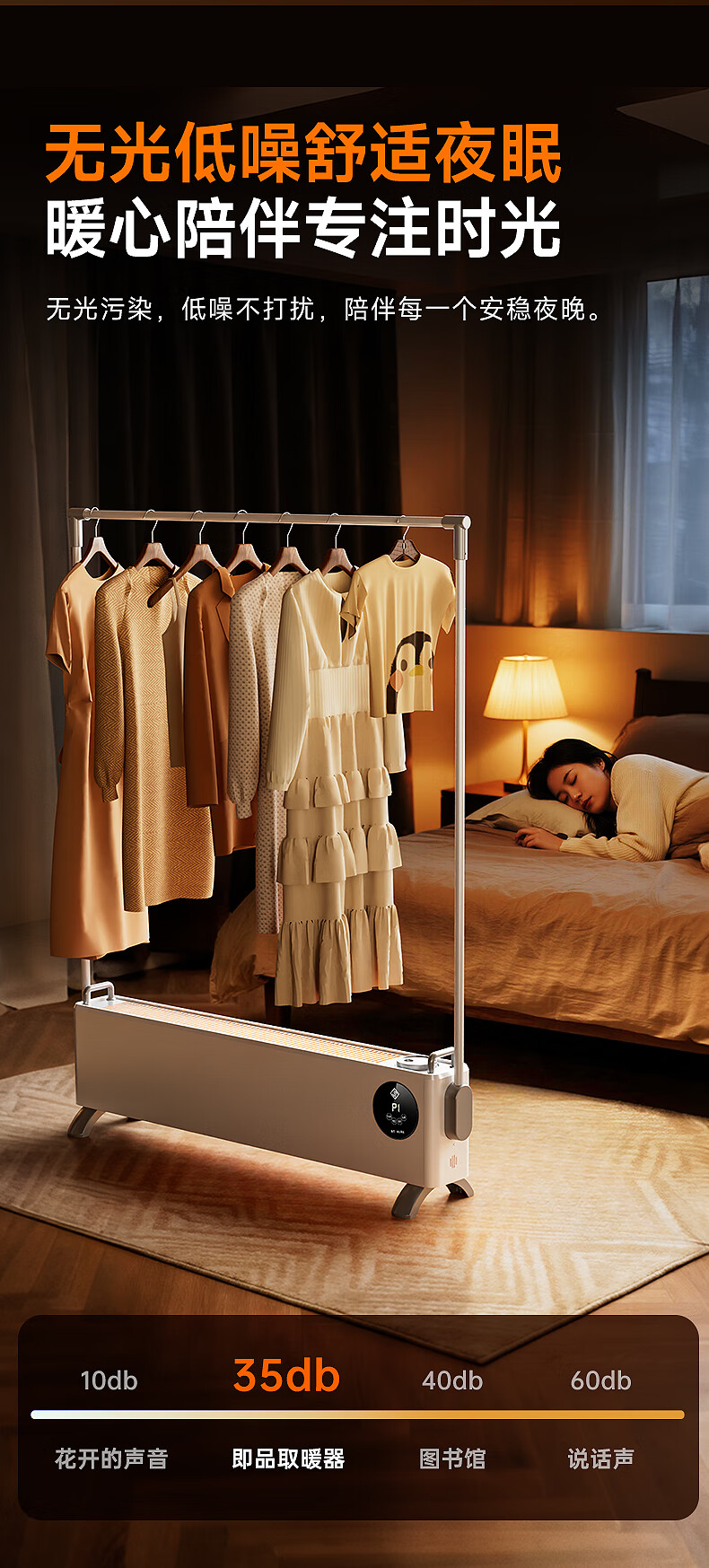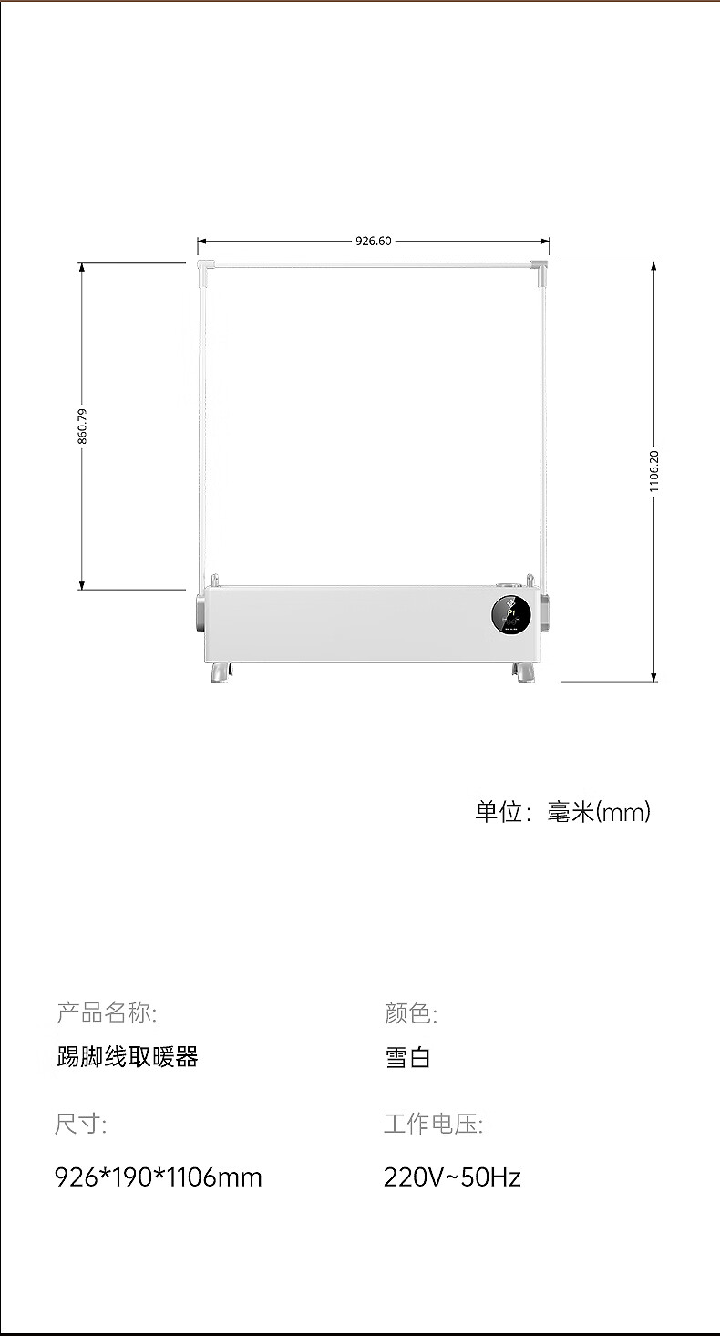 2025新款石墨烯踢脚线取暖器家用节能电暖气暖风机速热烘衣服神器 米家APP衣架版本踢脚线