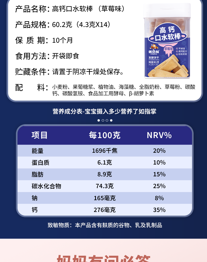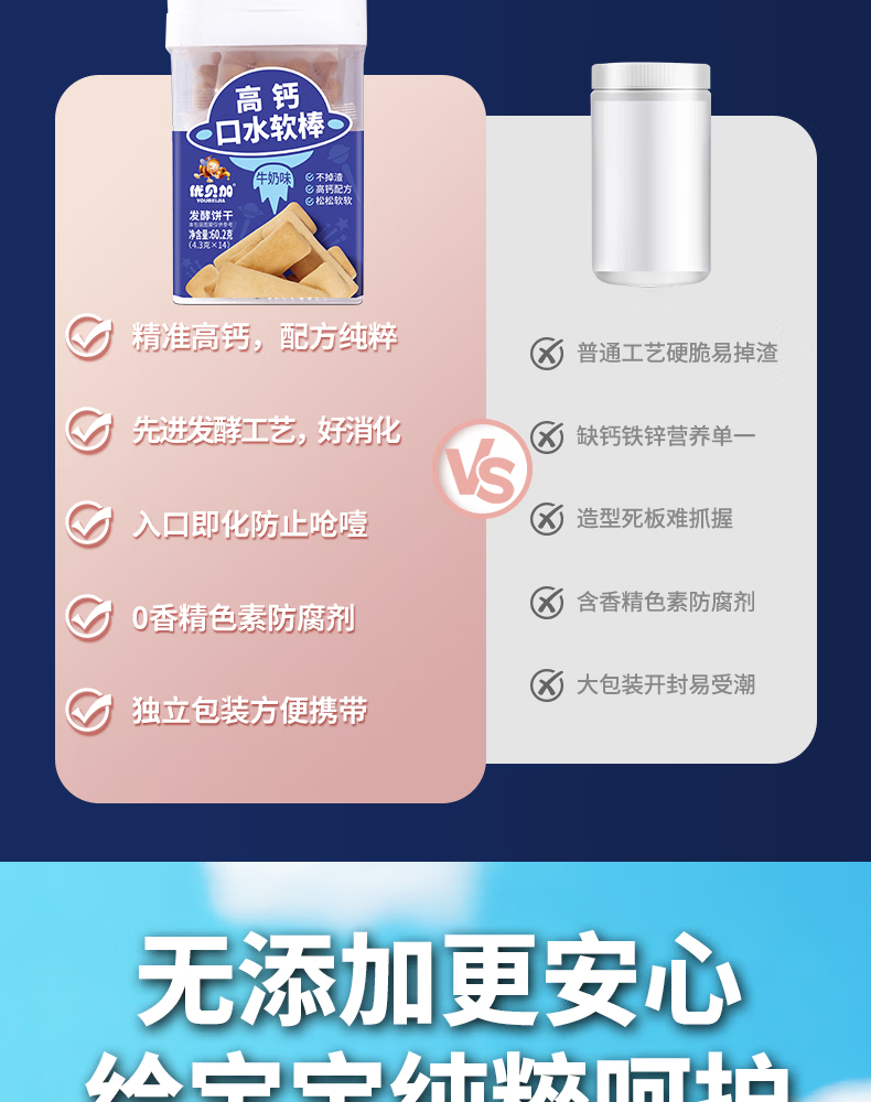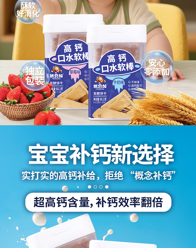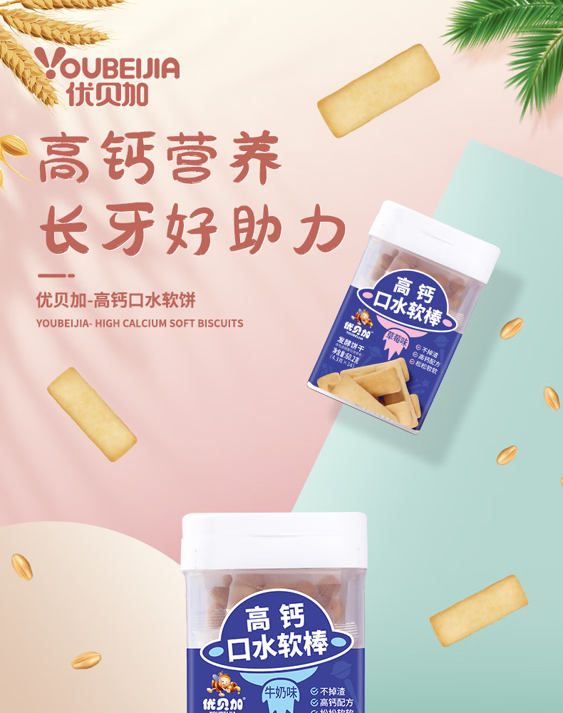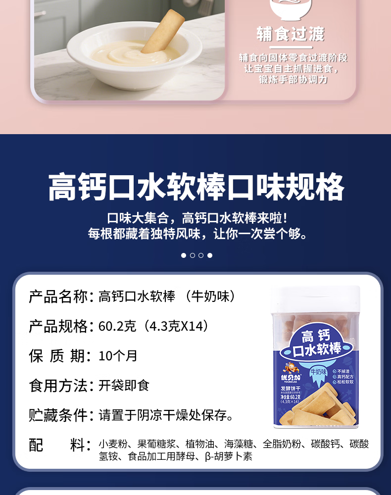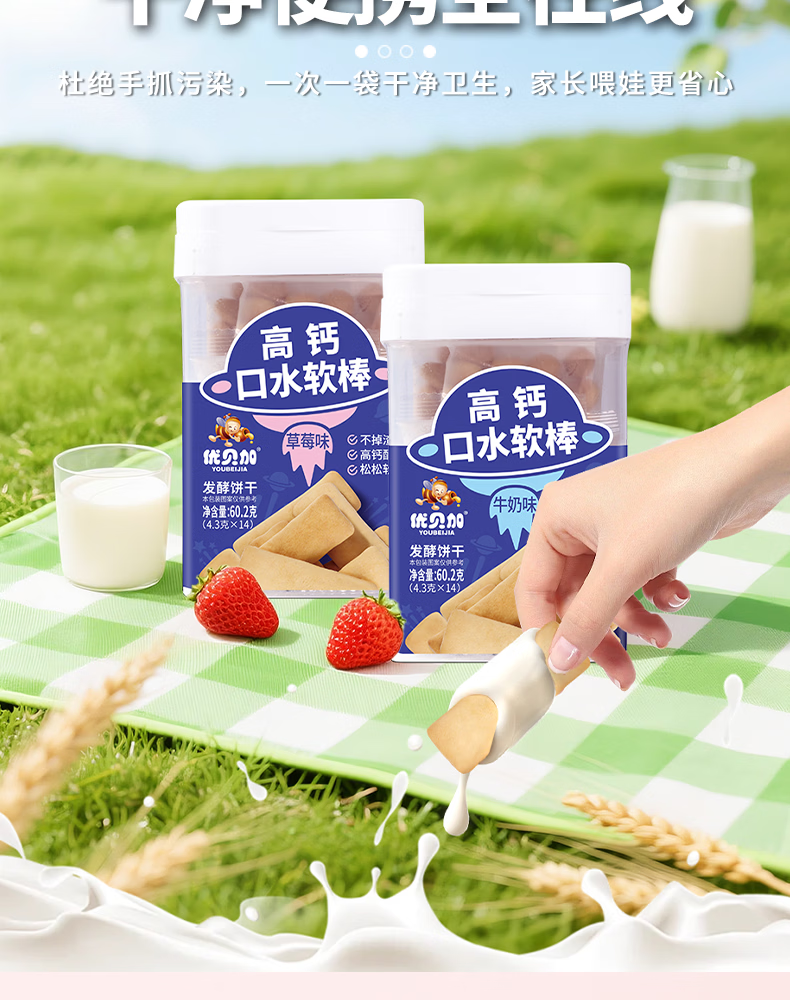 优贝加高钙口水软棒无添加色素独立包装儿童零食饼干1-3岁无添加色素 优贝加高钙口水软棒(牛奶味)*1瓶