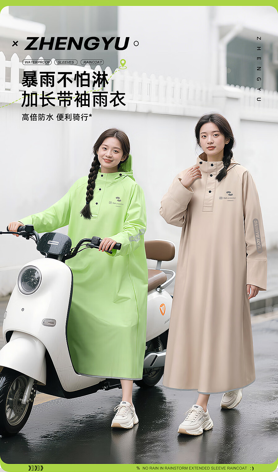 正雨雨衣电动车一体式全身防暴雨电瓶车骑行加厚长款人车分离单人雨披 苹果绿【加长款】快速穿脱 M【150-160】加长】当天发货