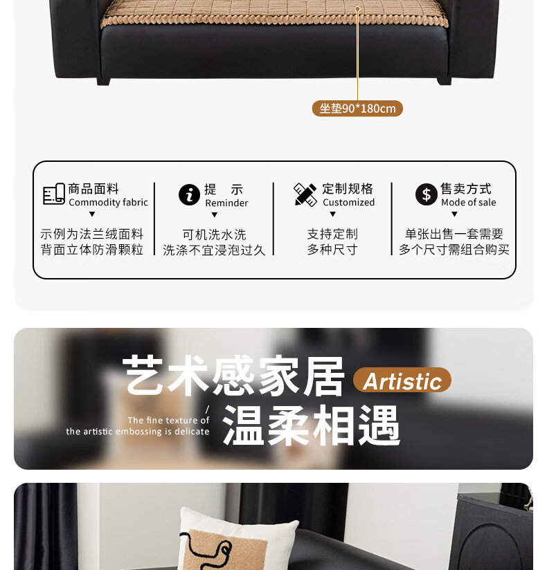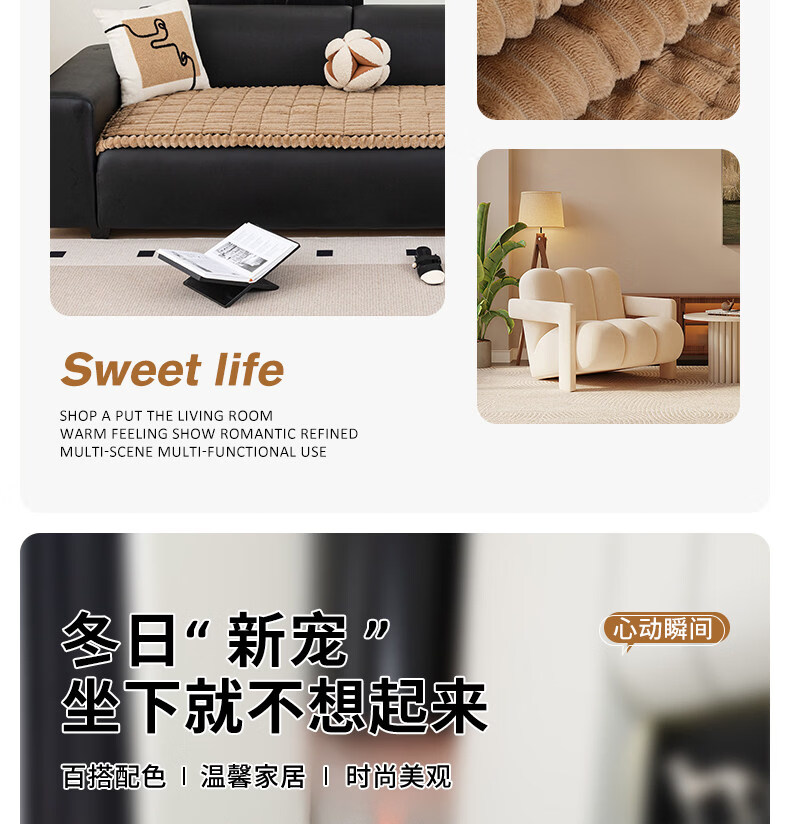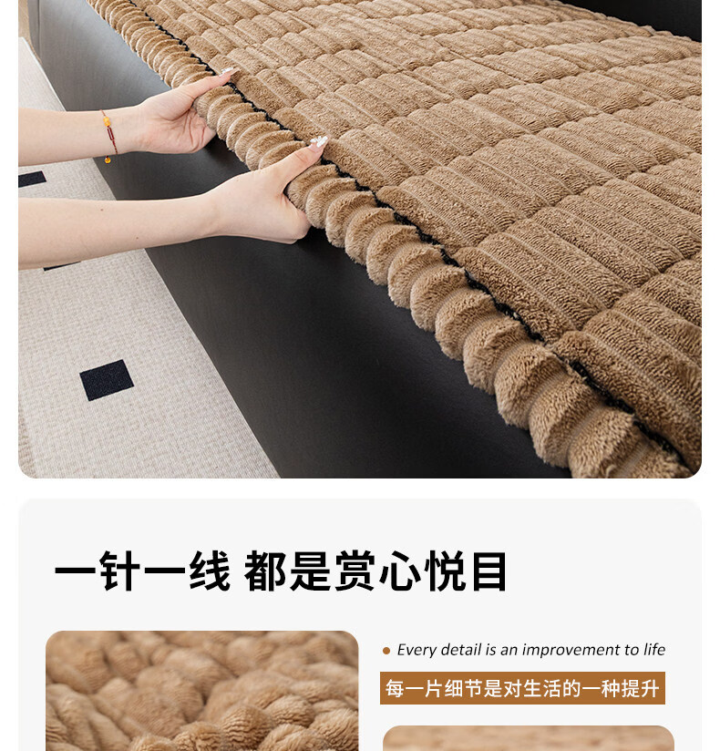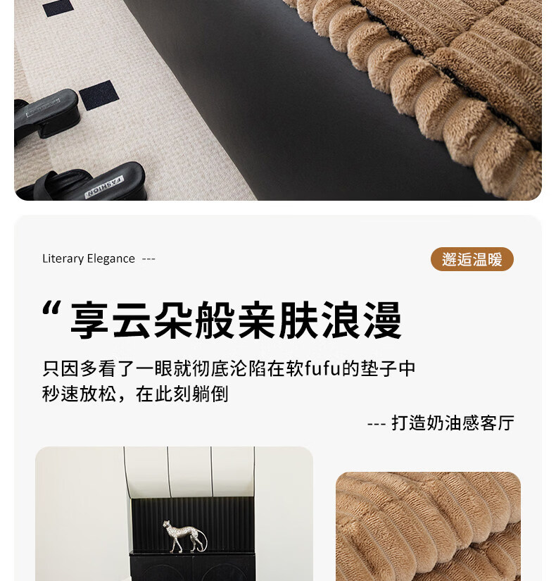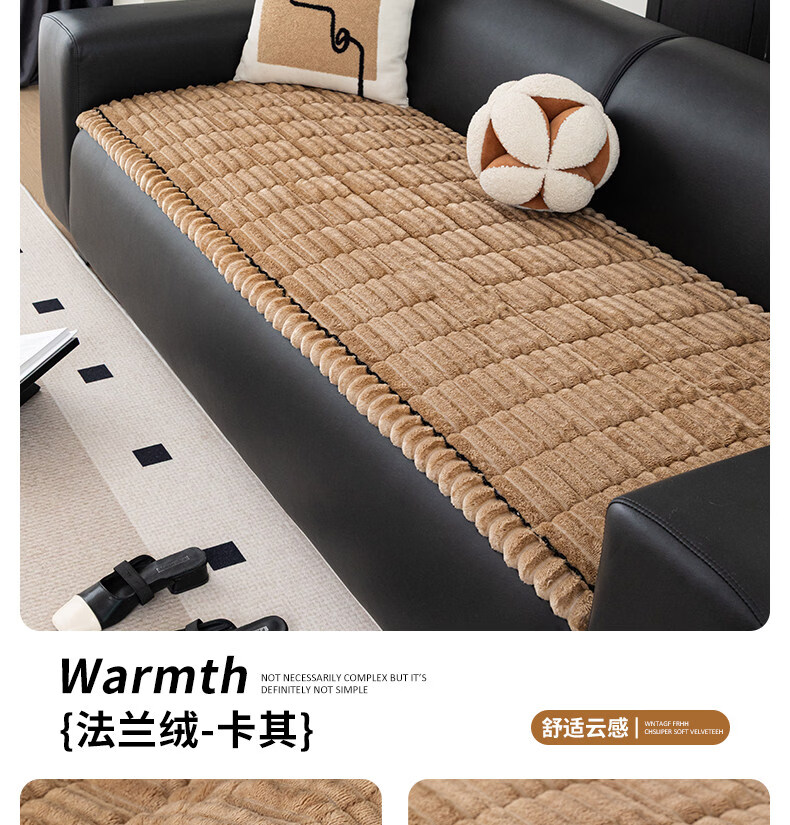 正圣加厚毛绒三人位沙发垫冬季防滑2025年新款座垫秋冬沙发专用垫 直边梦绒-卡其【加厚款】 60cm*60cm 【扶手/靠背】