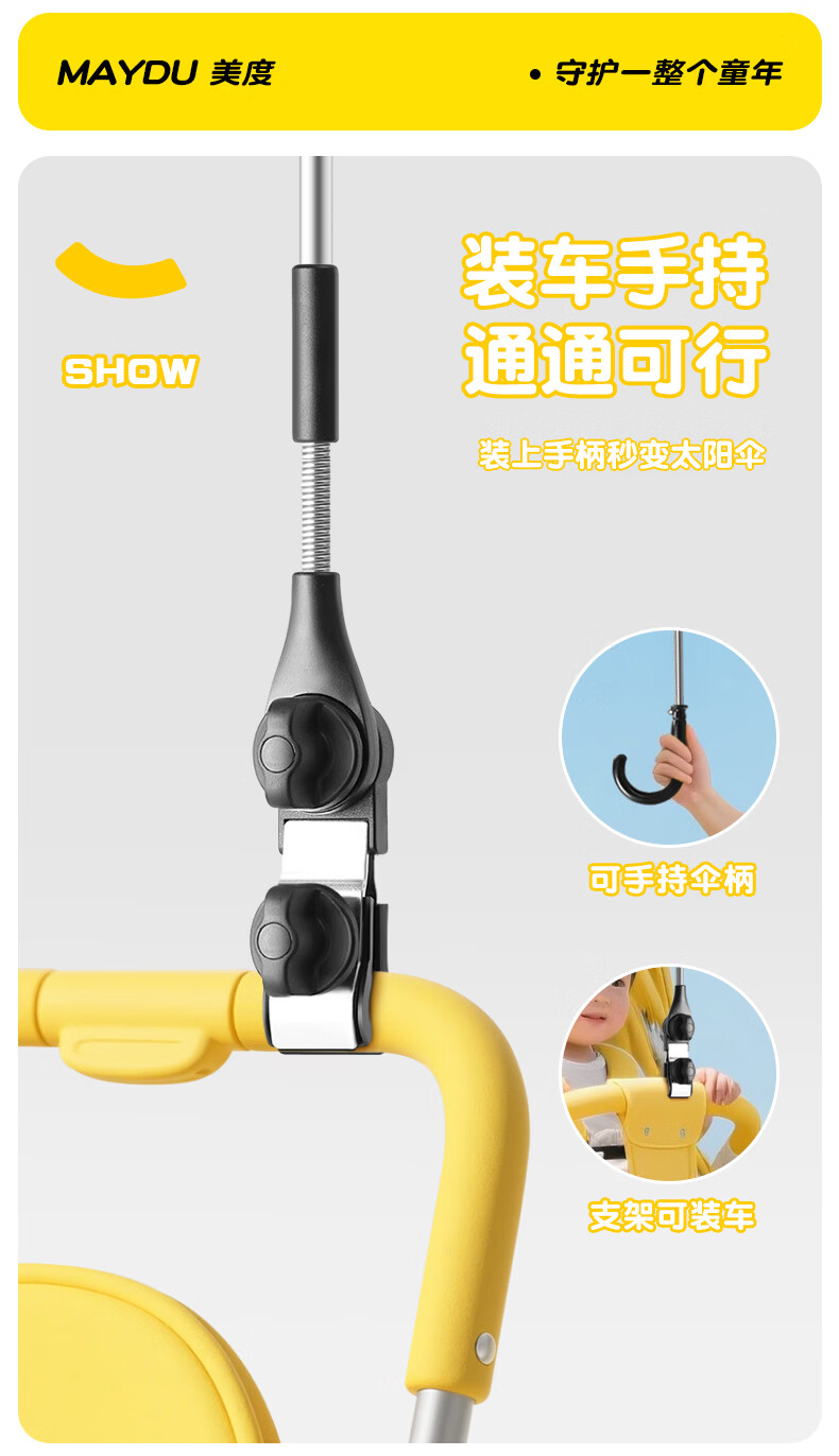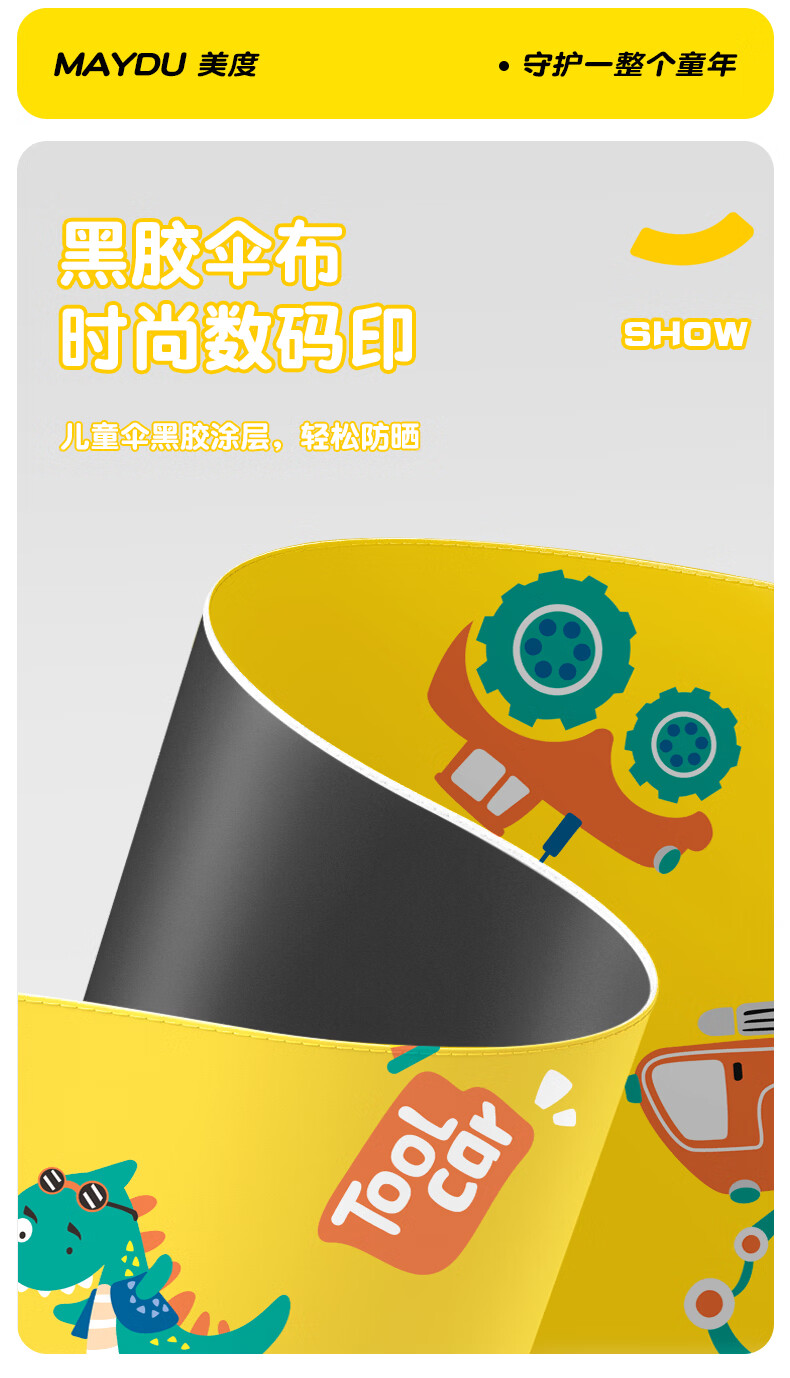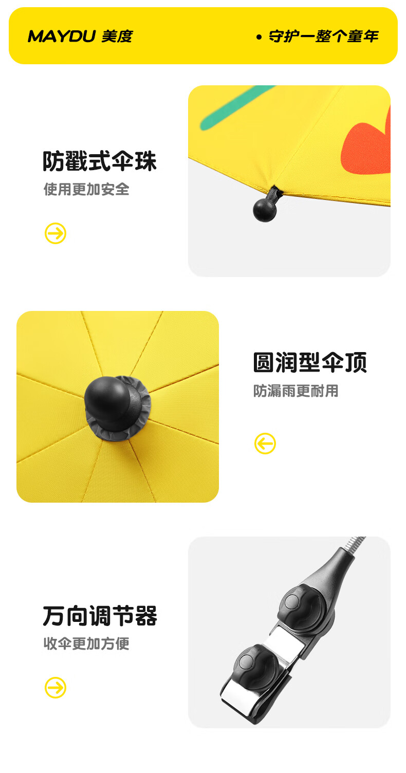 美度婴儿遮阳伞手推儿童伞遛娃神器防晒太阳雨伞M901 奇趣恐龙