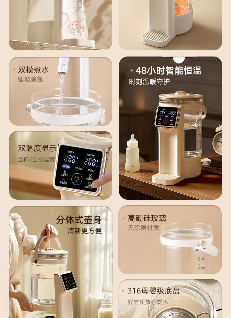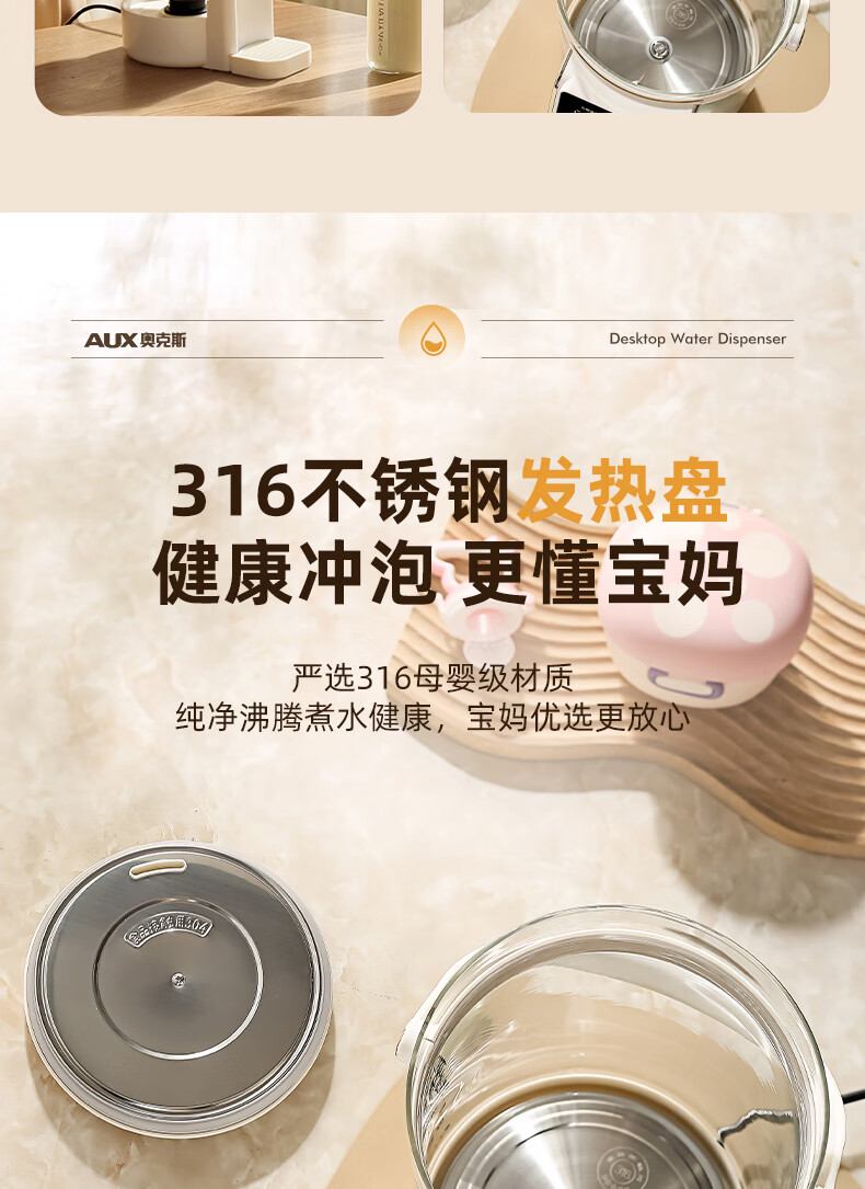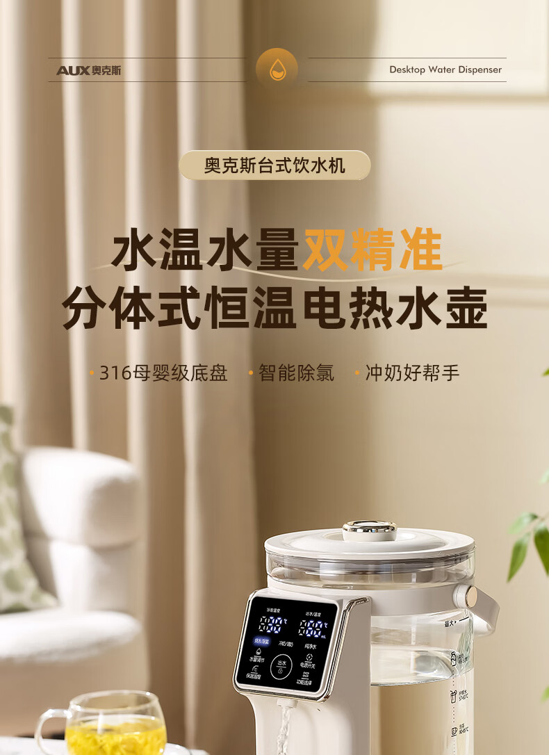 奥克斯电水瓶316母婴级不锈钢水壶家用4L大容量全自动断电智能保温恒温一体除氯冲奶泡茶电热水瓶饮水机 4L 【0塑料水路】7段预设保温