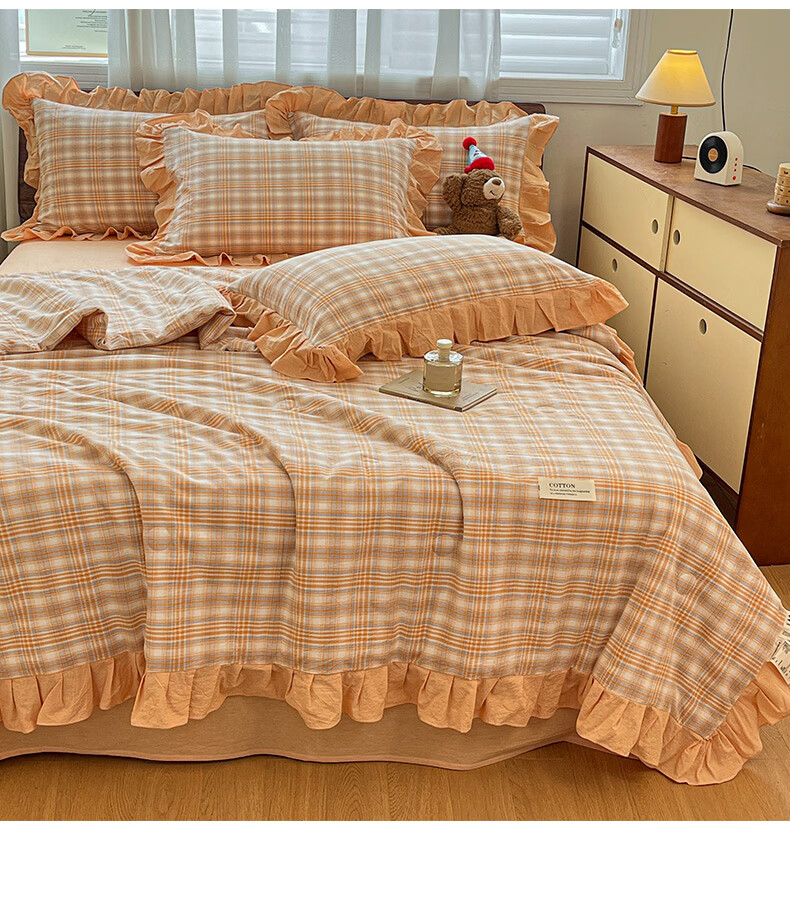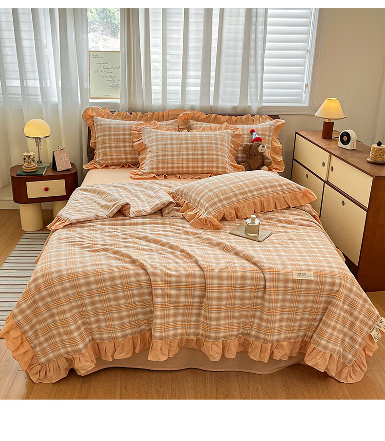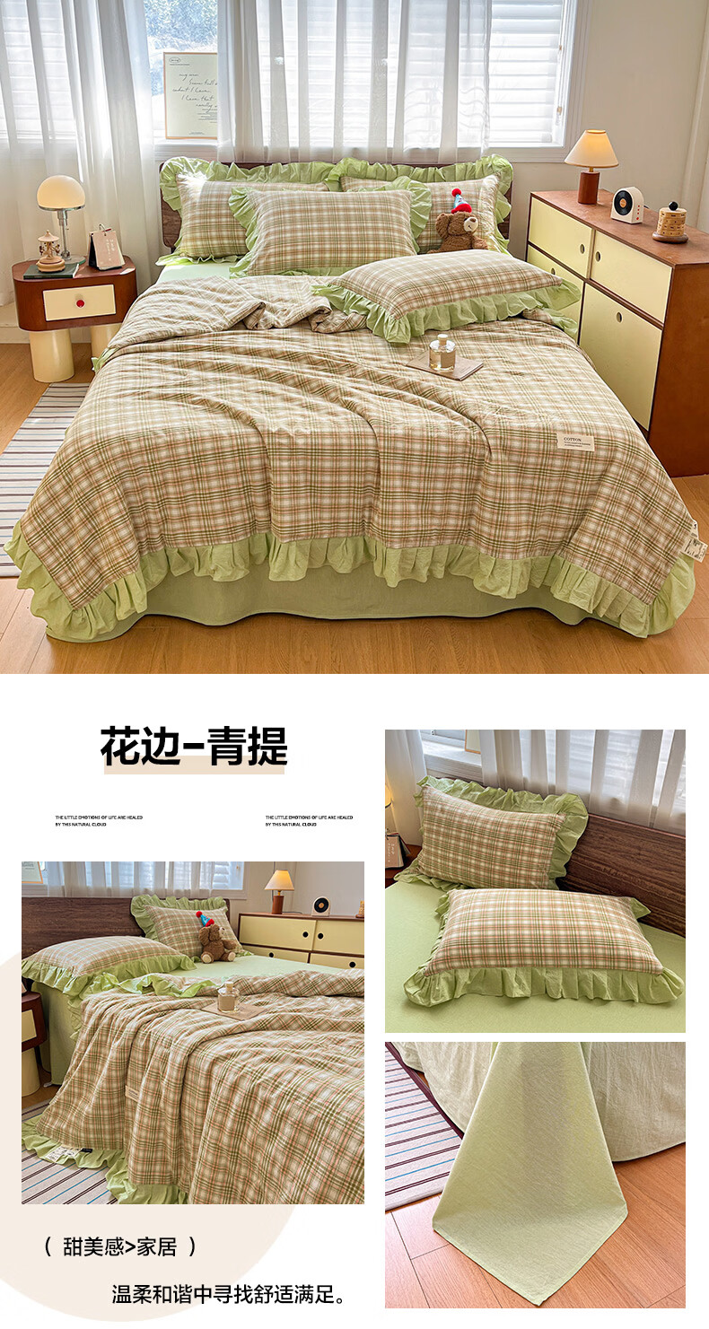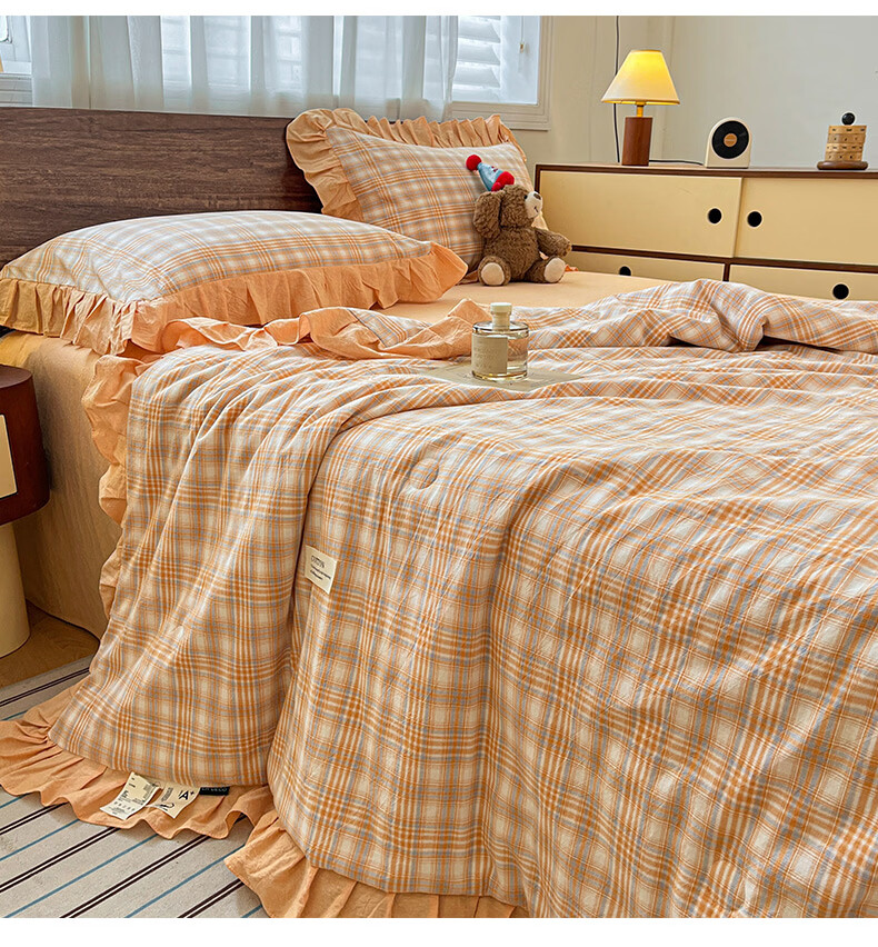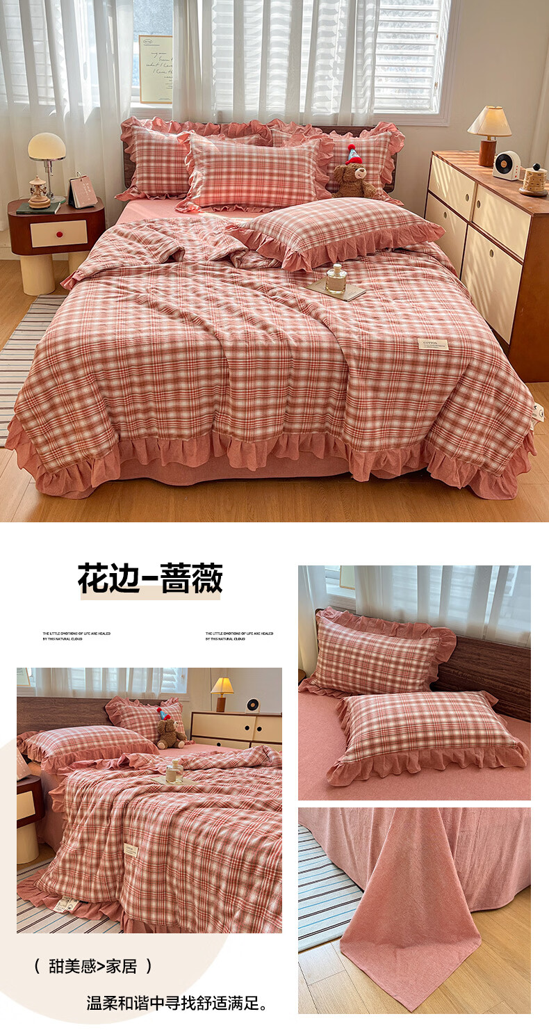 无印良品夏凉被纯棉全棉空调被可机洗裸睡夏被四件套夏季单人宿舍薄款被子 花边-蔷薇【A类全棉 舒适裸睡】 150*200cm单夏被 通用