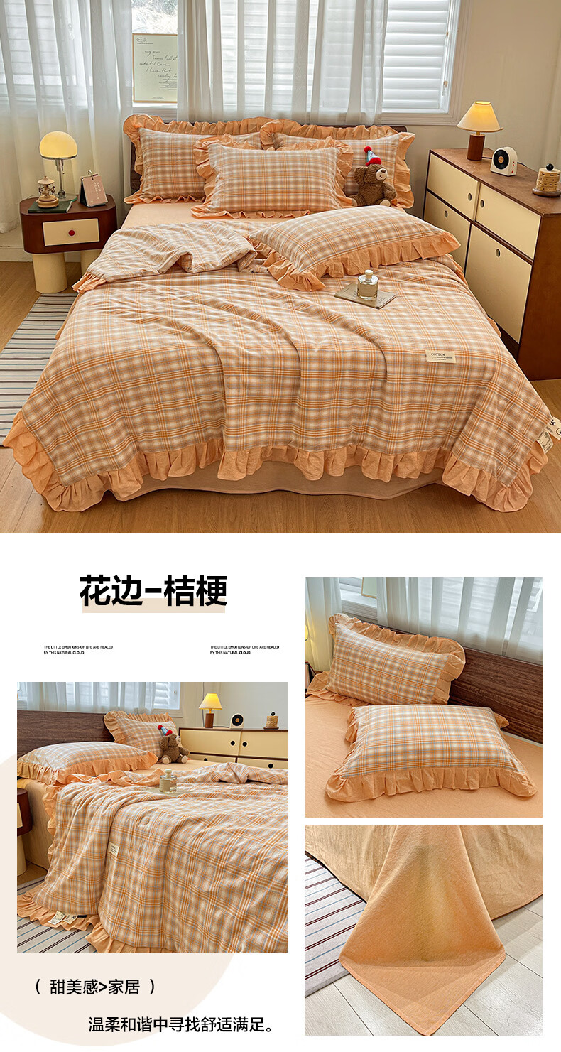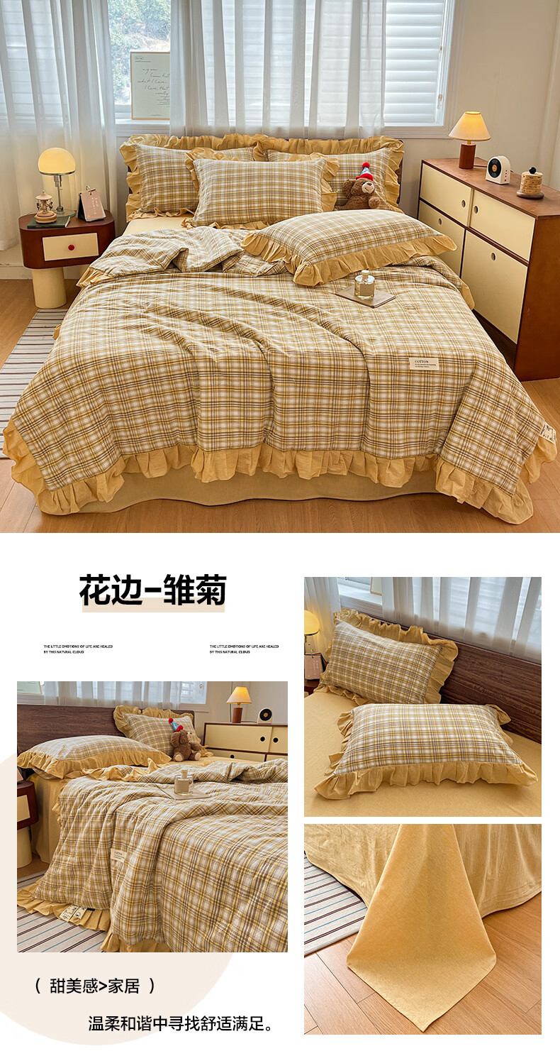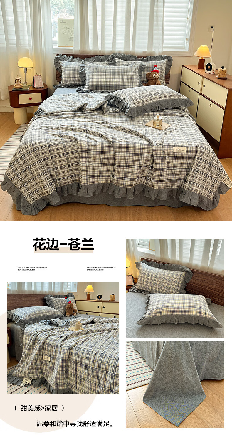 无印良品全棉床品四件套纯棉100%小清新花卉风单双人四季通用可裸睡三件套 苏屿【全棉面料 清新印花】 1.8m 床单款 被套200*230cm