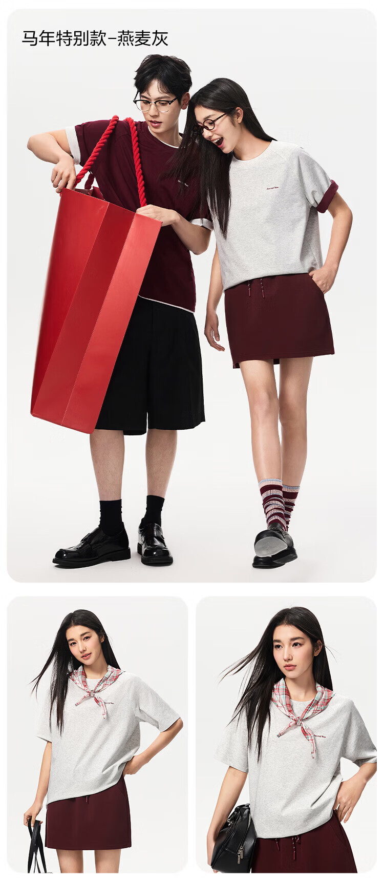自巧小个子贝壳扣一字领修身T恤&微喇拖地休闲裤套装女2026春新品 水貂灰T恤 M (尺码:4)
