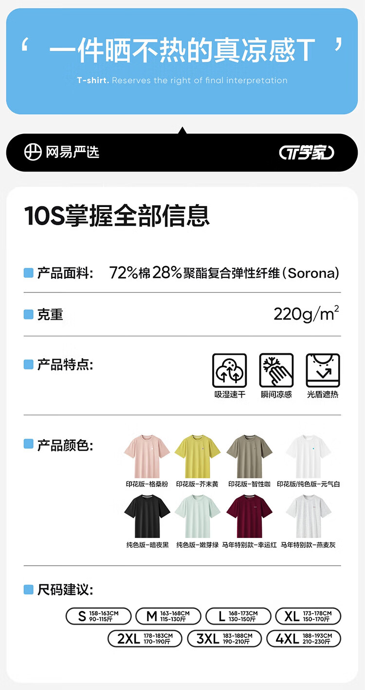 网易严选26新品凉感T恤短袖吸湿速干防晒冰感圆领男女同款显瘦廓形 印花版-元气白 S 适合90-115斤
