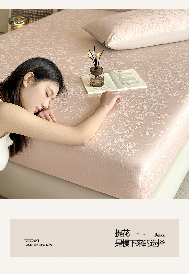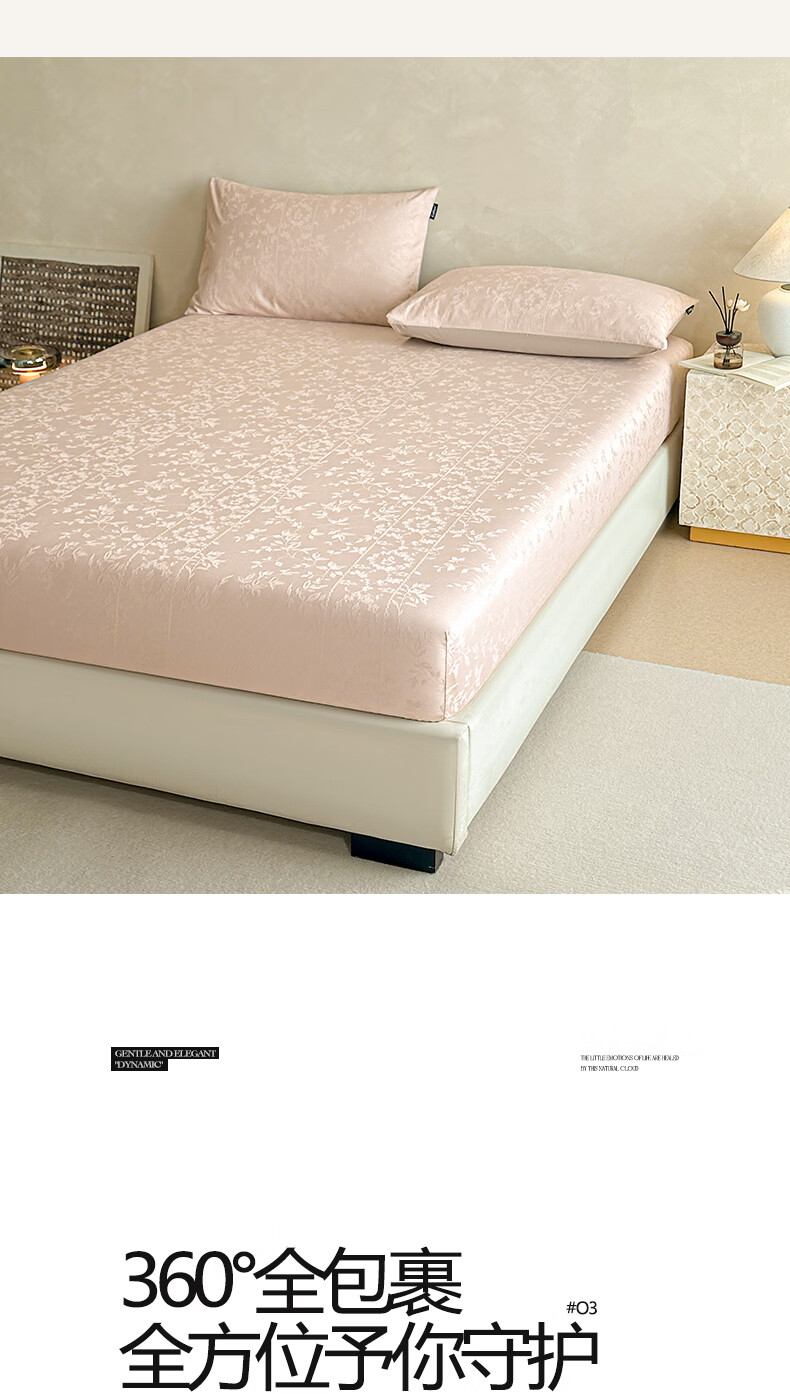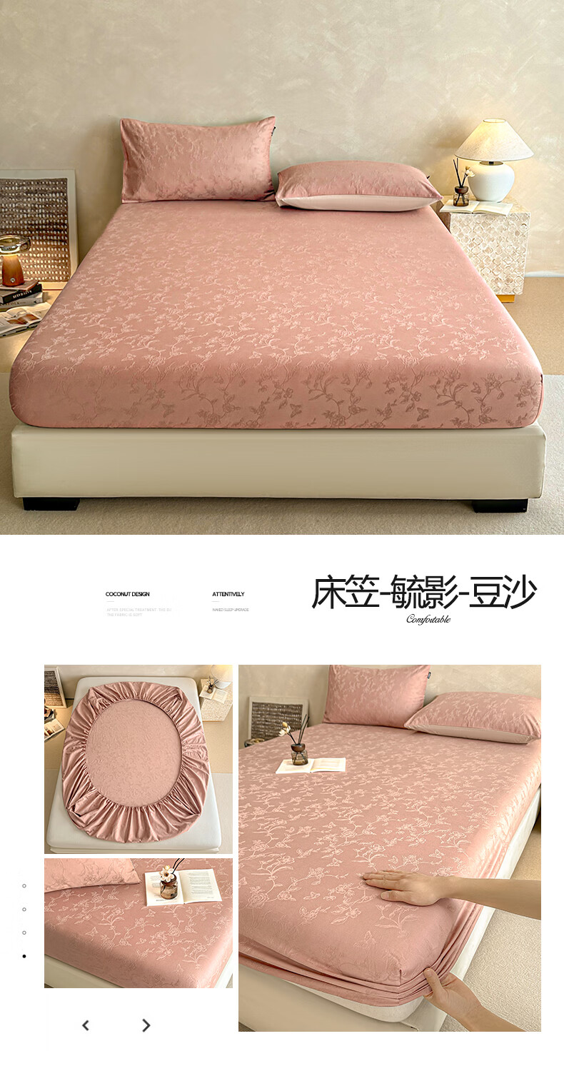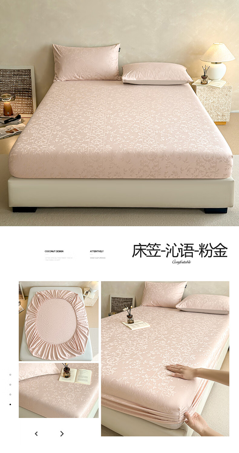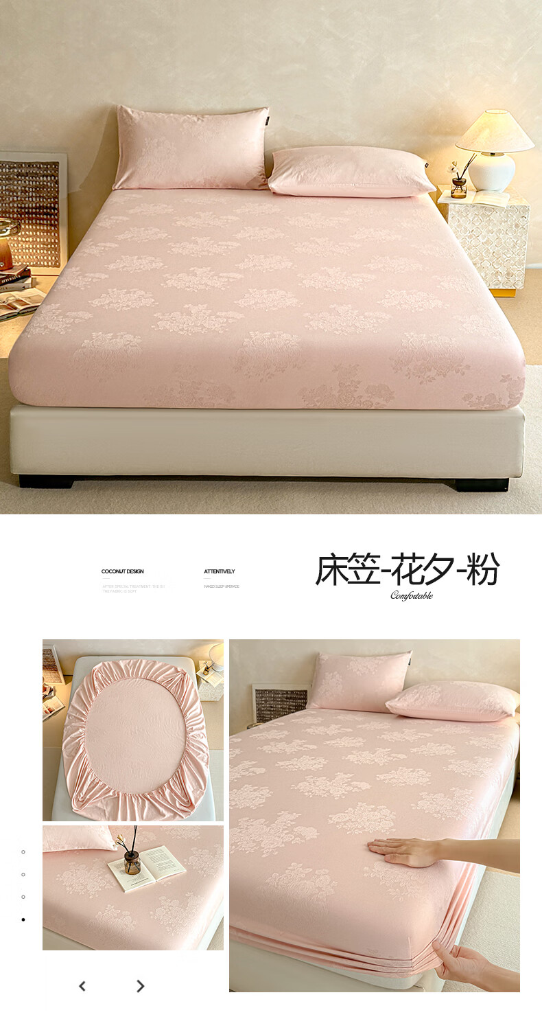 无印良品100%新疆纯棉床笠1.8米x2米全棉床罩宿舍家用床垫保护罩全包3件套 床笠-沁语-粉金【100%新疆棉 高端纯色】 90cm*200cm 单床笠