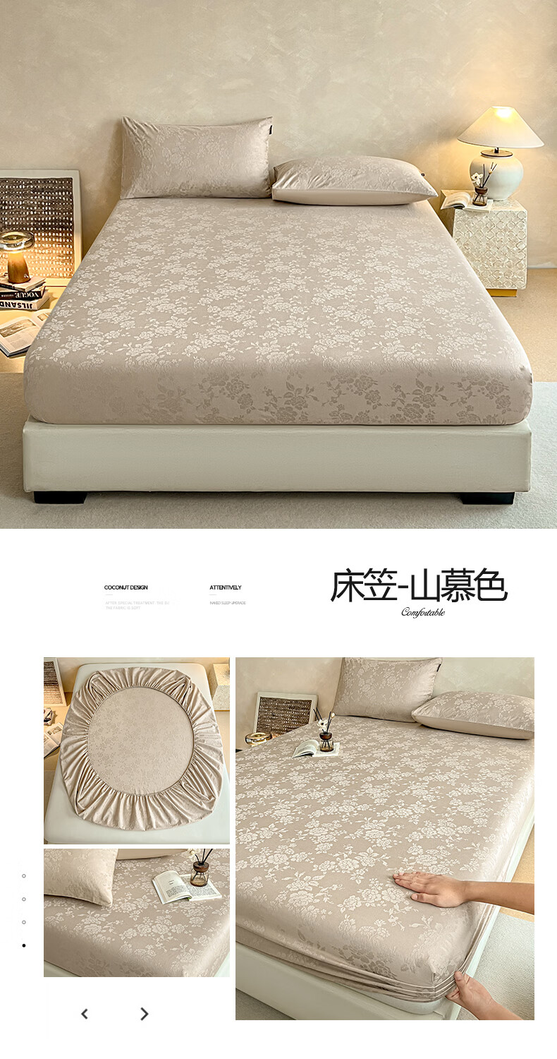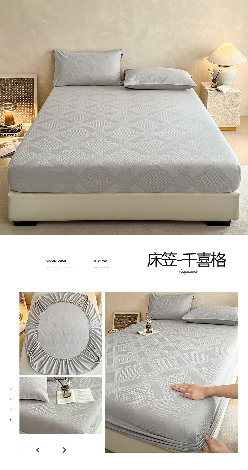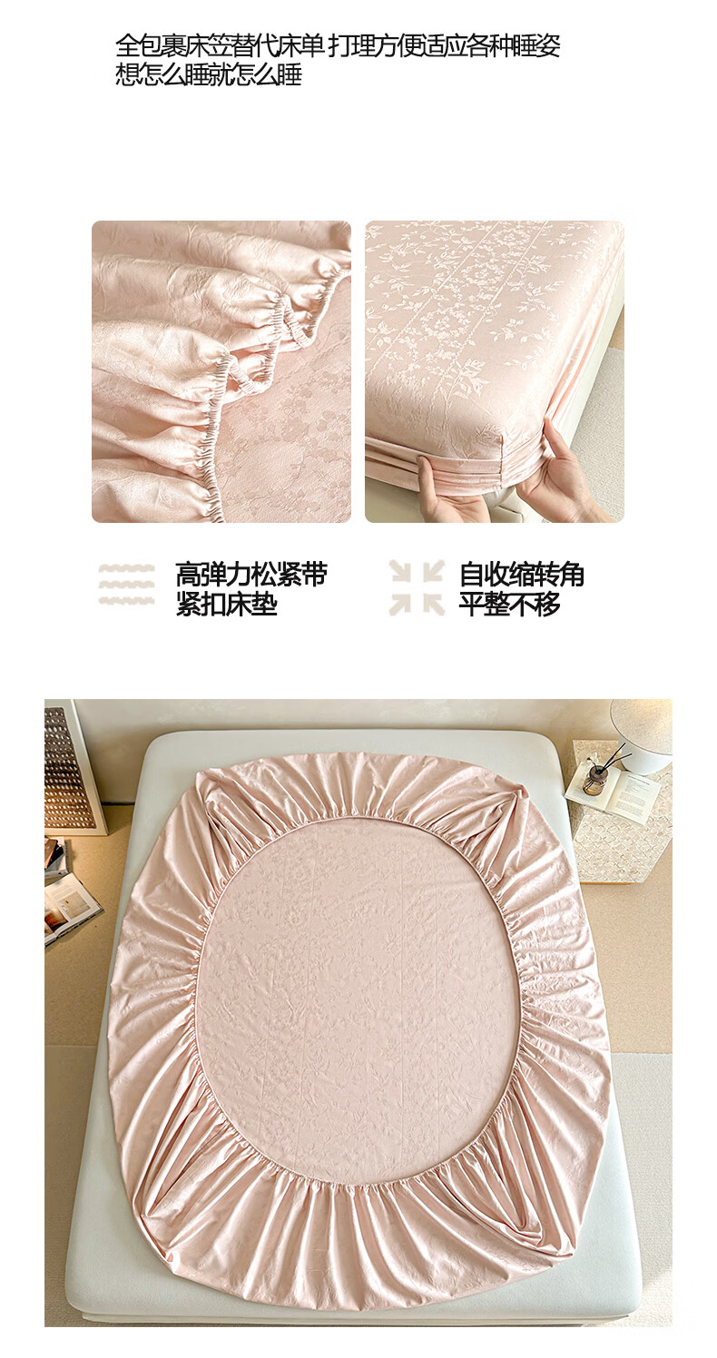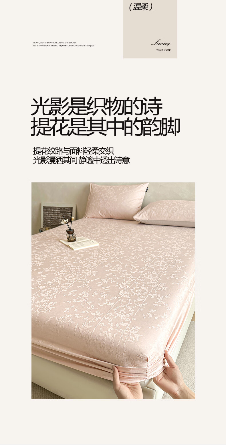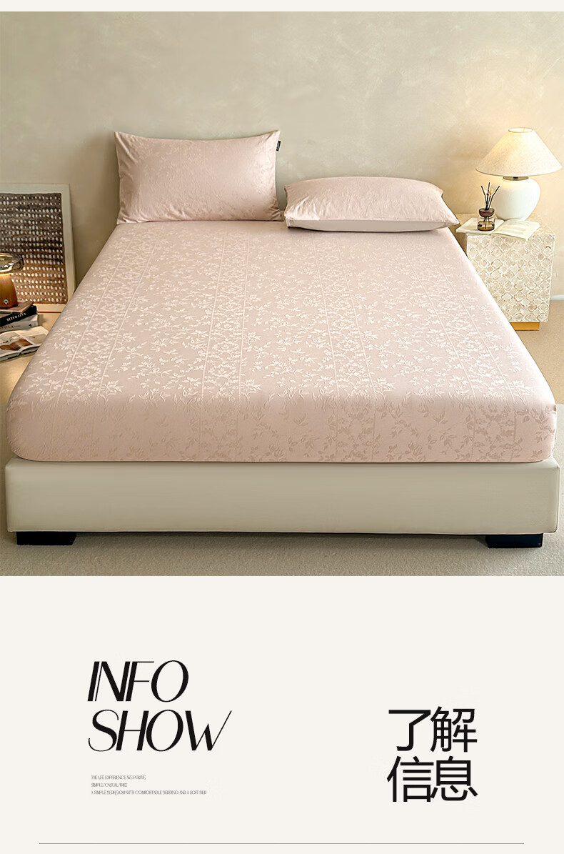 无印良品100%新疆纯棉床笠1.8米x2米全棉床罩宿舍家用床垫保护罩全包3件套 床笠-沁语-粉金【100%新疆棉 高端纯色】 90cm*200cm 单床笠