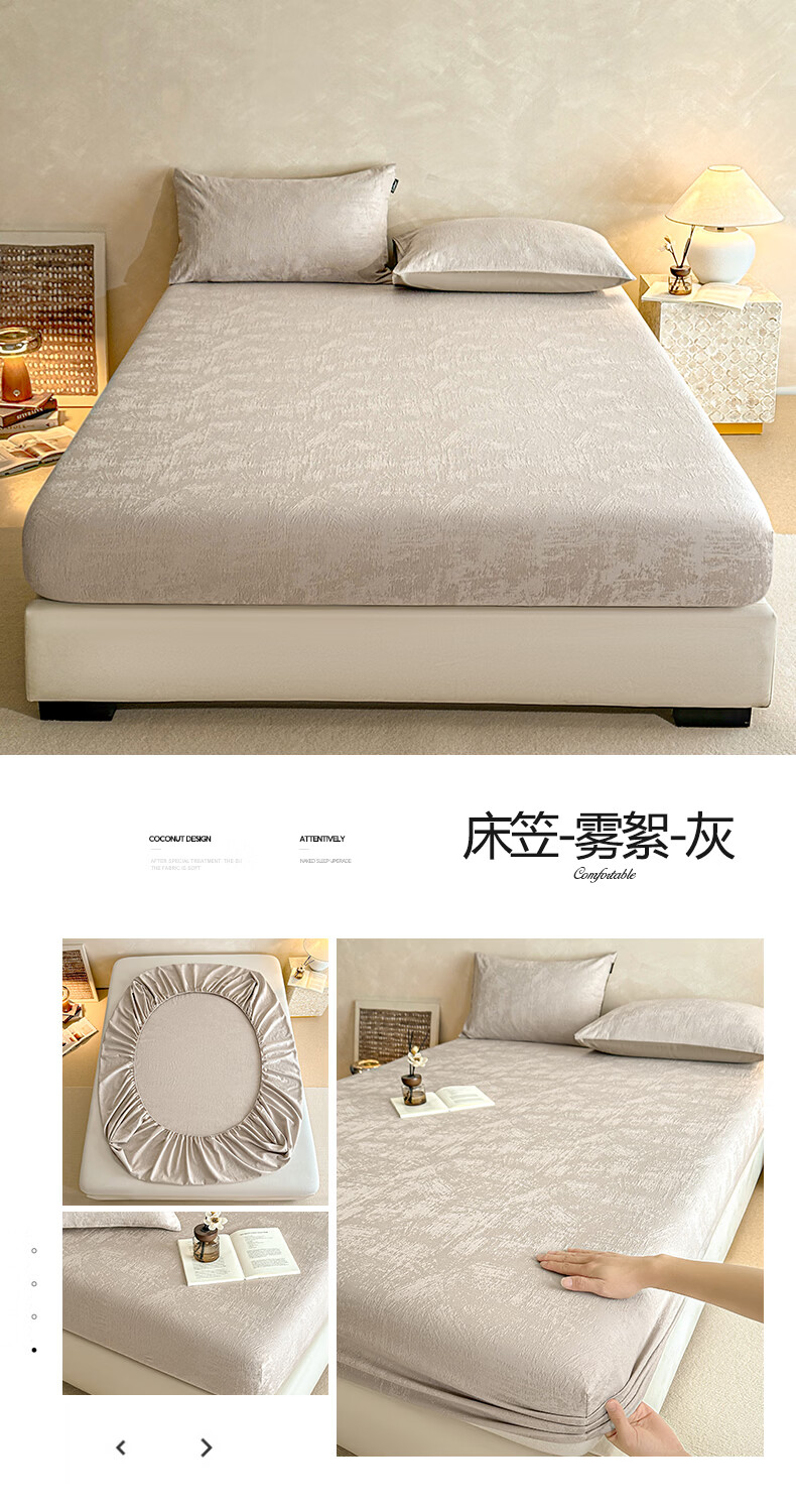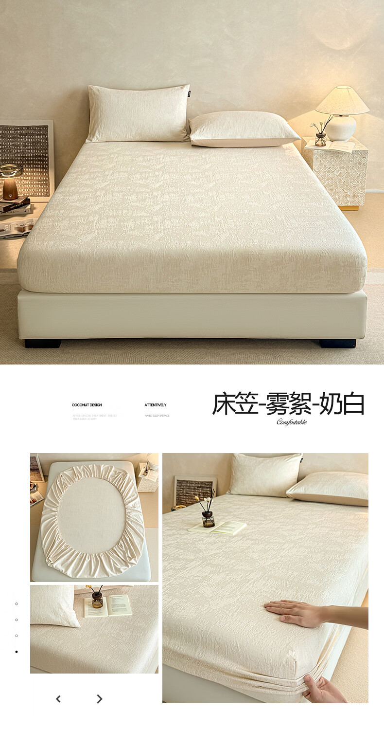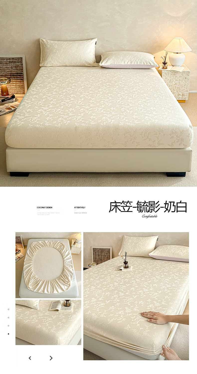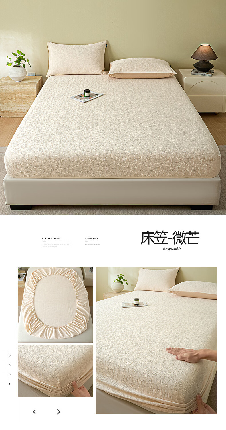 无印良品100%新疆纯棉床笠1.8米x2米全棉床罩宿舍家用床垫保护罩全包3件套 床笠-沁语-粉金【100%新疆棉 高端纯色】 90cm*200cm 单床笠
