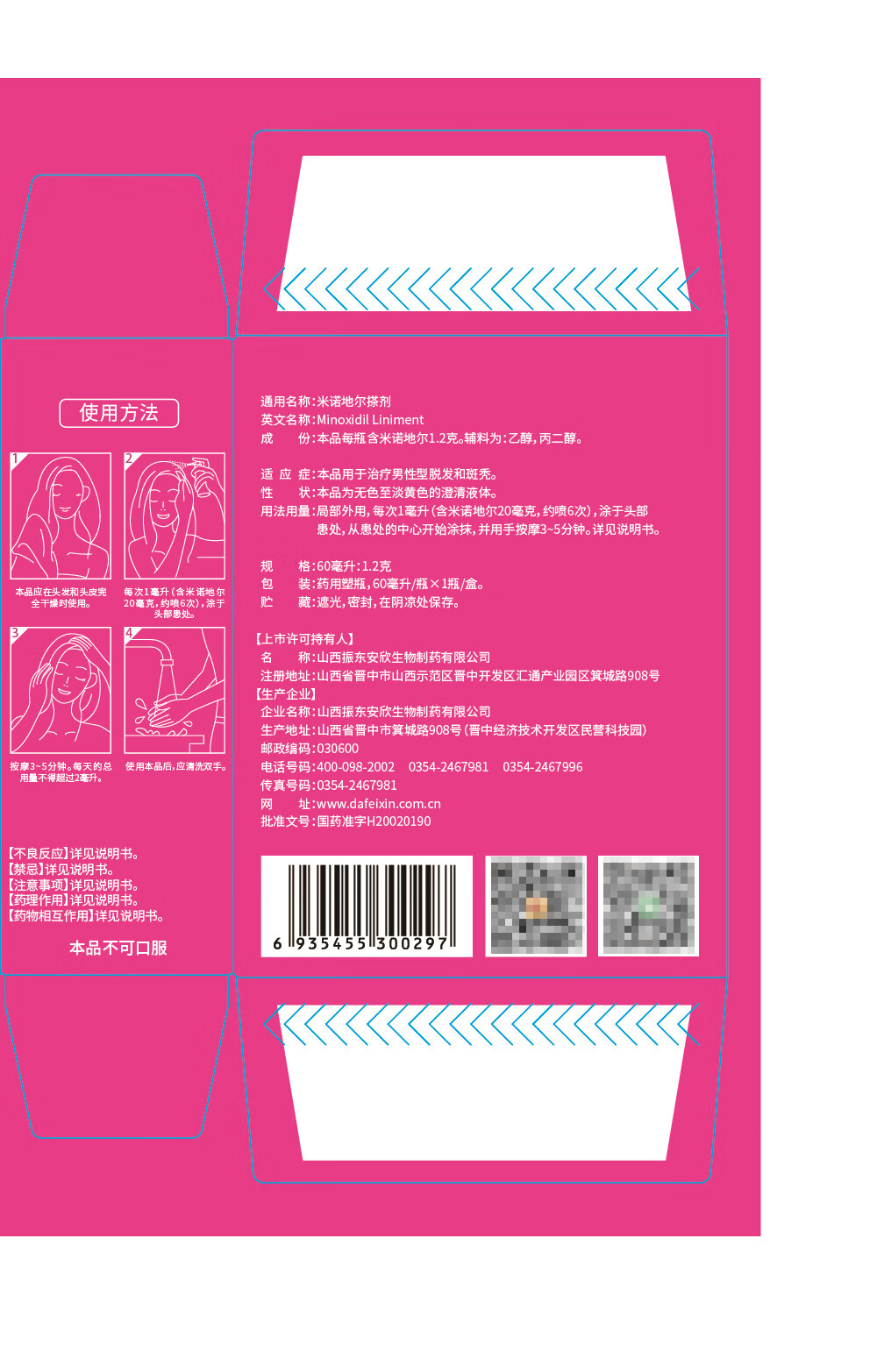 达霏欣2%米诺地尔酊搽剂60ml*3瓶女士脱发疗程装防脱生发剂育发发际线增长脱发斑秃低敏少痘产后脱发米洛地尔