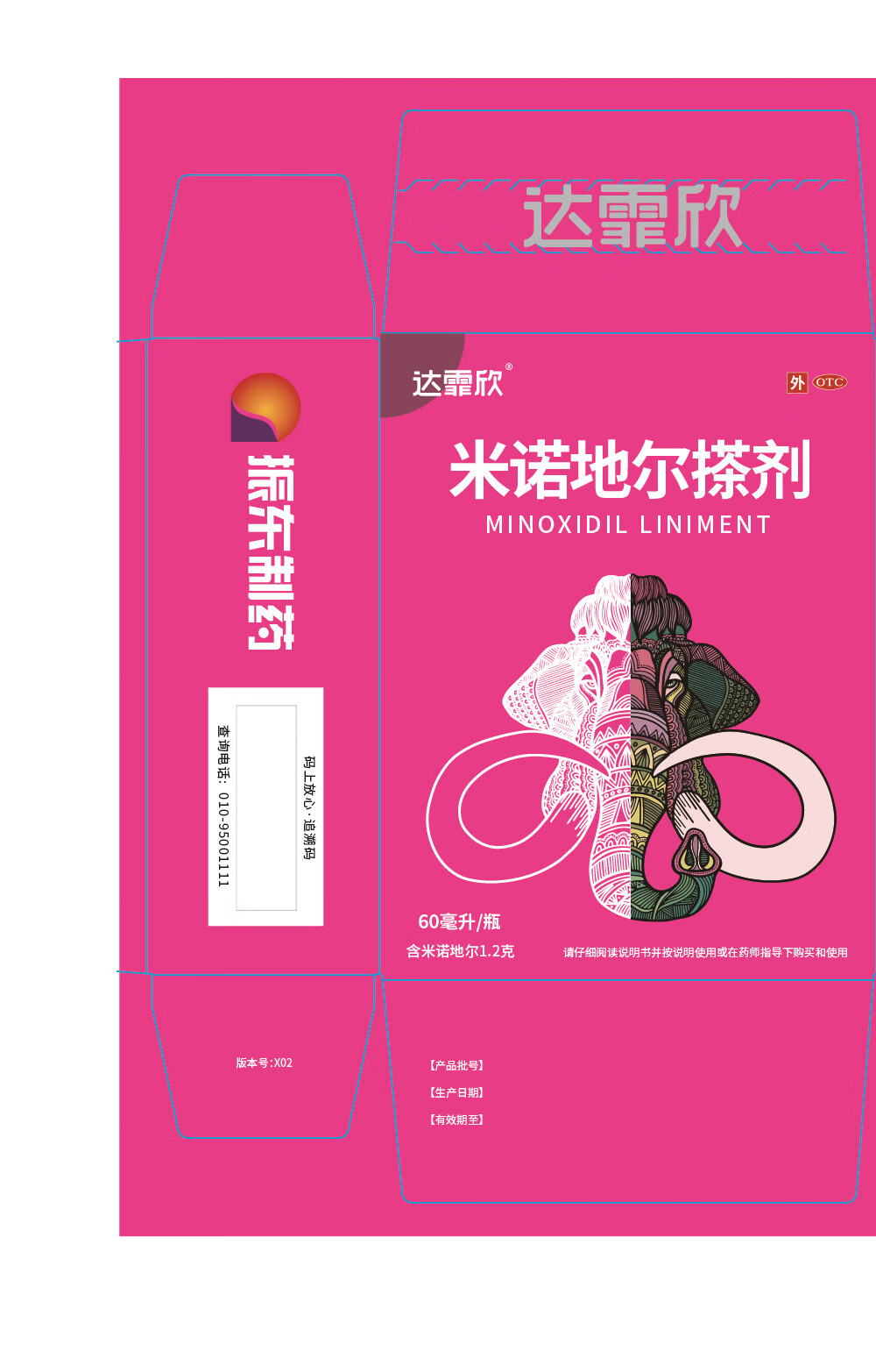 达霏欣5%米诺地尔搽剂60ml*3瓶【男士专用脱发疗程装】防脱高效生发剂育发发际线增长脱发斑秃达菲欣米洛地尔