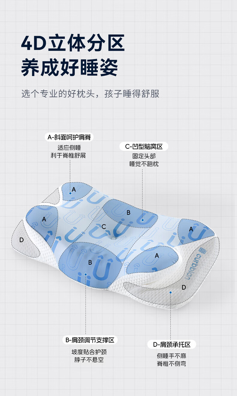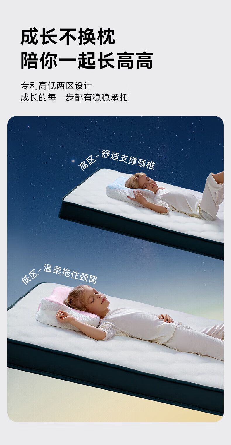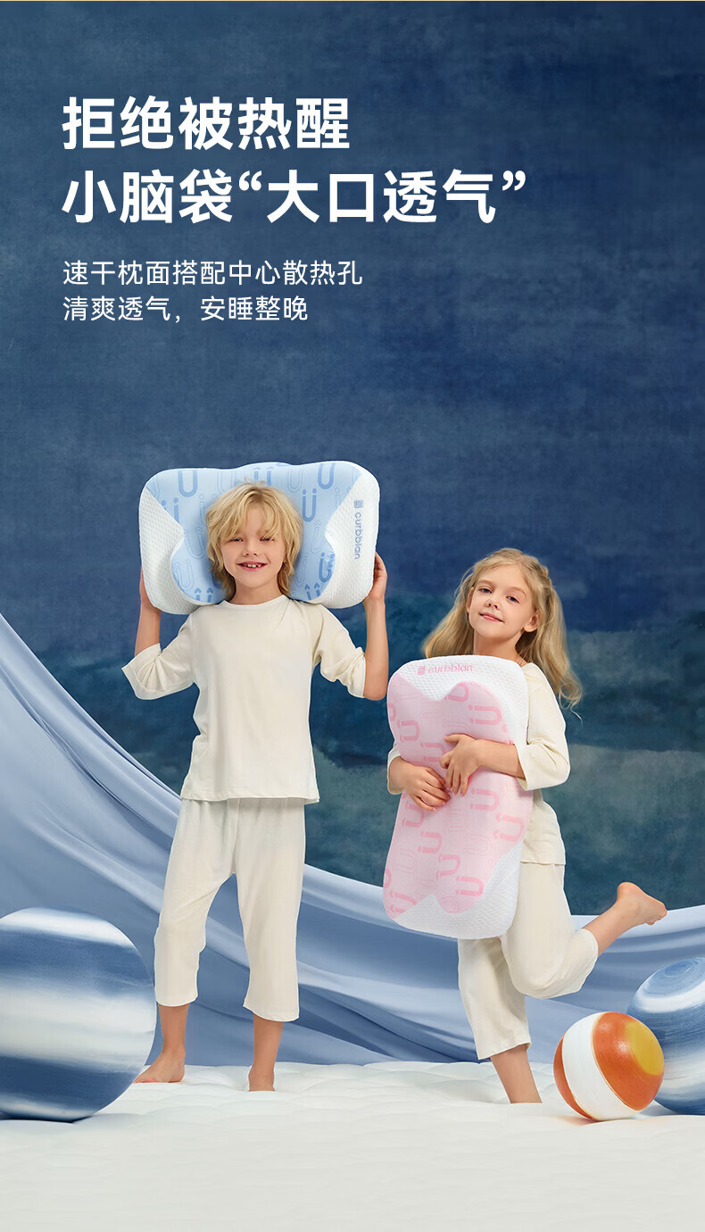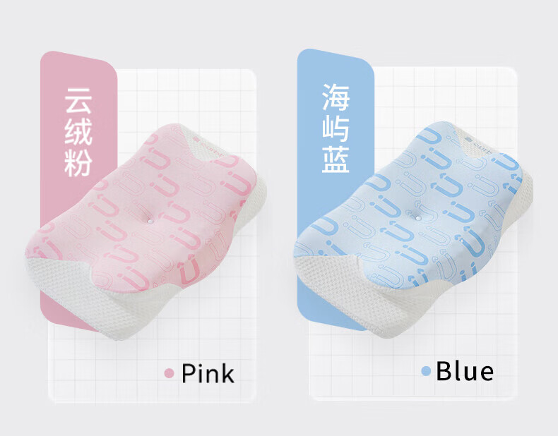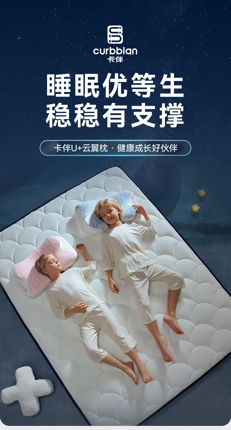 卡伴【吉娜推荐】儿童枕头宝宝云翼护颈枕儿童记忆棉枕头 蓝色 二段