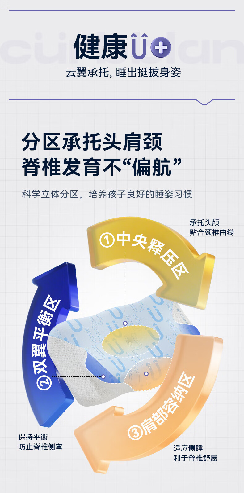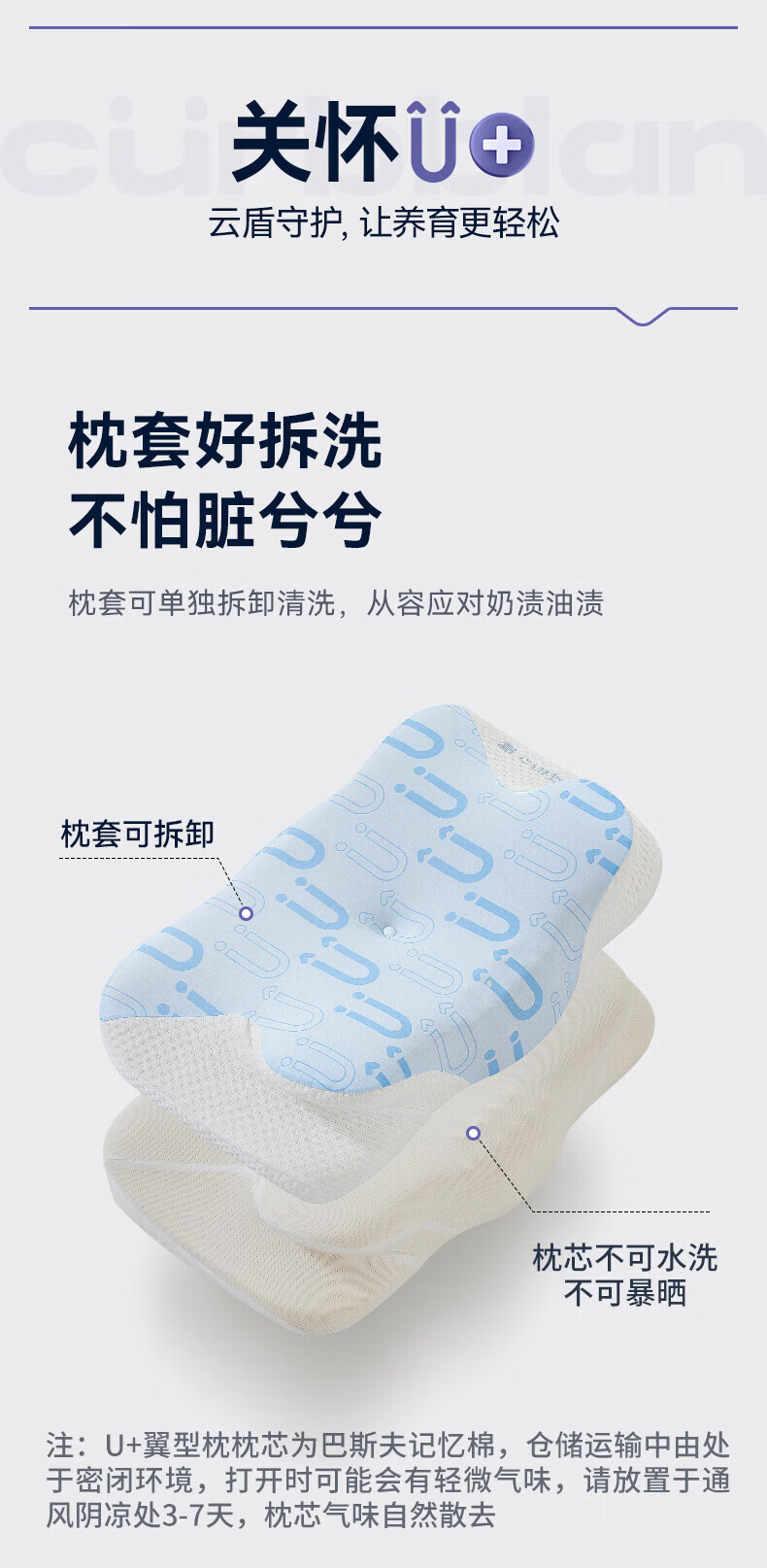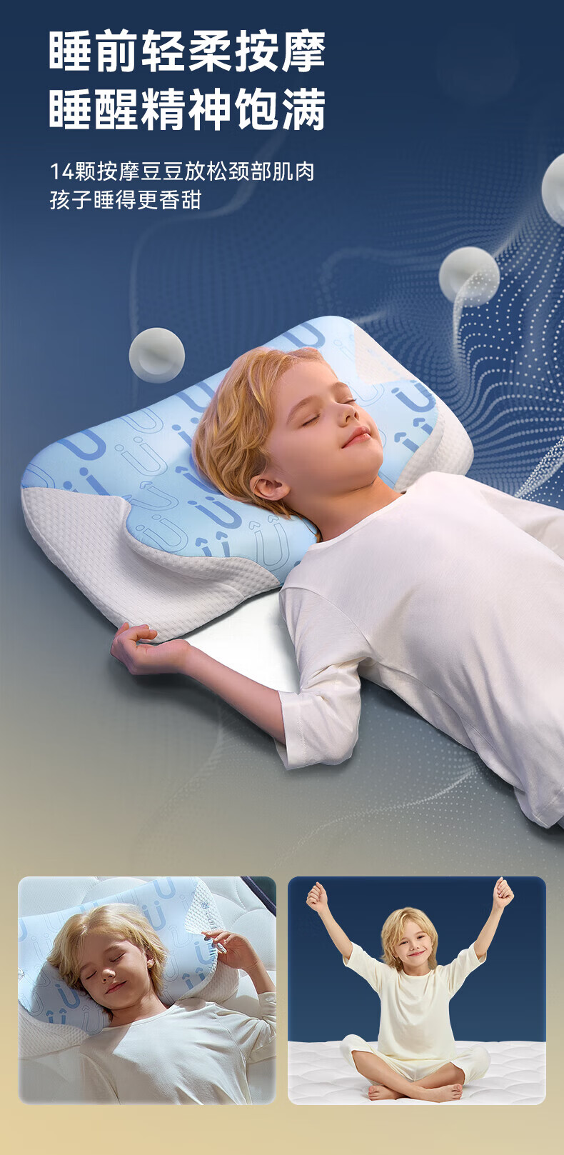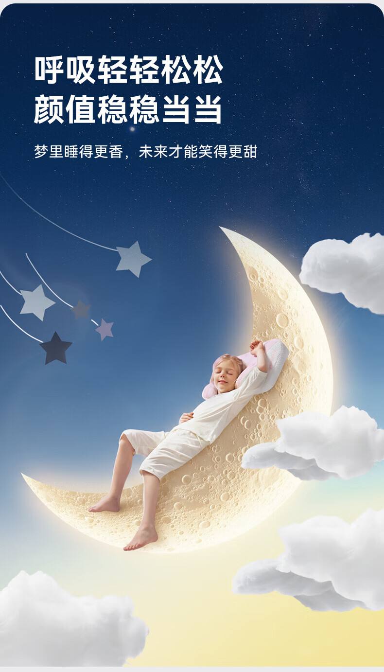 卡伴【吉娜推荐】儿童枕头宝宝云翼护颈枕儿童记忆棉枕头 蓝色 二段