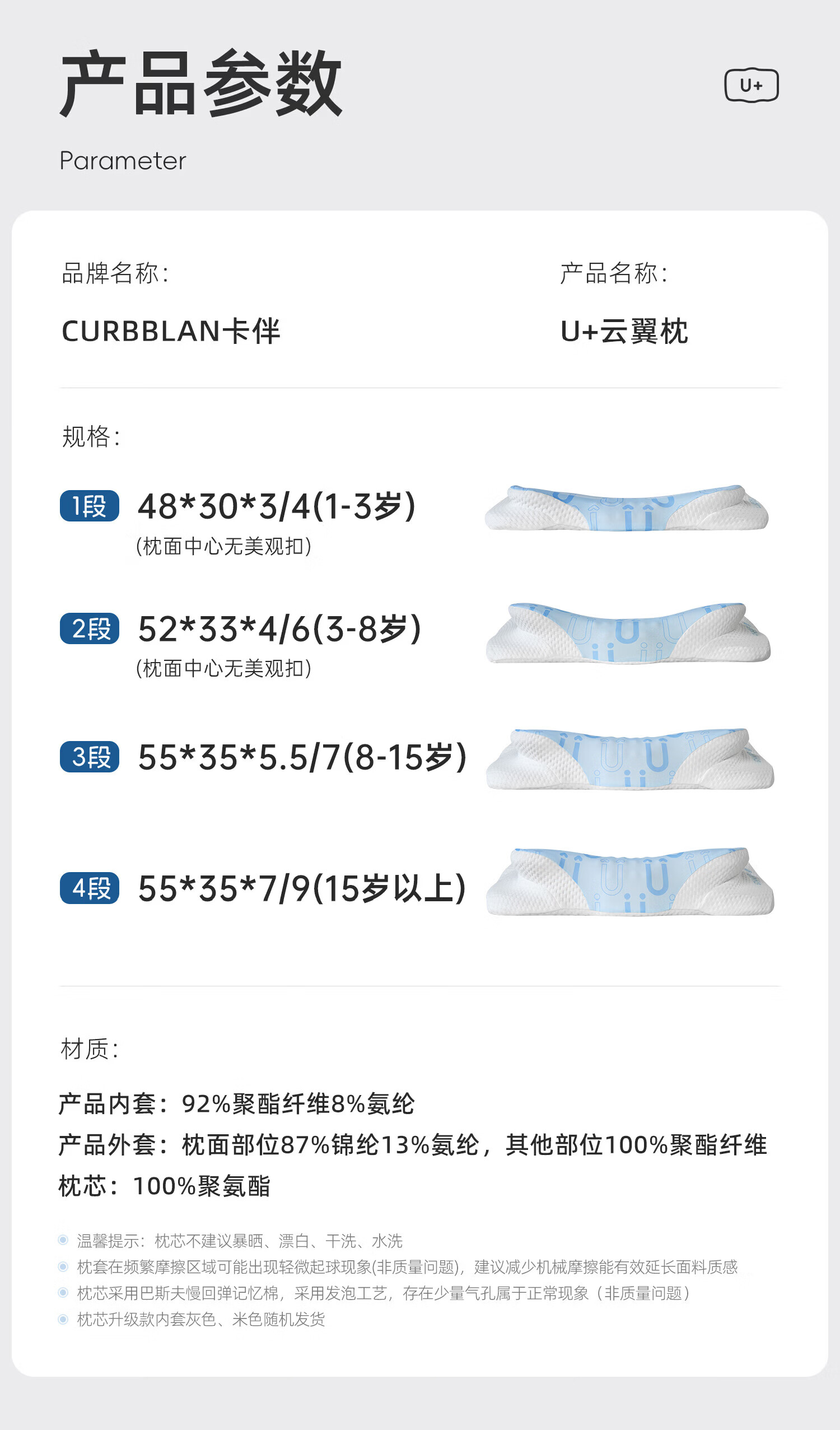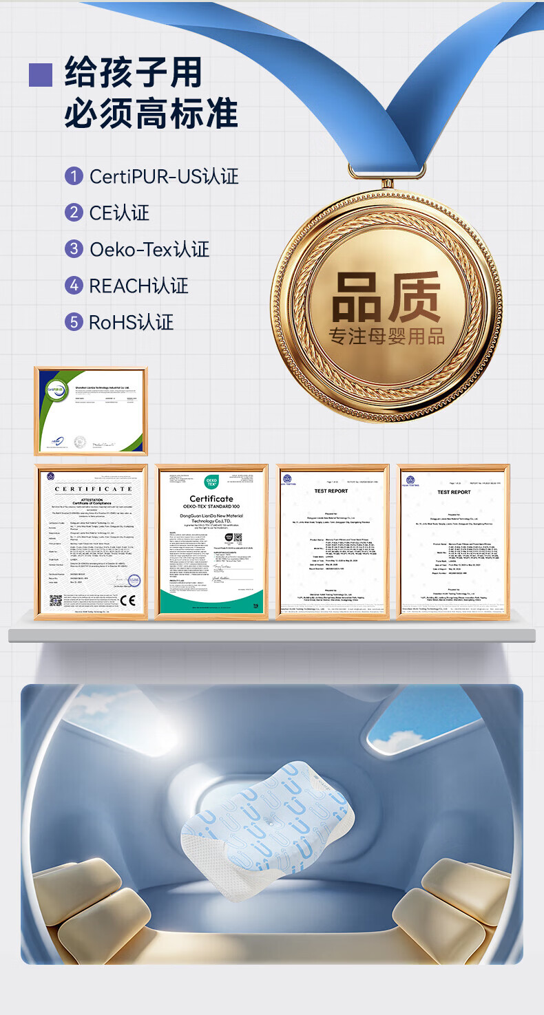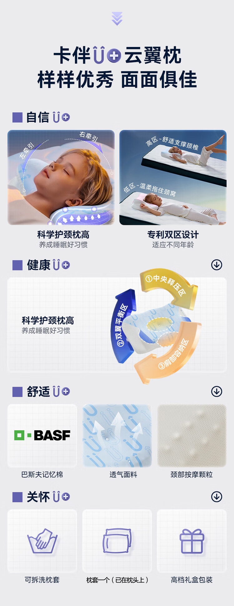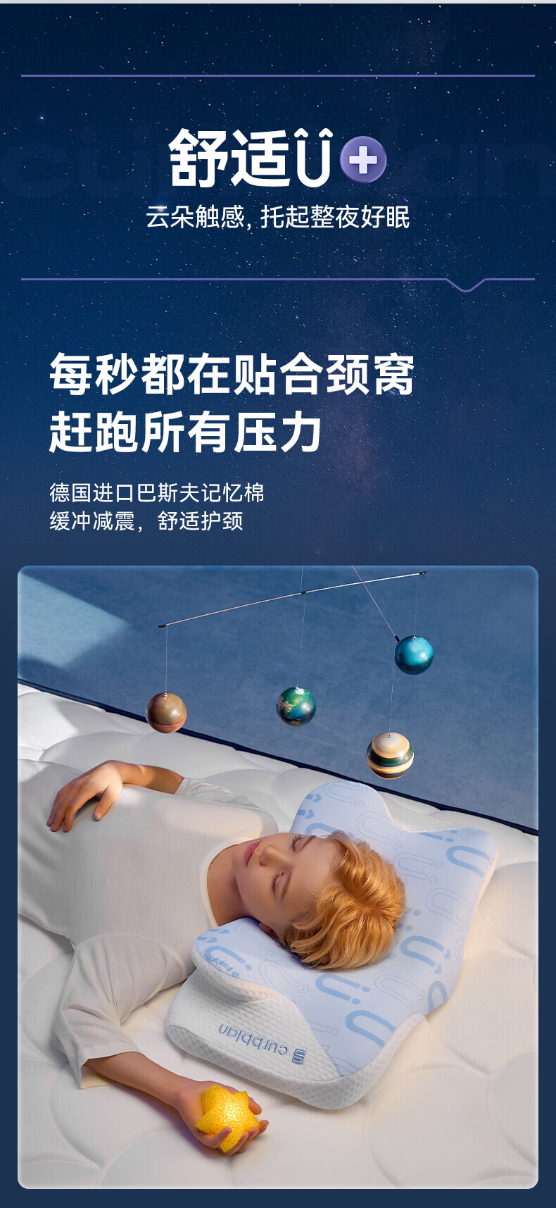 卡伴【吉娜推荐】儿童枕头宝宝云翼护颈枕儿童记忆棉枕头 蓝色 二段