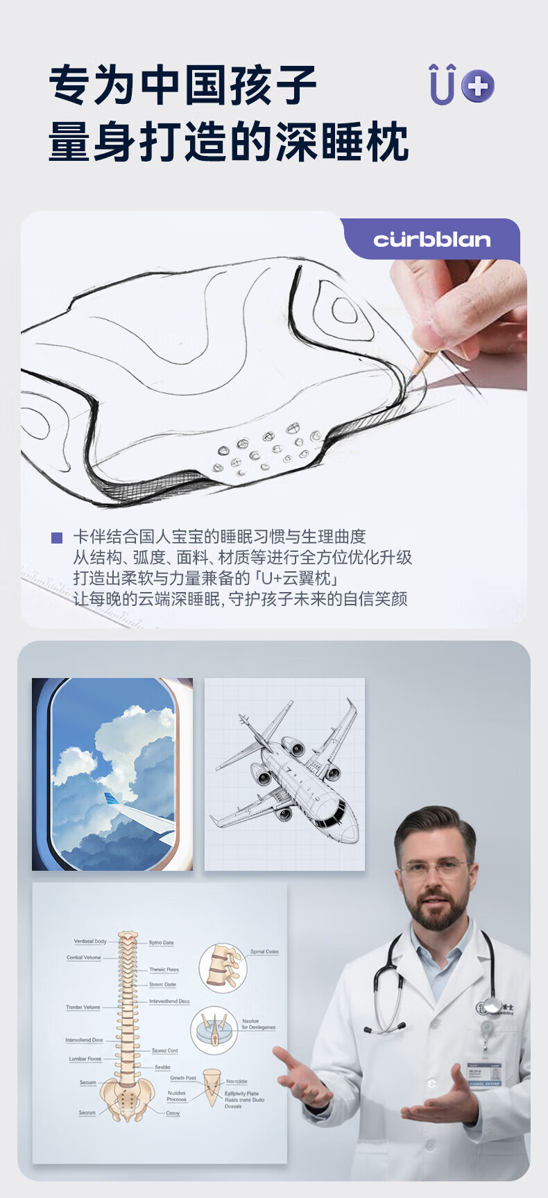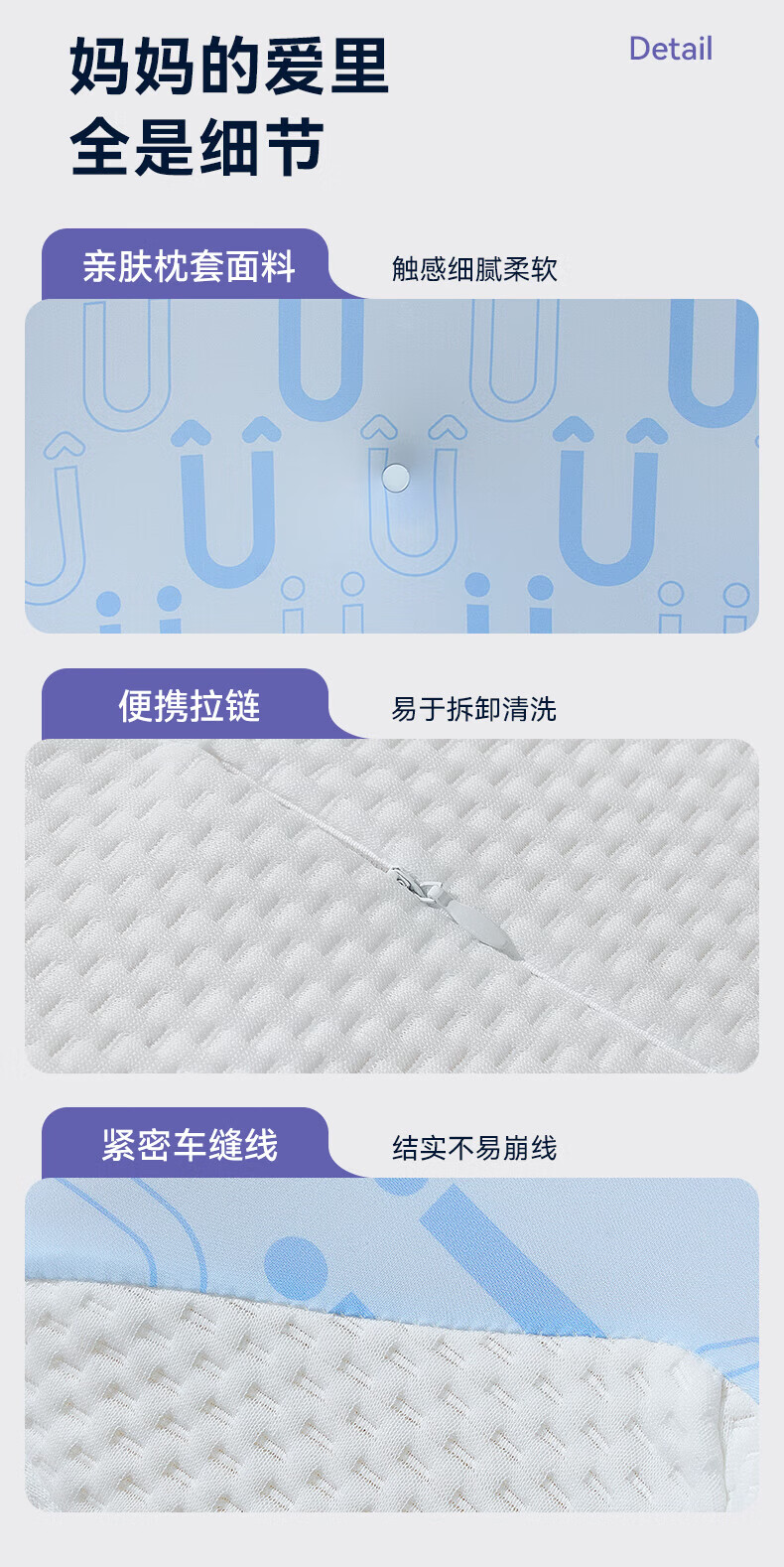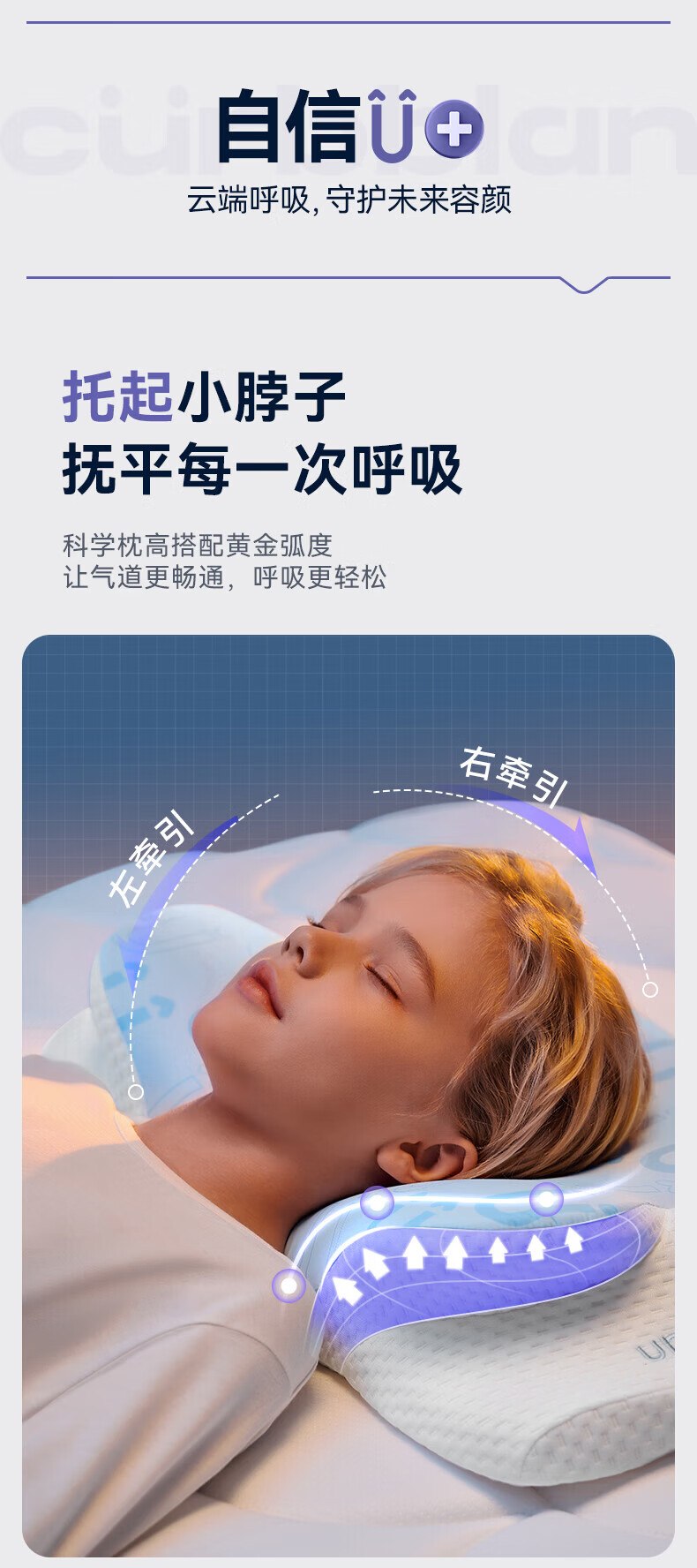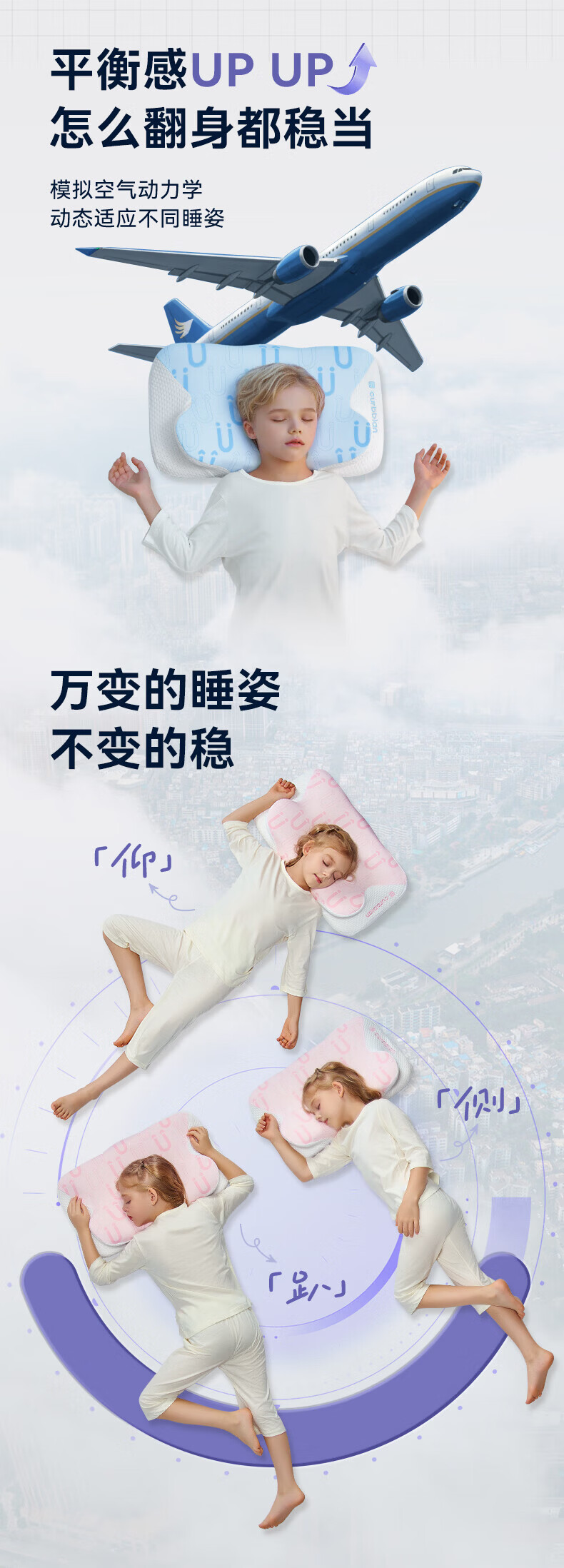卡伴【吉娜推荐】儿童枕头宝宝云翼护颈枕儿童记忆棉枕头 蓝色 二段