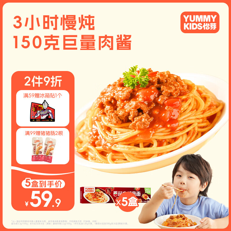 怡芽意大利面招牌番茄肉酱意面条高担保营养速食意面260g早餐面条新品 番茄肉酱意面260g*5