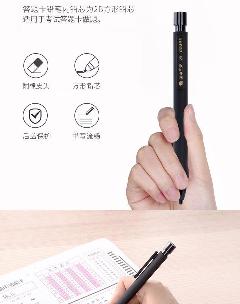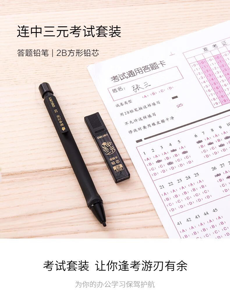 得力连中三元涂卡笔套装 考试中高考专用自动铅笔涂卡笔 2B铅笔考试必备 中高考加油S356