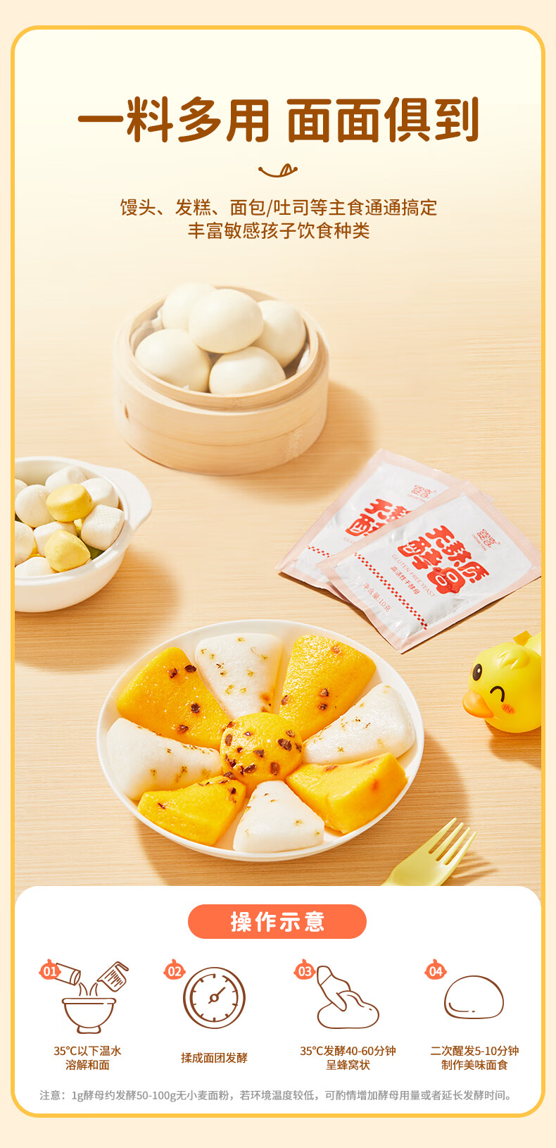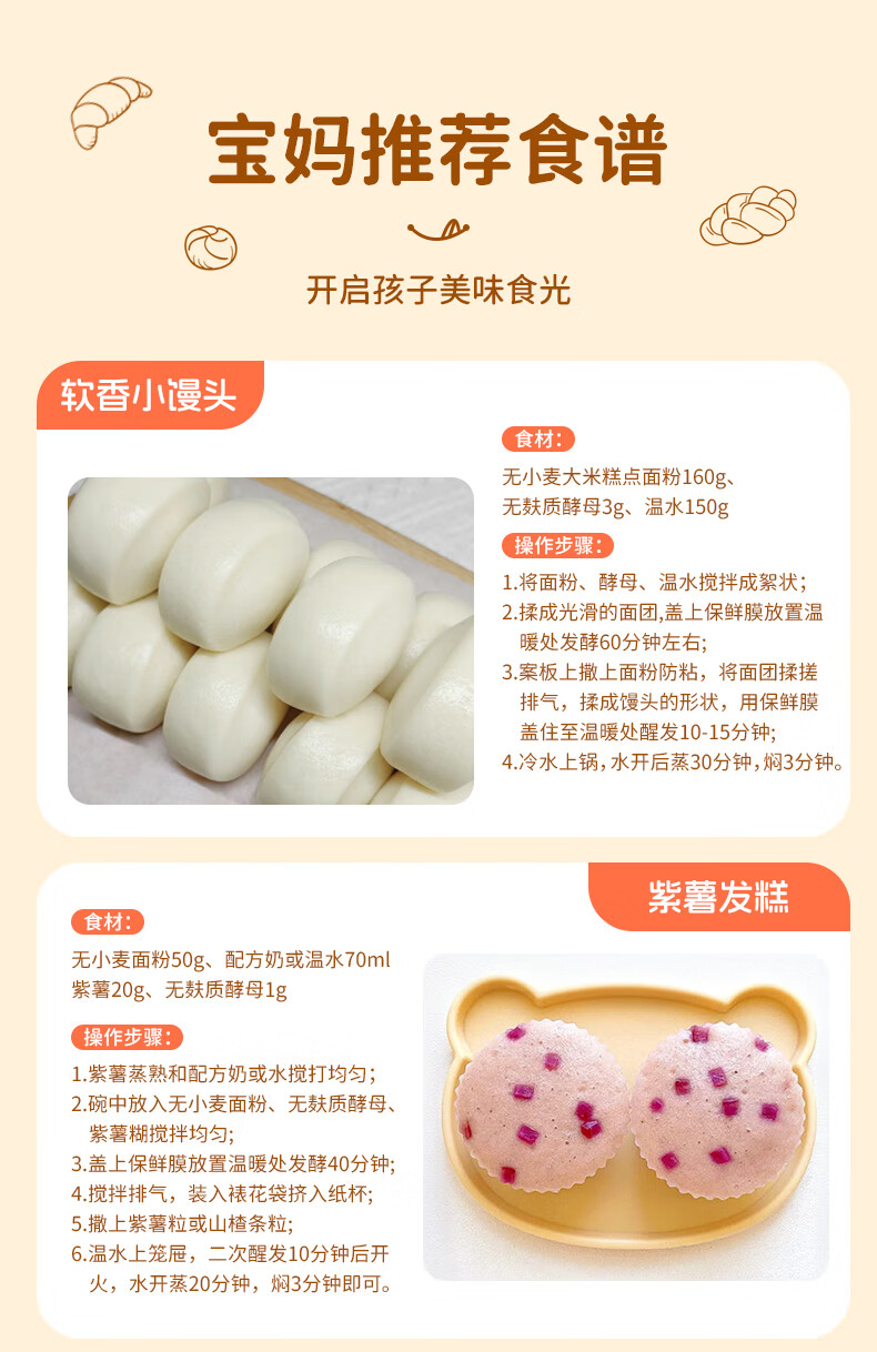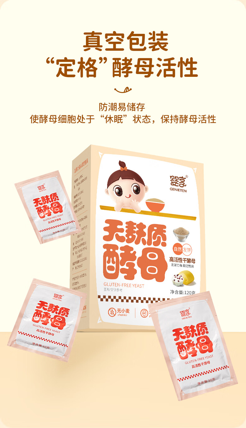 婴享无麸质酵母无小麦高活性儿童馒头面包专用营养发面自然发酵粉120g