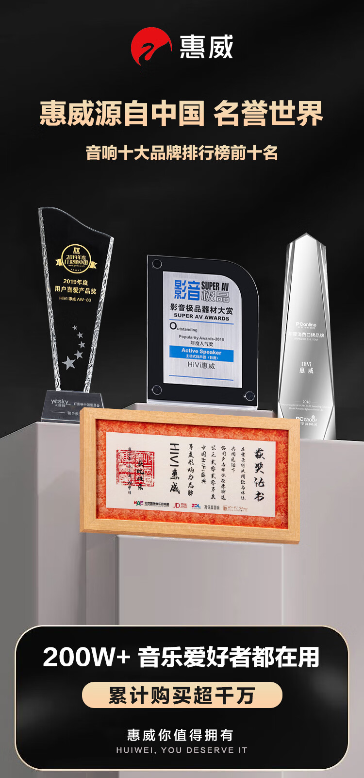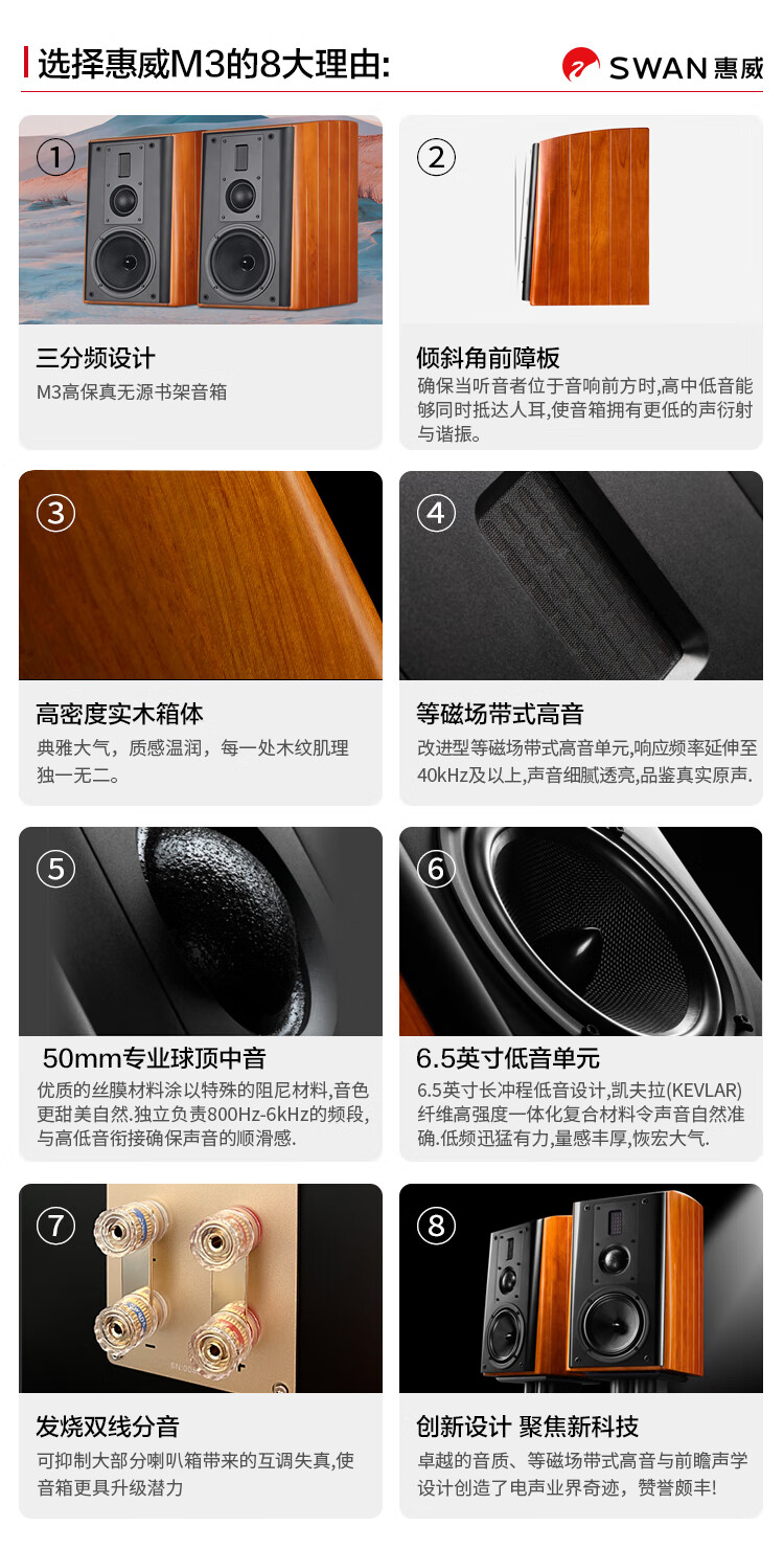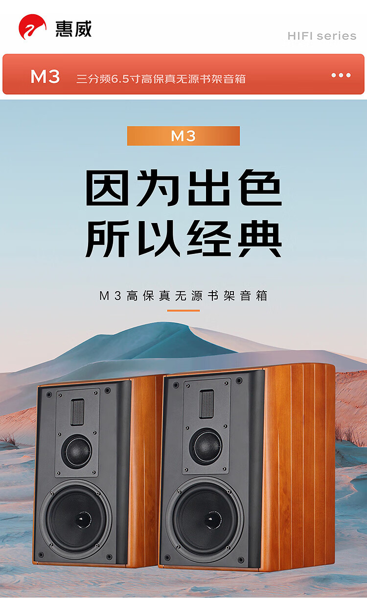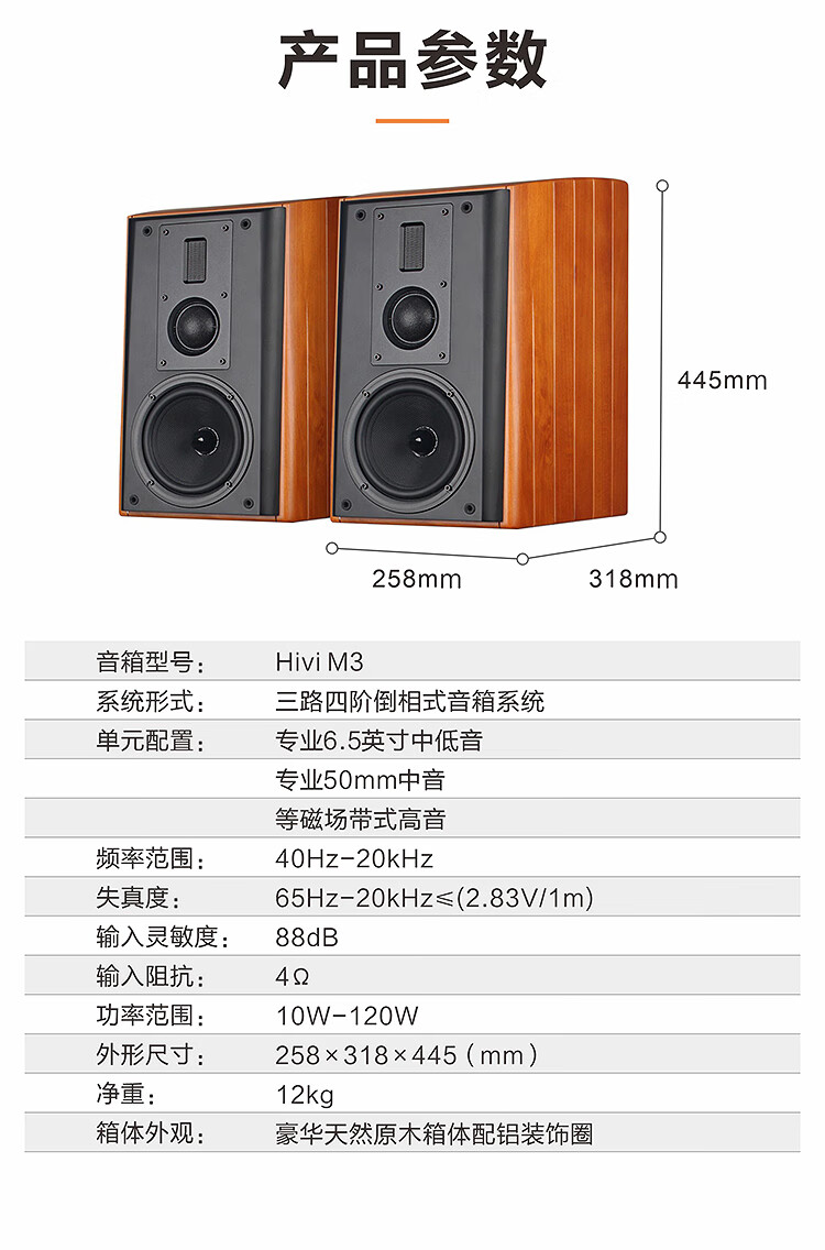 惠威(HiVi)M3等磁场带式高音 高保真无源音响 经典HIFI6.5英寸三分频书架 实木音响 M3(不含功放)