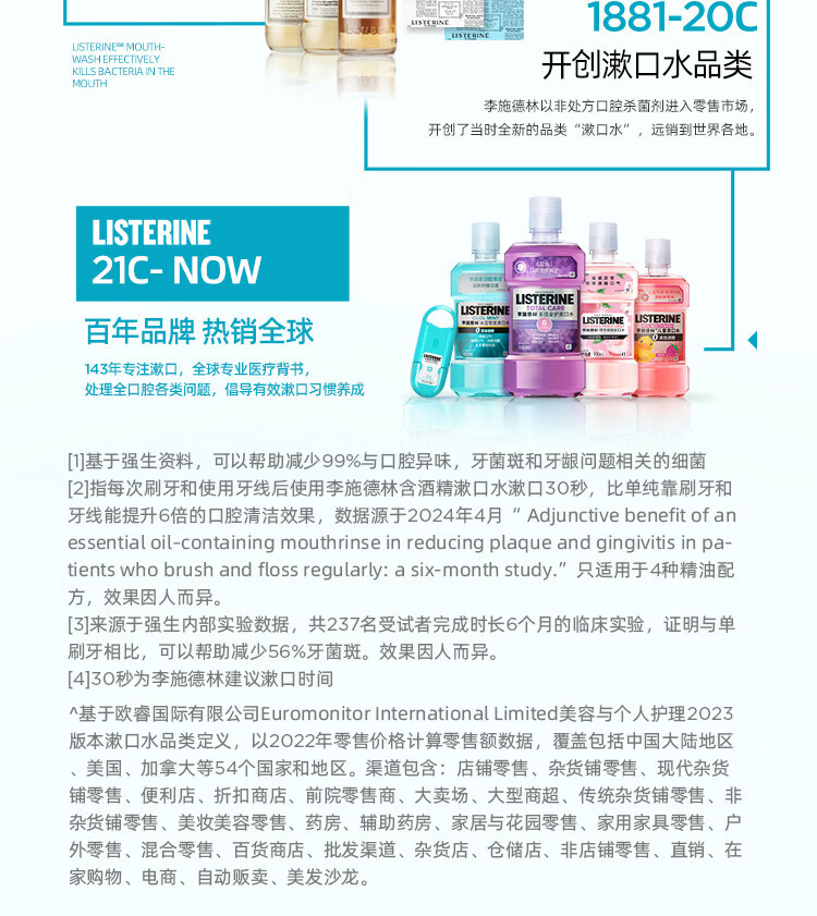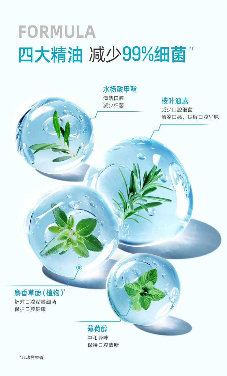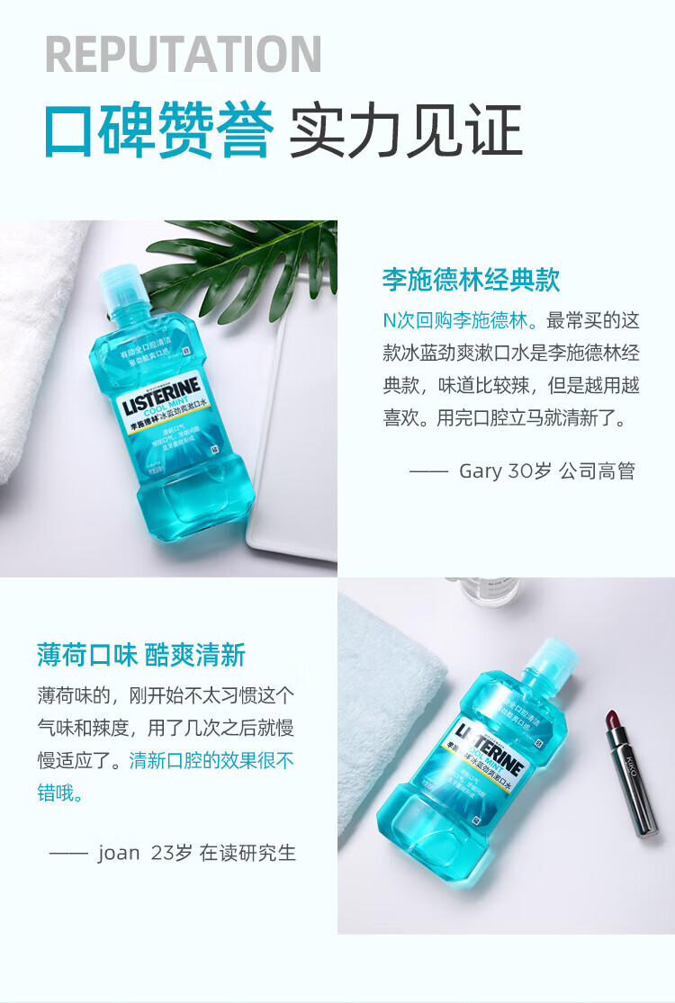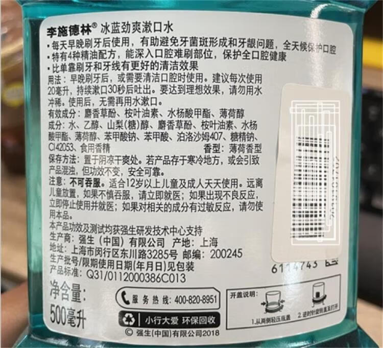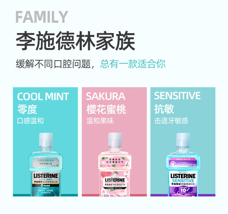 李施德林精油漱口水冰蓝劲爽口味清新气异味清洁含酒精减少口腔细菌 冰蓝劲爽500ml*3瓶【店长推荐】