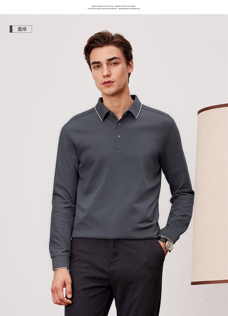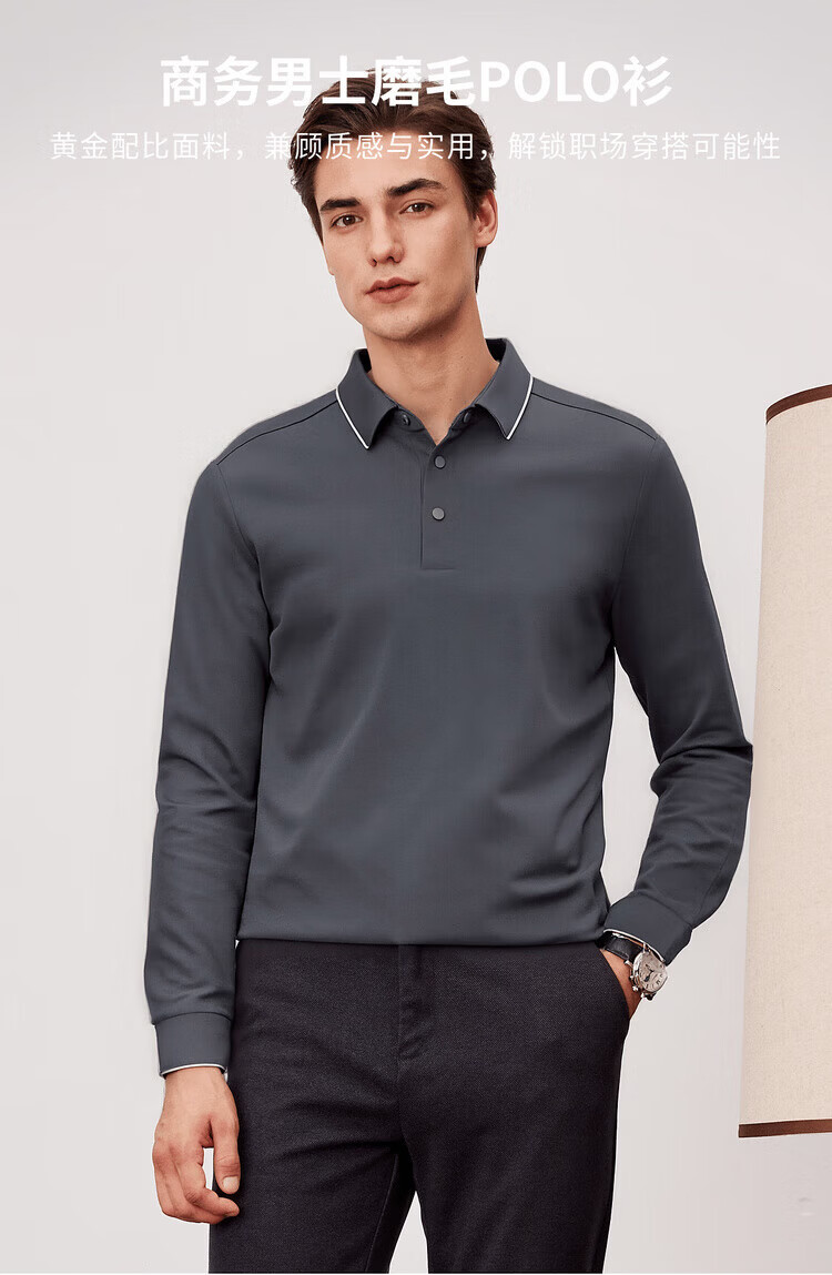 杉杉(FIRS)【莫代尔+桑蚕丝+山羊绒】垂顺高弹锦氨面料商务男士磨毛POLO衫 黑色 M 170/88A