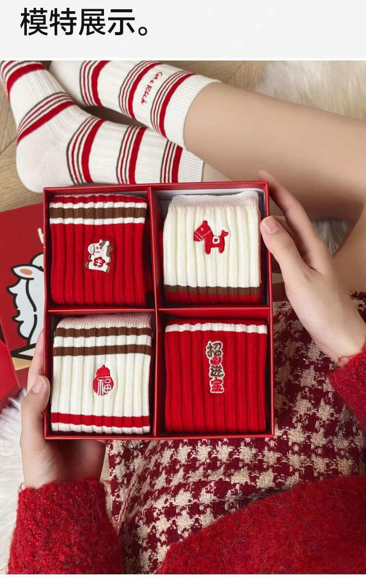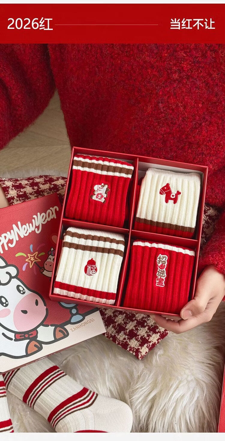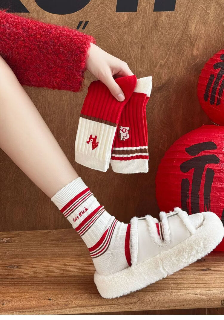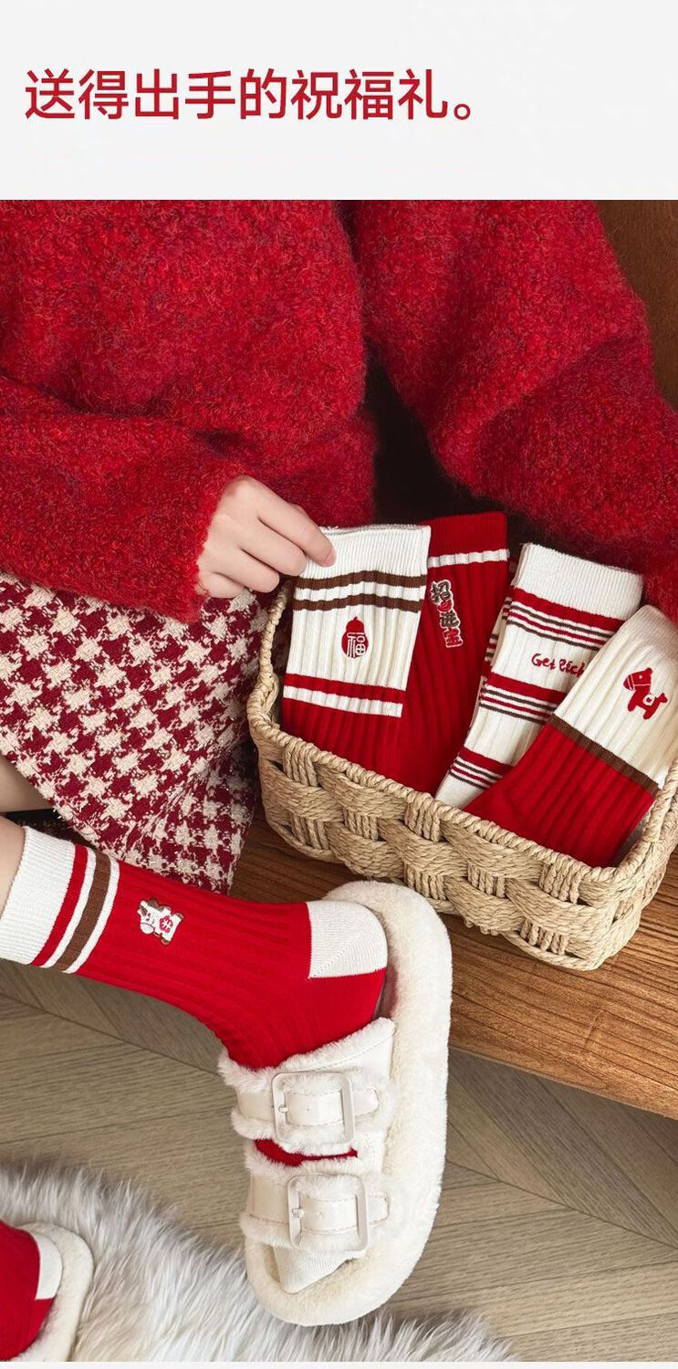 小棉工2026马年红色袜子女中筒袜秋冬款喜庆加厚保暖情侣长筒袜防臭潮袜 每双仅1元多】五色各二【共10双】 均码 小棉工 10A抑菌/高弹透气/抗起球