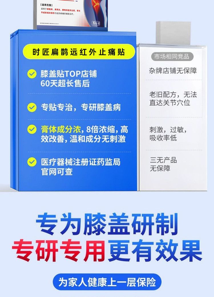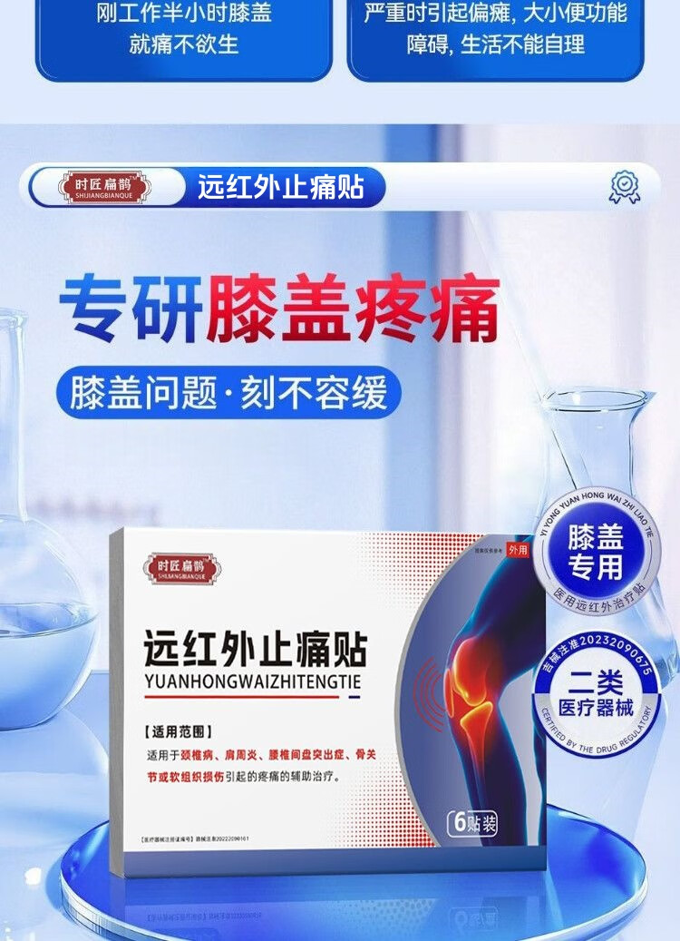 名医扁鹊时匠扁鹊膝盖贴医用远红外消痛治疗贴肿胀半月板损伤滑膜炎积液 8盒/6贴-巩固装【时匠扁鹊膝盖贴医用】