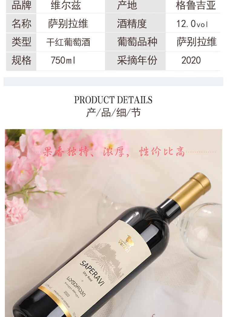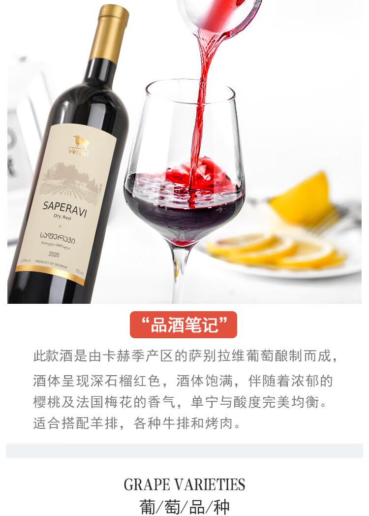 维尔兹【维尔兹】格鲁吉亚红酒 葡萄酒 萨别拉维干红葡萄酒 原瓶进口
