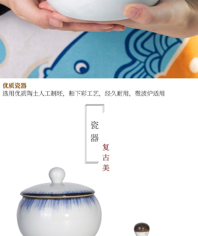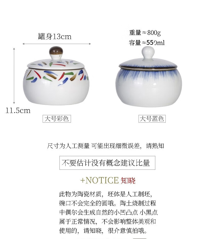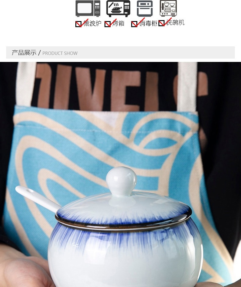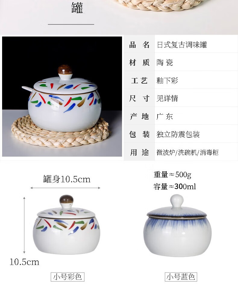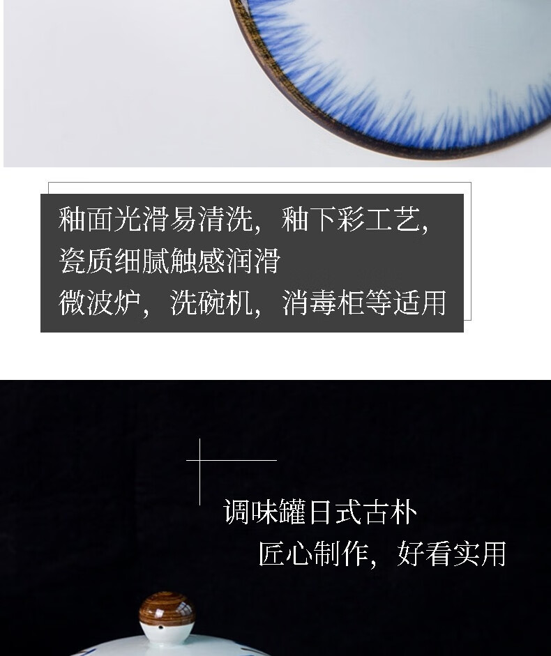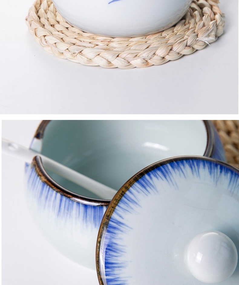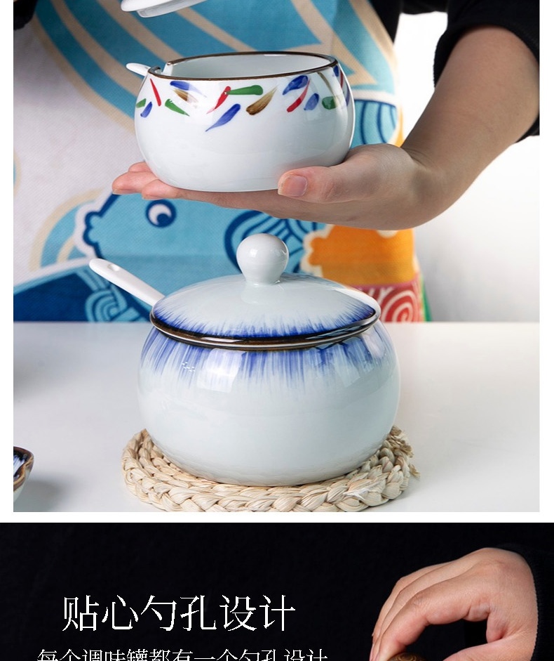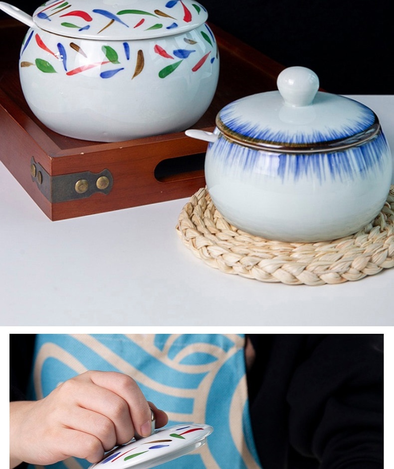 和风四季釉下彩调味罐盐罐厨房调料罐调料盒陶瓷辣椒罐猪油罐炖盅油辣子罐 四色大号调味罐(配勺) 550ml