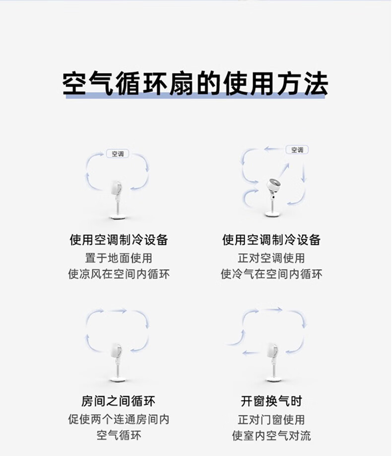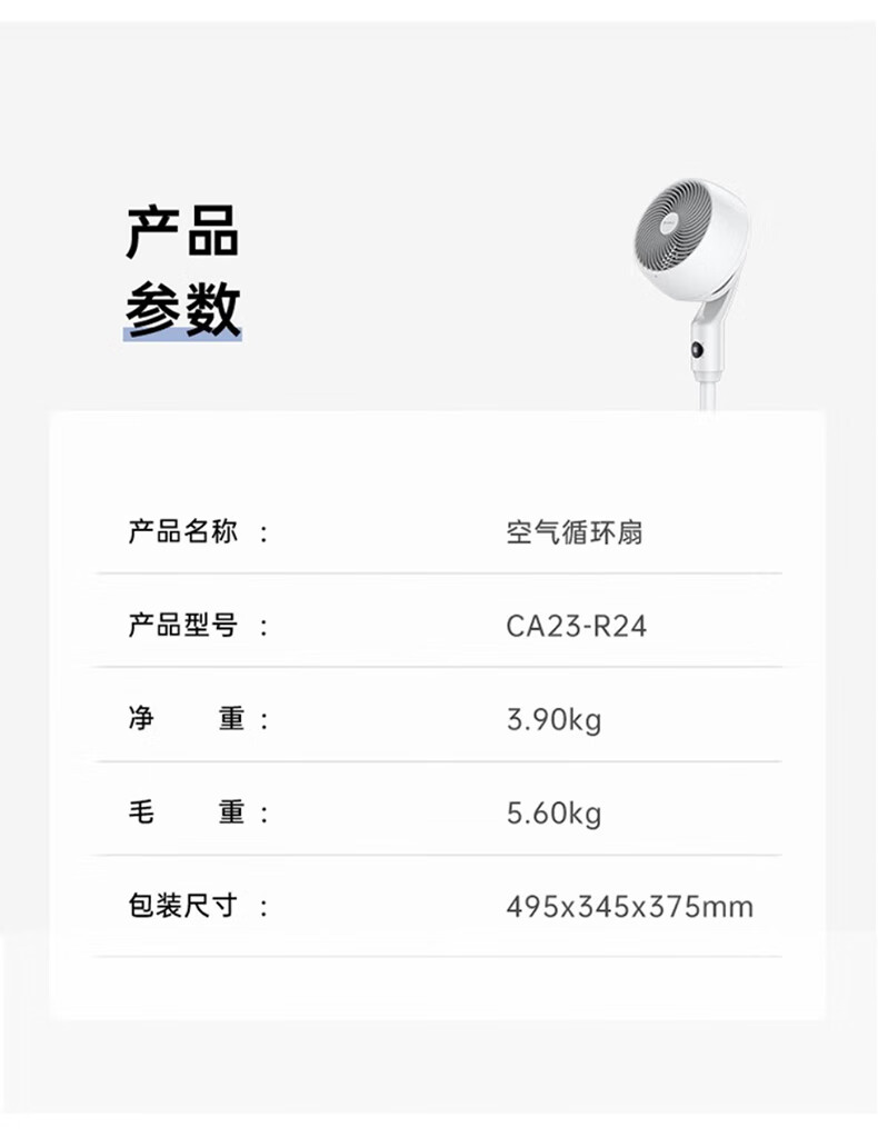 艾美特家用立式循环扇摇头空气循环扇卧式客厅办公电风扇落地扇低噪音风扇循环扇 【D款】白色立式遥控款带负离子CA23-R24