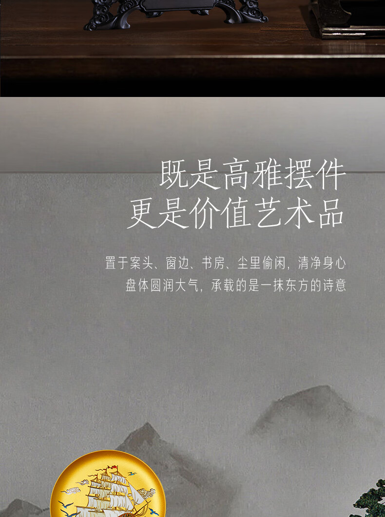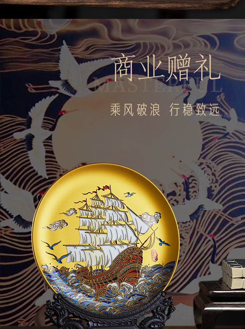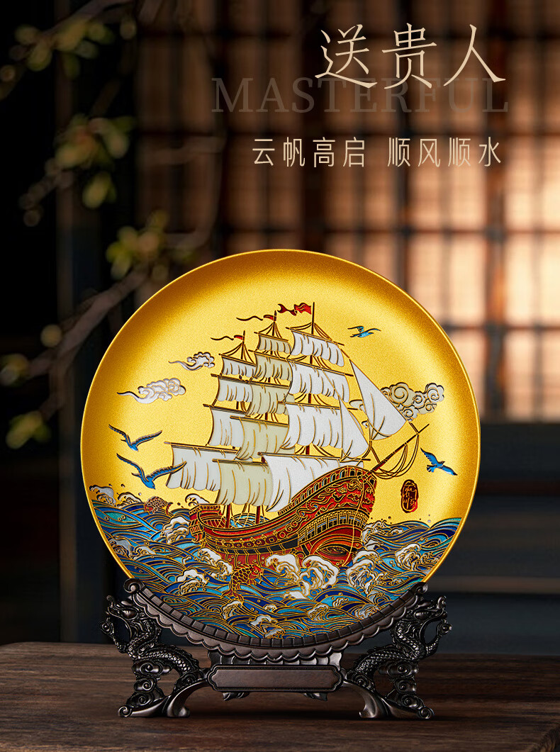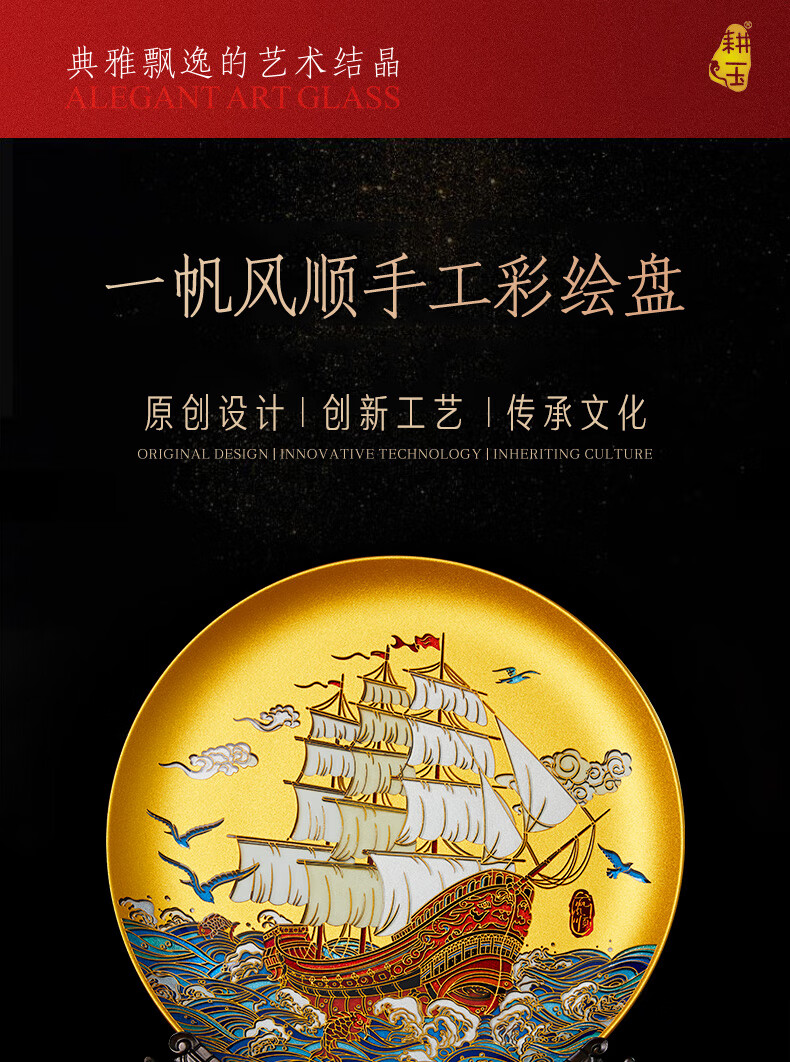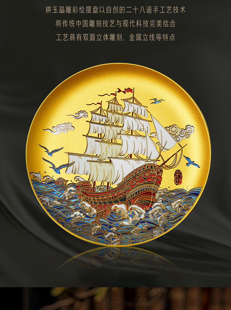 耕玉开业摆件公司乔迁庆典办公室桌面摆件高端一帆风顺高档商务送客户 一帆风顺晶雕手绘盘-Φ32cm定制专用