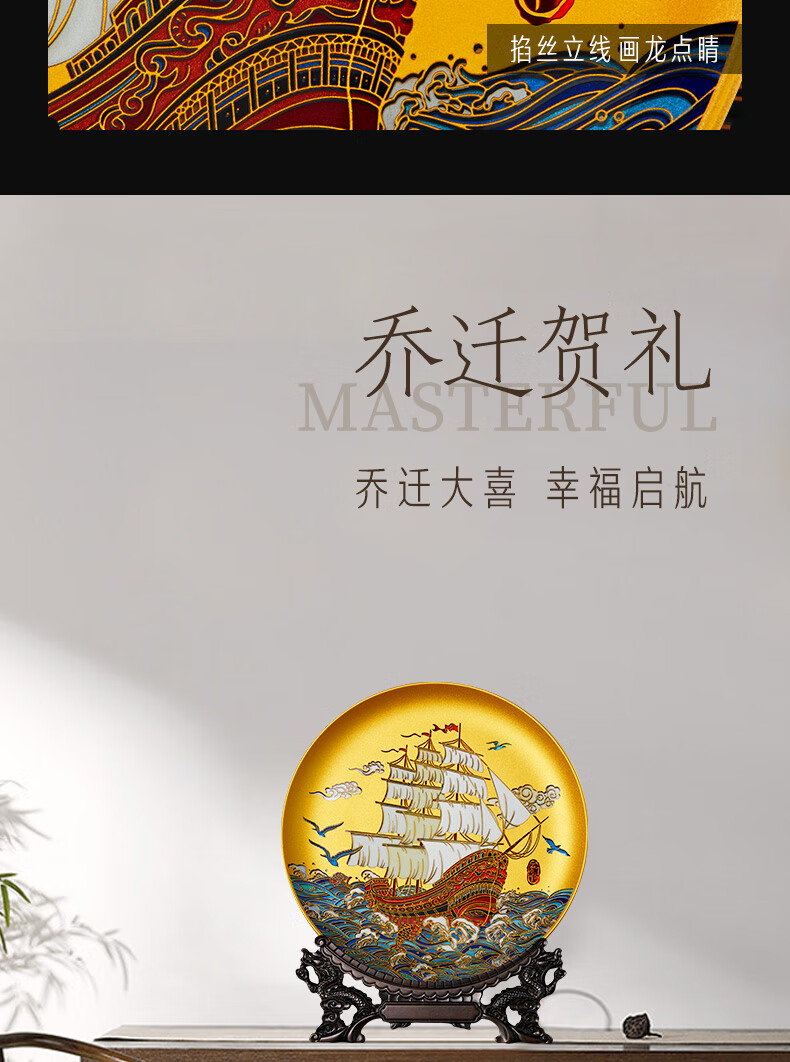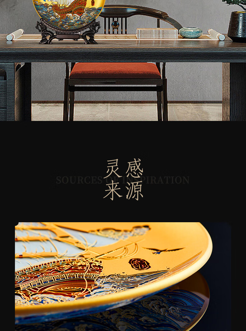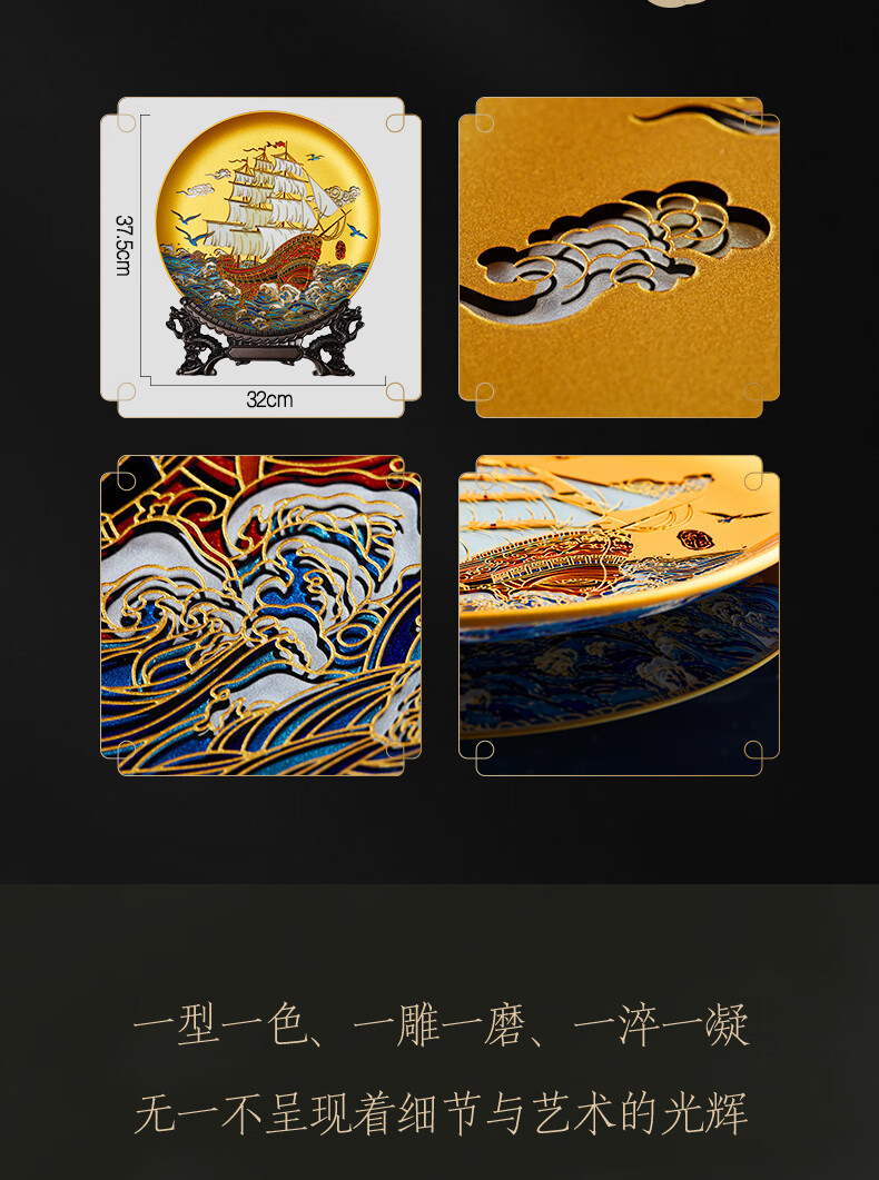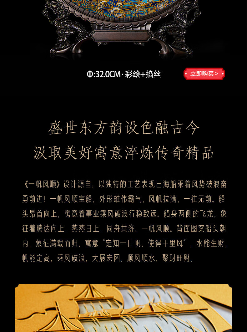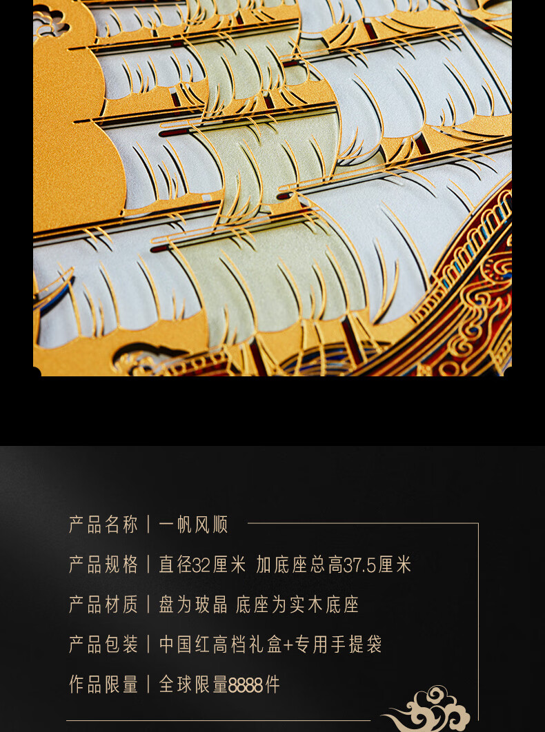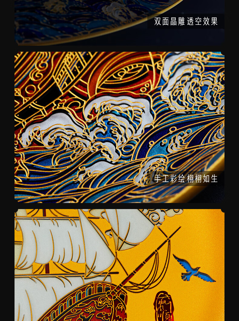 耕玉开业摆件公司乔迁庆典办公室桌面摆件高端一帆风顺高档商务送客户 一帆风顺晶雕手绘盘-Φ32cm定制专用