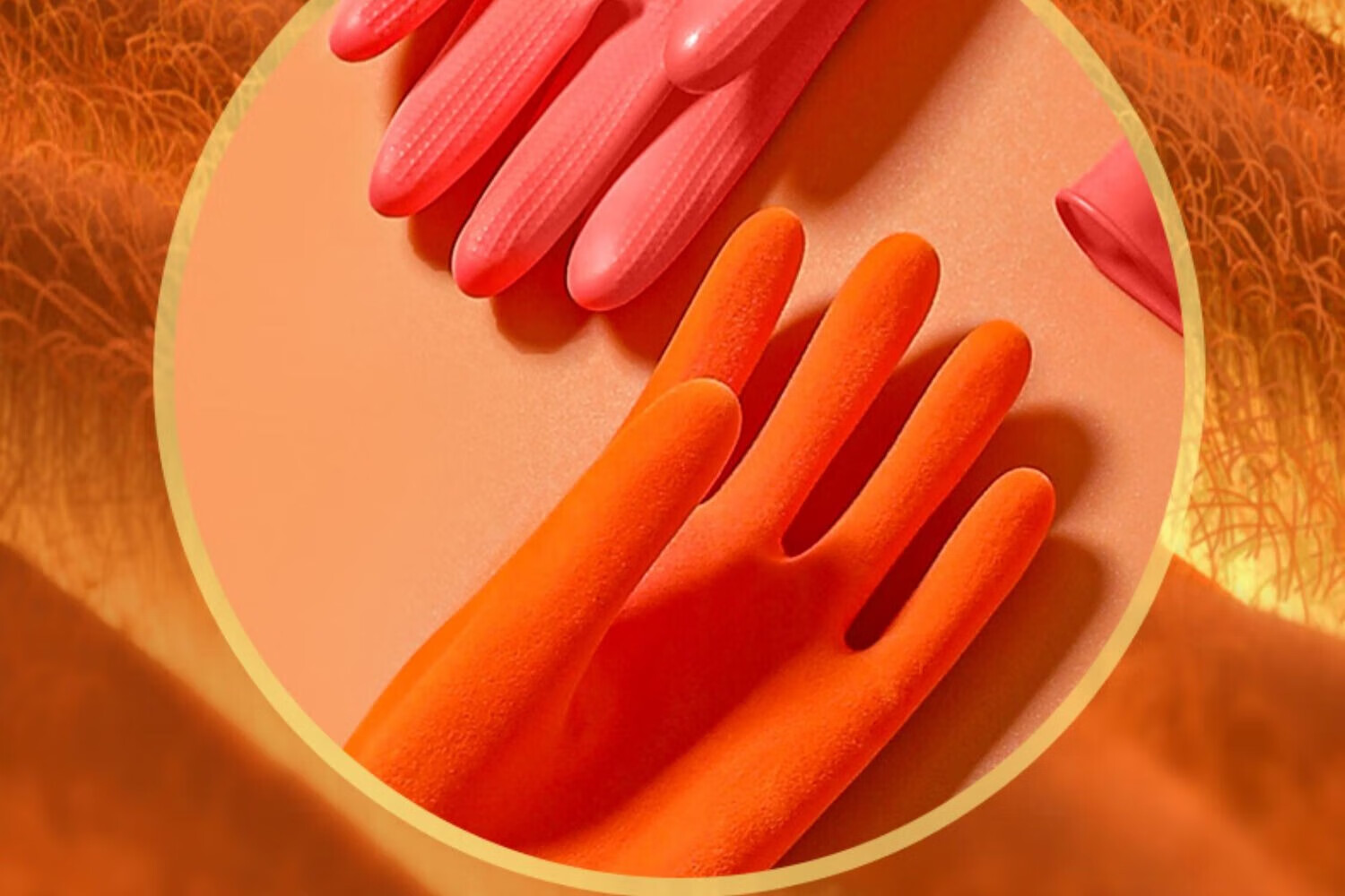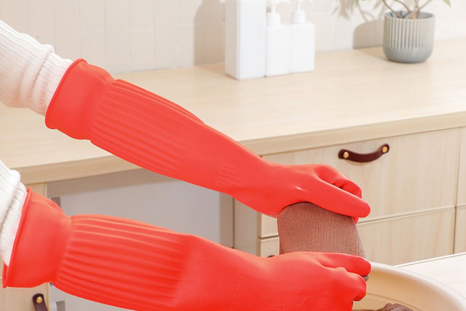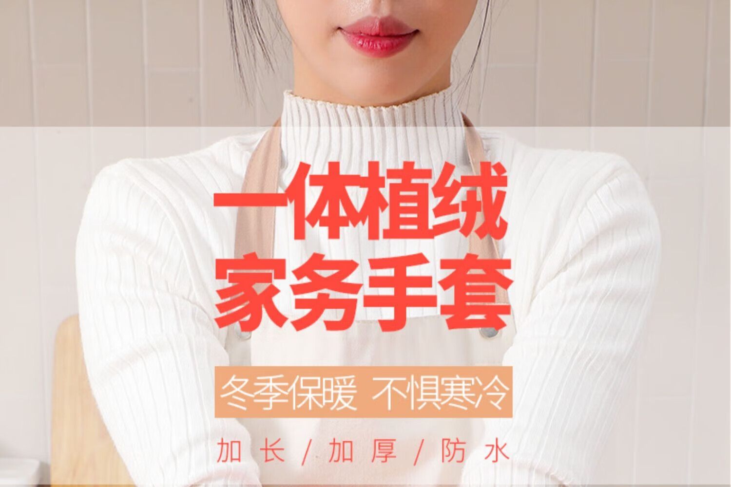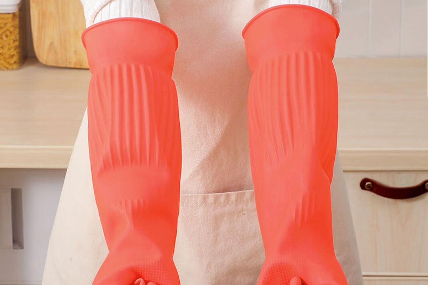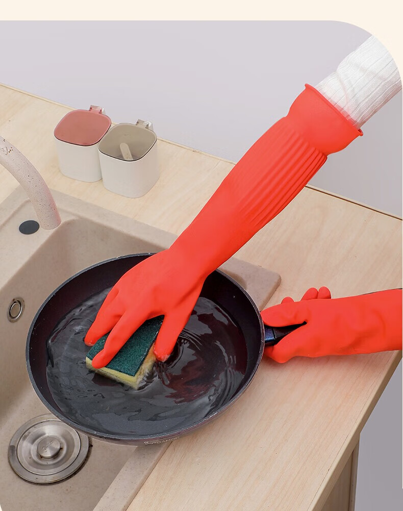 巧姨加长手套橡胶厨房家务耐用加绒洗碗女防水洗衣服胶皮加厚乳胶冬季 5双】绿色50CM 105G拉毛绒-均码 拉毛绒 均码