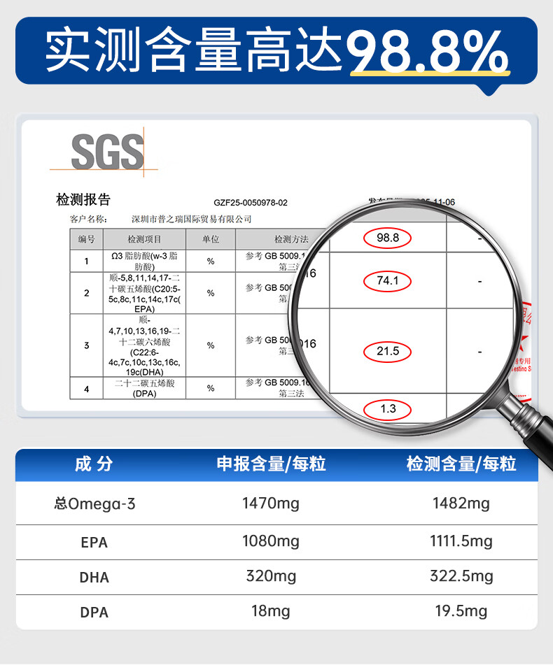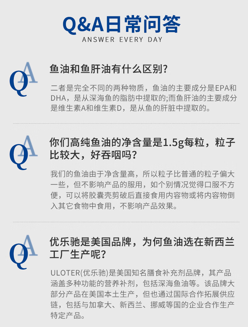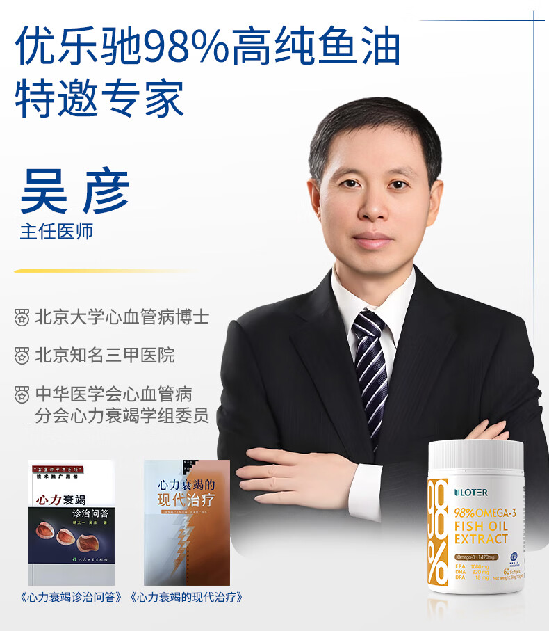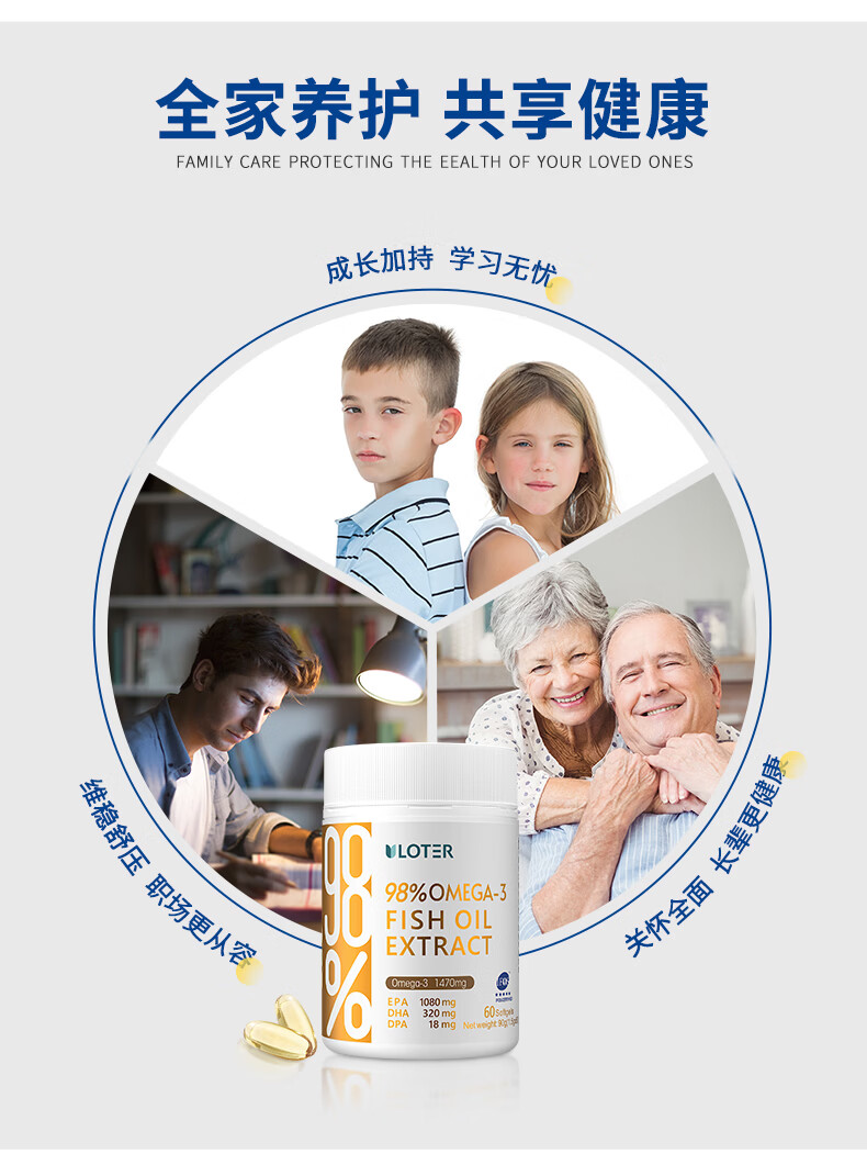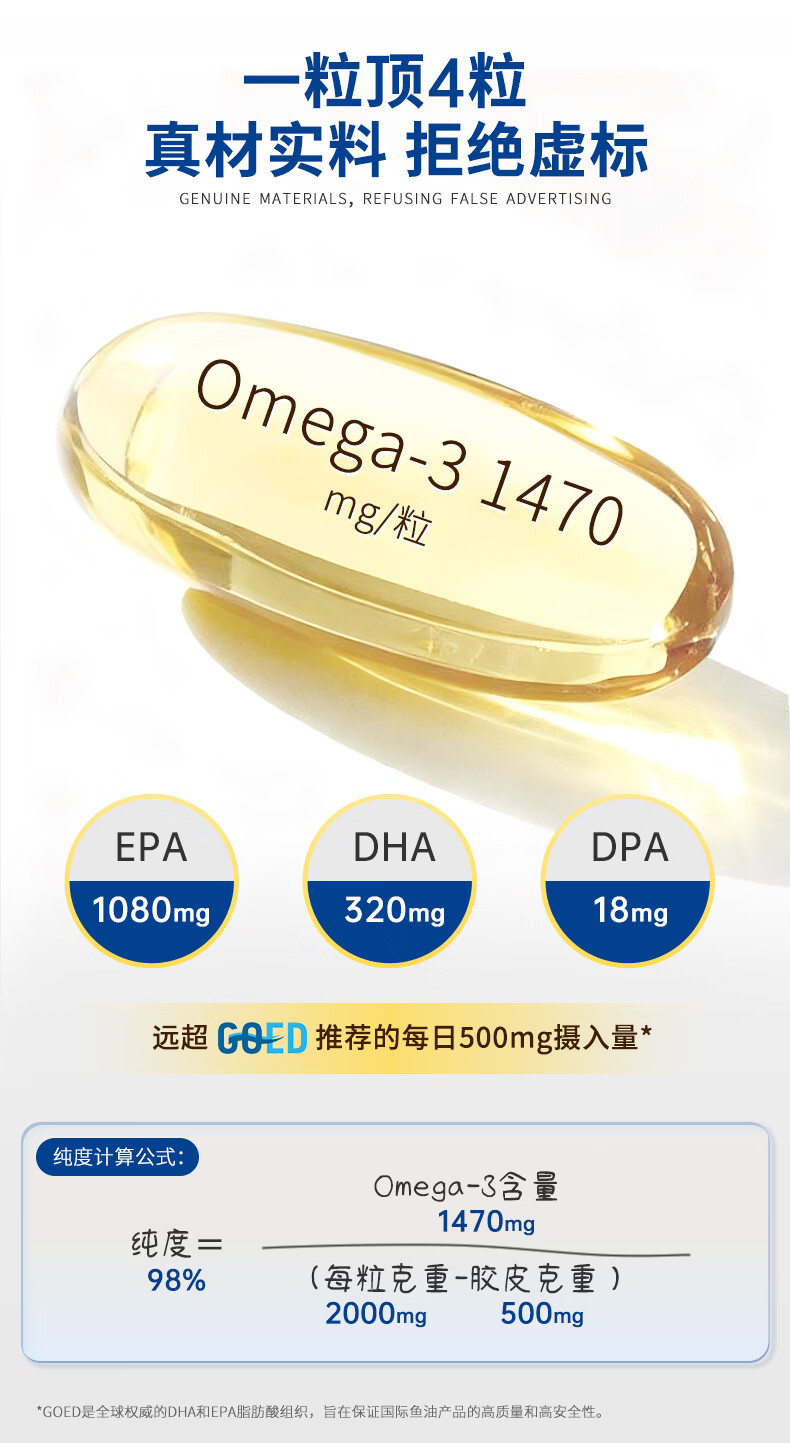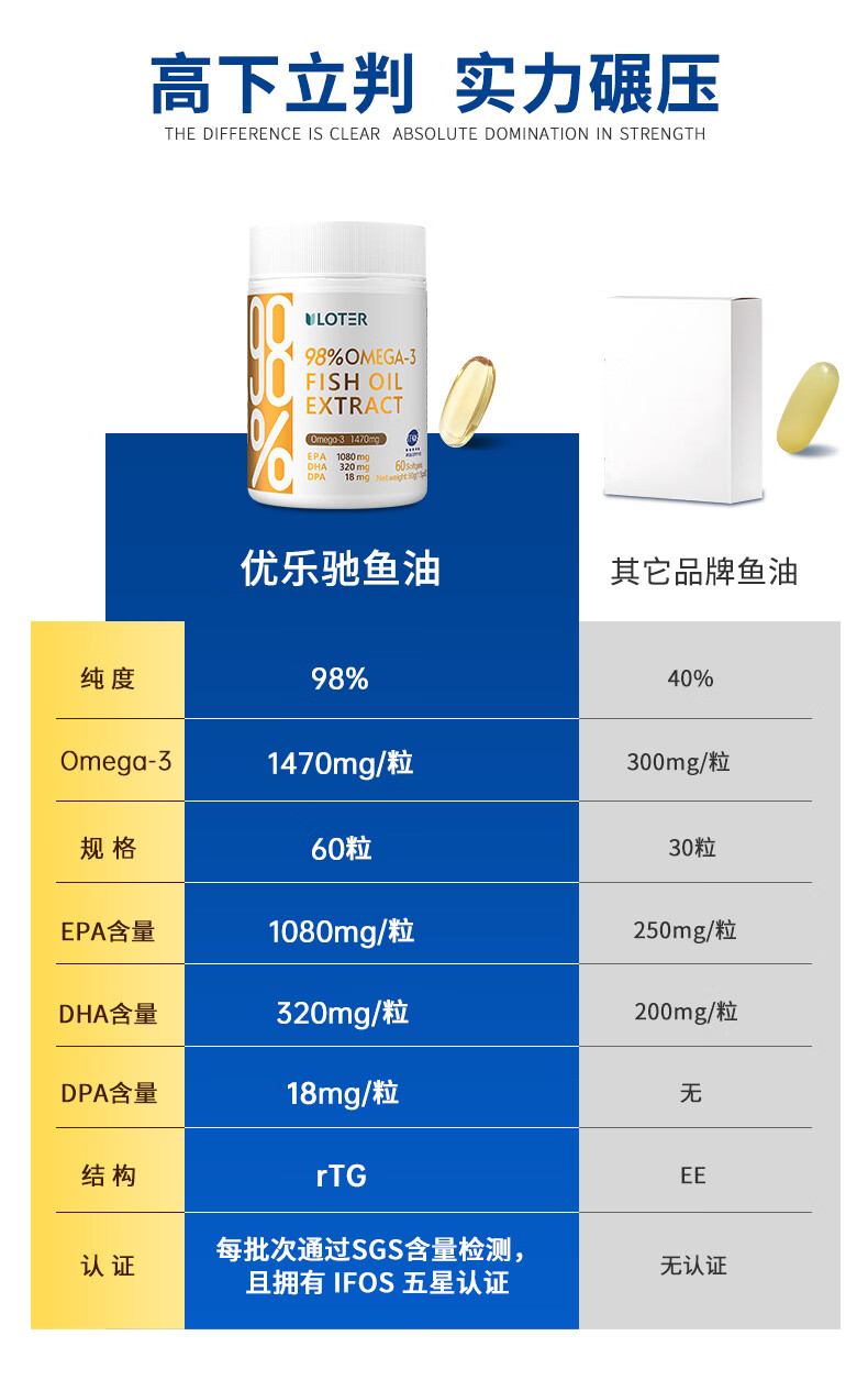 优乐驰鱼油98%高纯度rTG型鱼油EPA+DHAomega3五星认证青少年中老年60粒 60粒*3瓶 周期调养降血脂