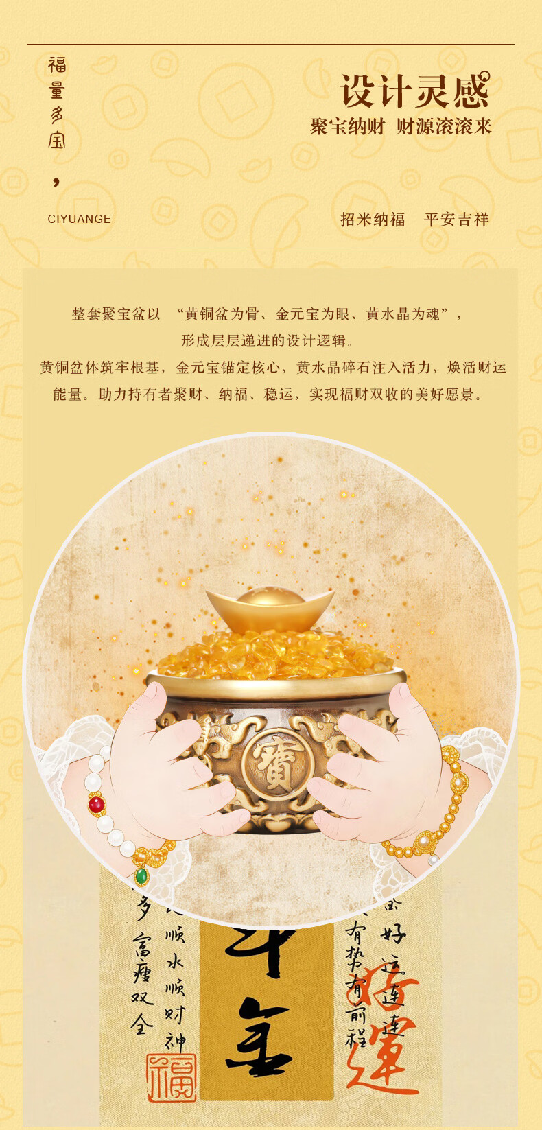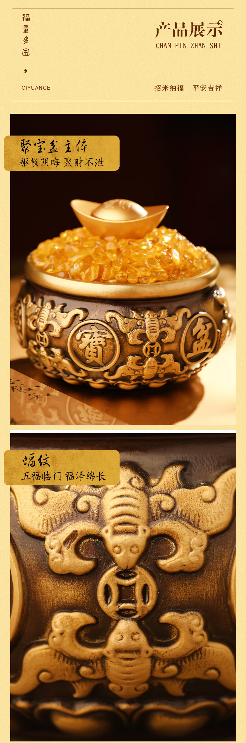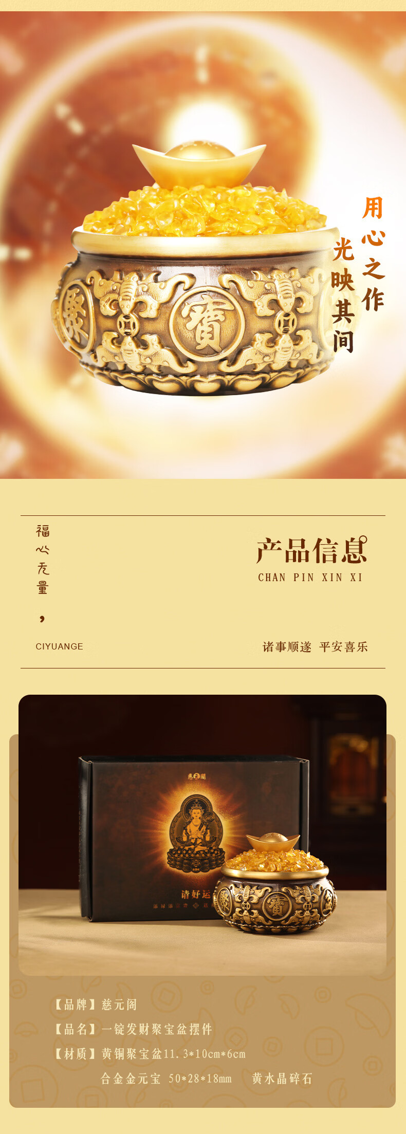 慈元阁吉祥如意聚宝招财摆件家用家居客厅电视柜玄关收银台聚宝盆装饰品 吉祥如意聚宝招财摆件