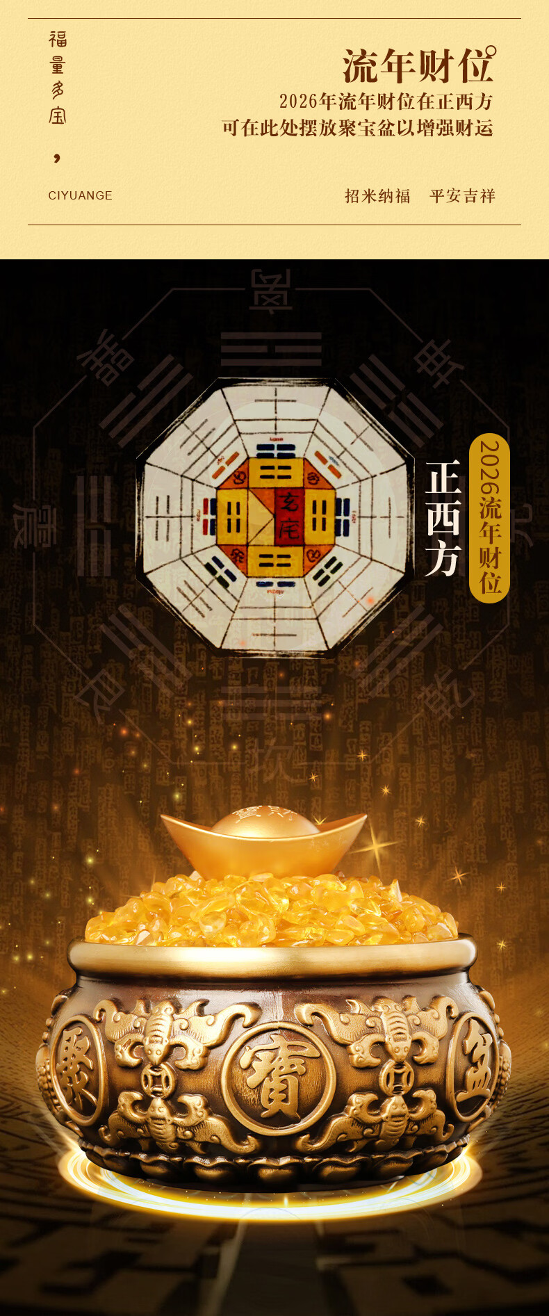 慈元阁定制2026年家居摆件宝满福溢琉璃聚宝盆方位书房吉祥礼物 财满福溢琉璃聚宝盆【臻选款】