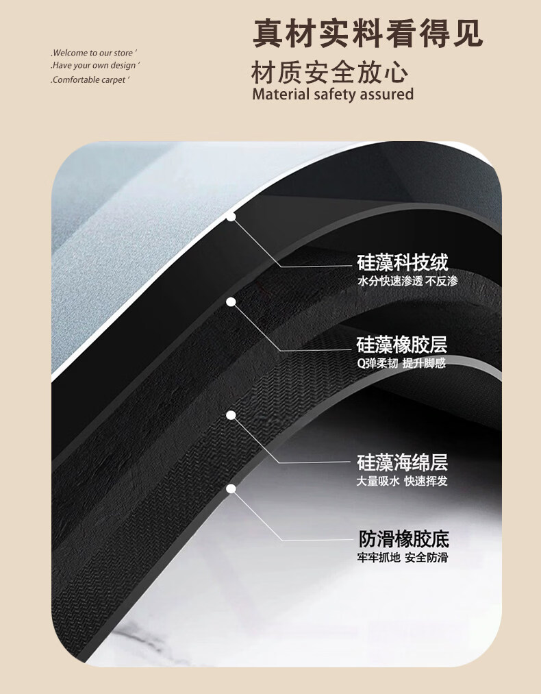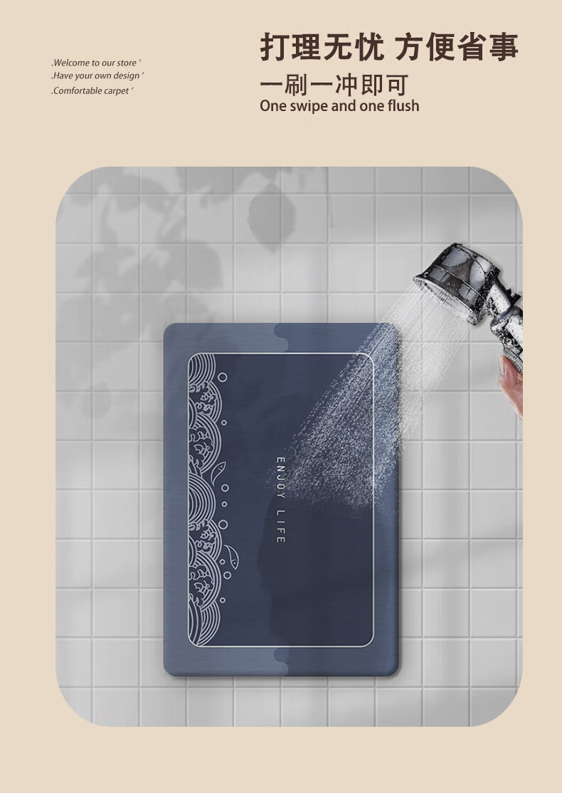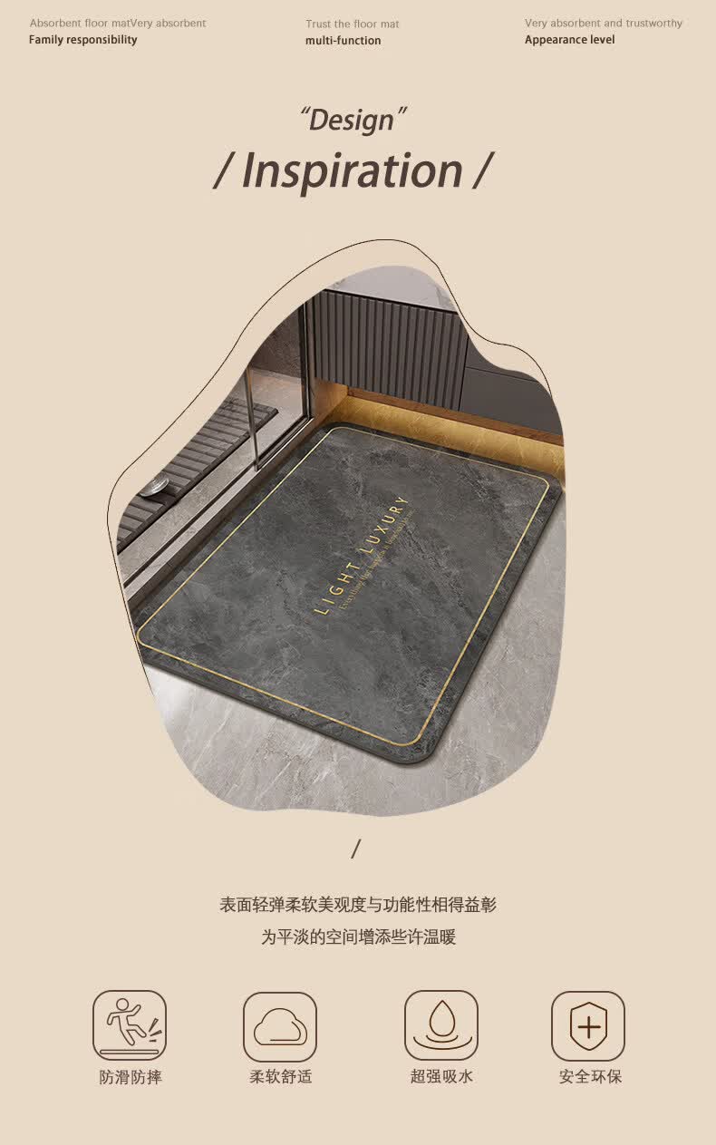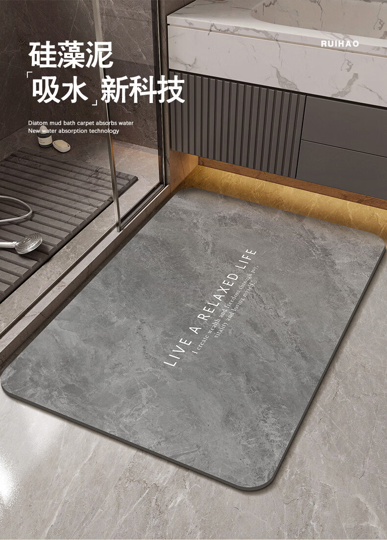 DONOYA 多罗亚浴室硅藻泥卫生间地垫浴室门口吸水地垫卫生间门口吸水防滑垫脚垫 雾尽【升级加厚硅藻泥4mm丨吸水免擦洗】 40cm*60cm 【瞬间吸水 脚过即干】