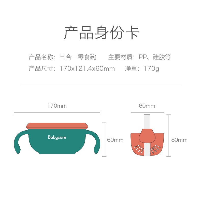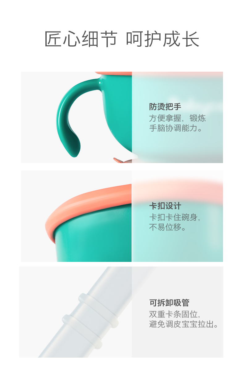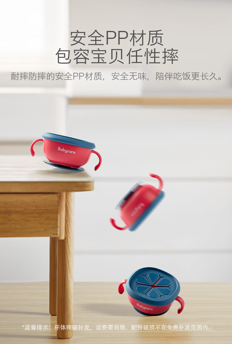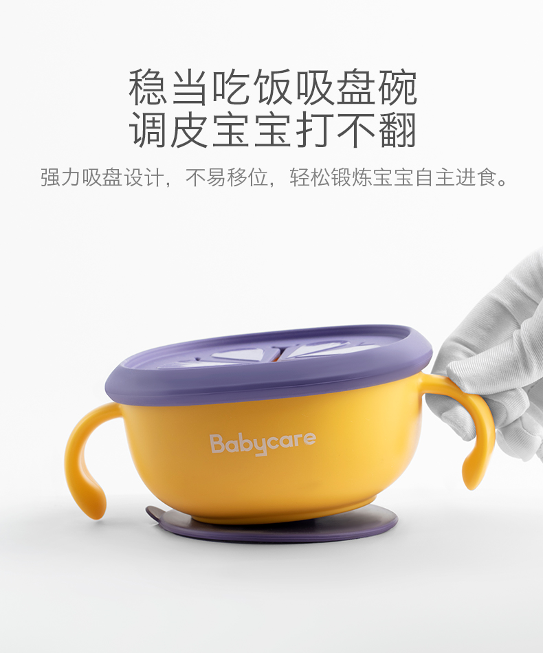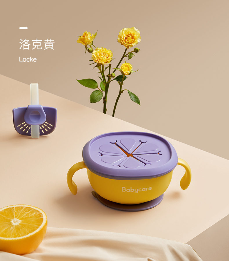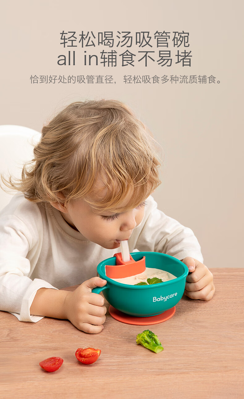 babycare宝宝吸管碗喝汤婴儿专用辅食碗吸盘碗三合一儿童吃饭餐具 洛克黄