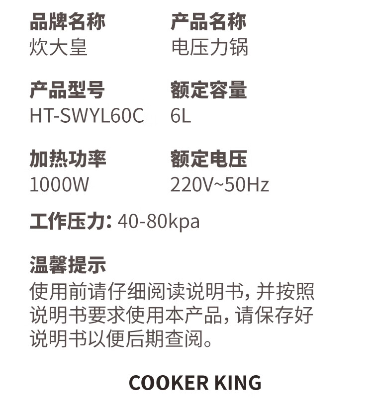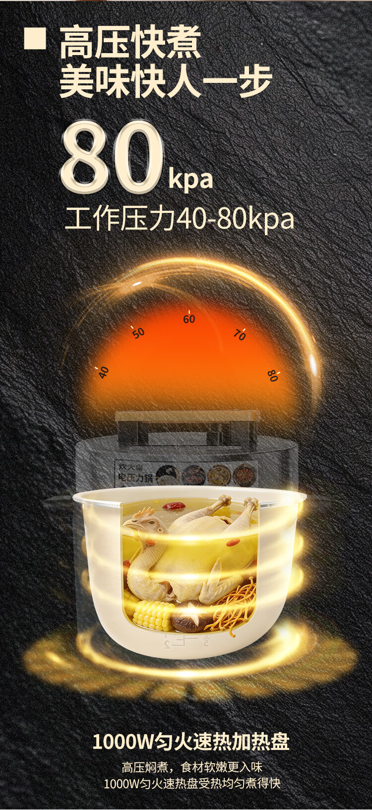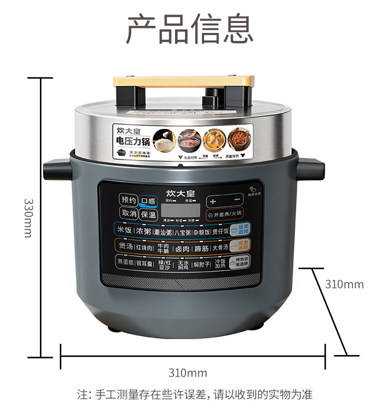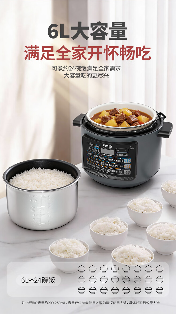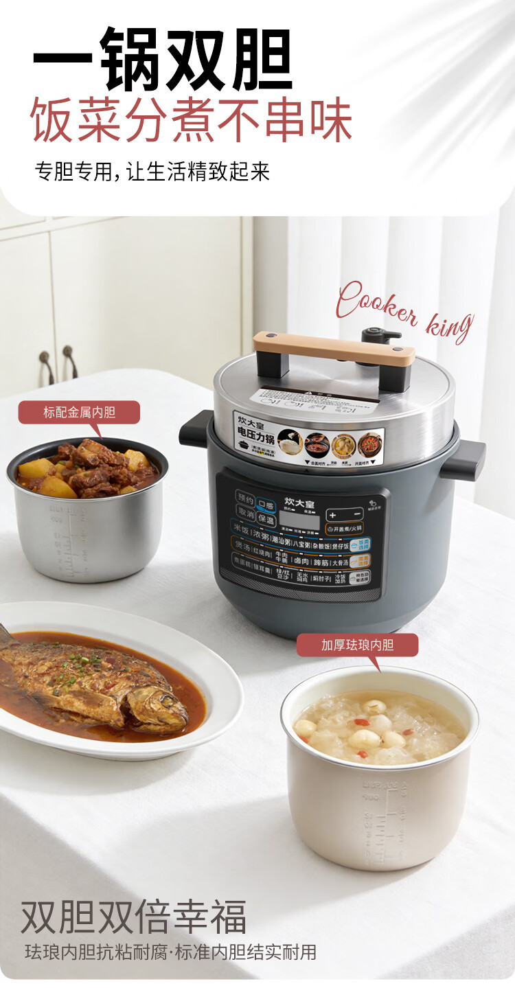 炊大皇(COOKER KING)电压力锅6L双胆家用全自动智能预约炖肉煲汤开盖压力锅 电压力锅 6L