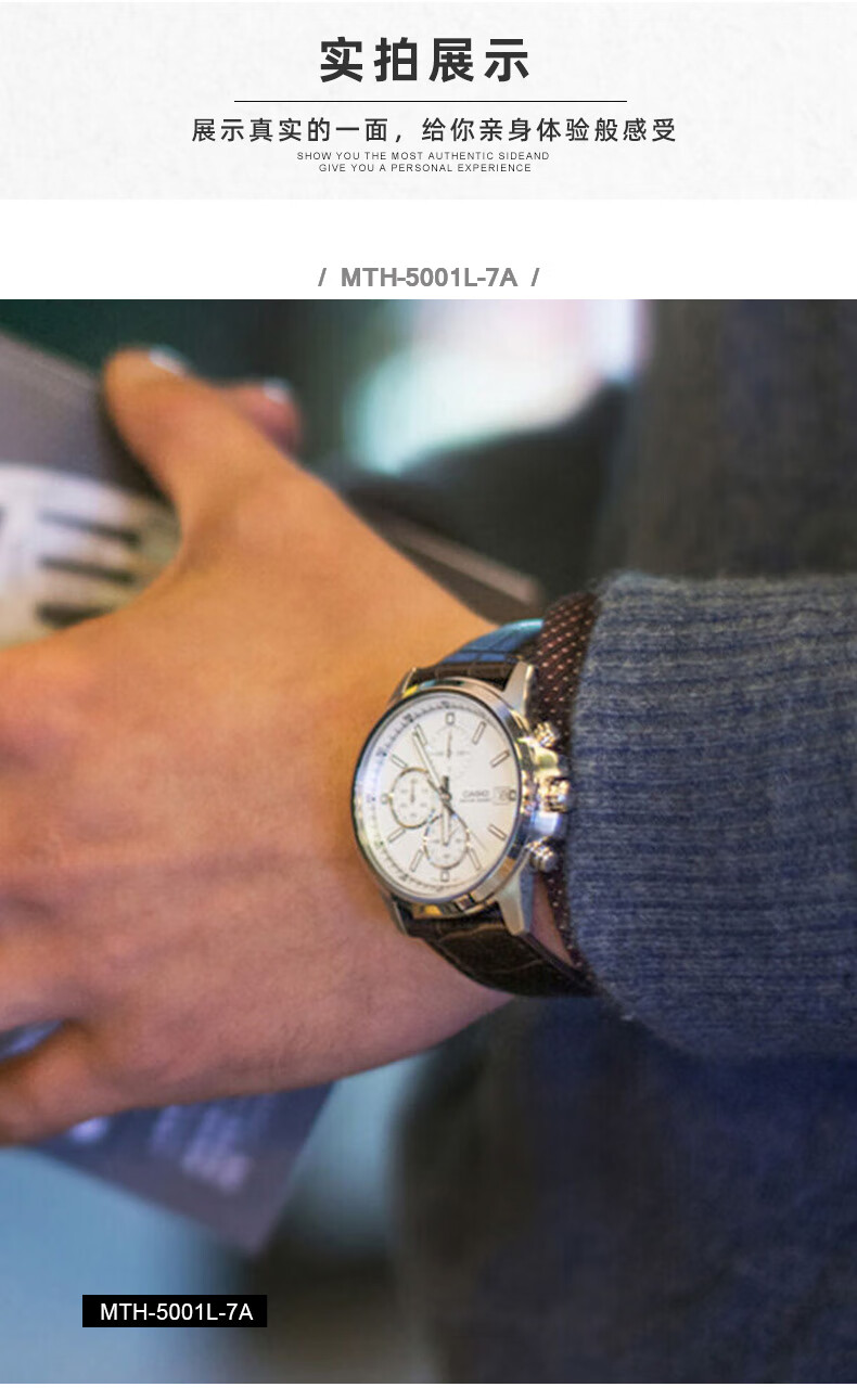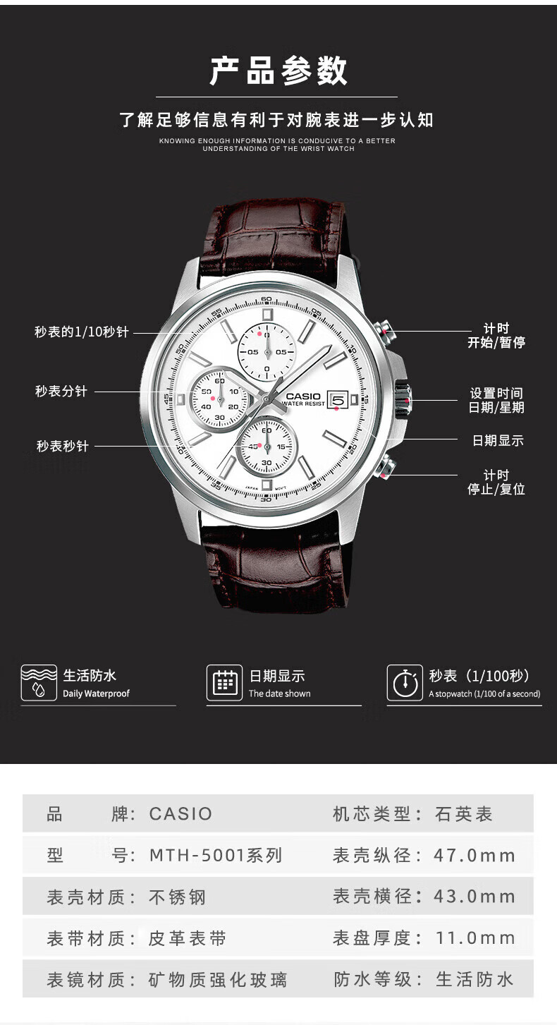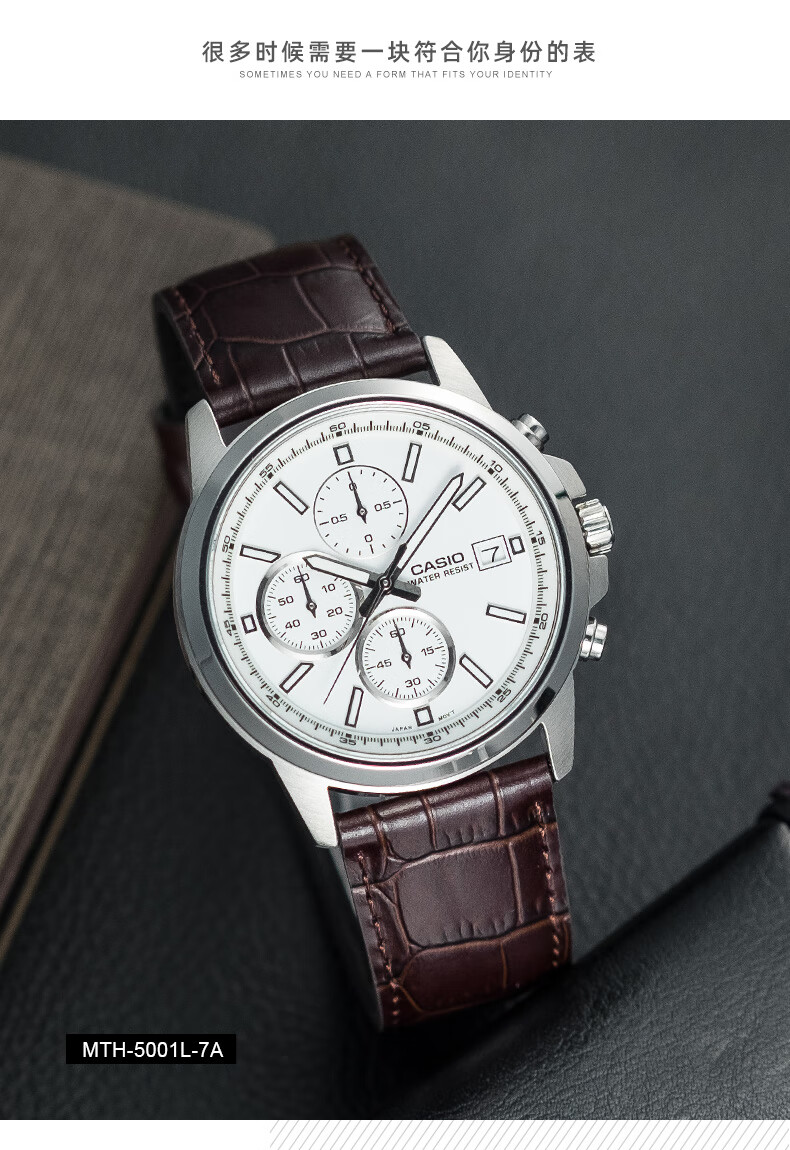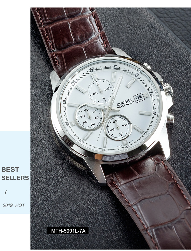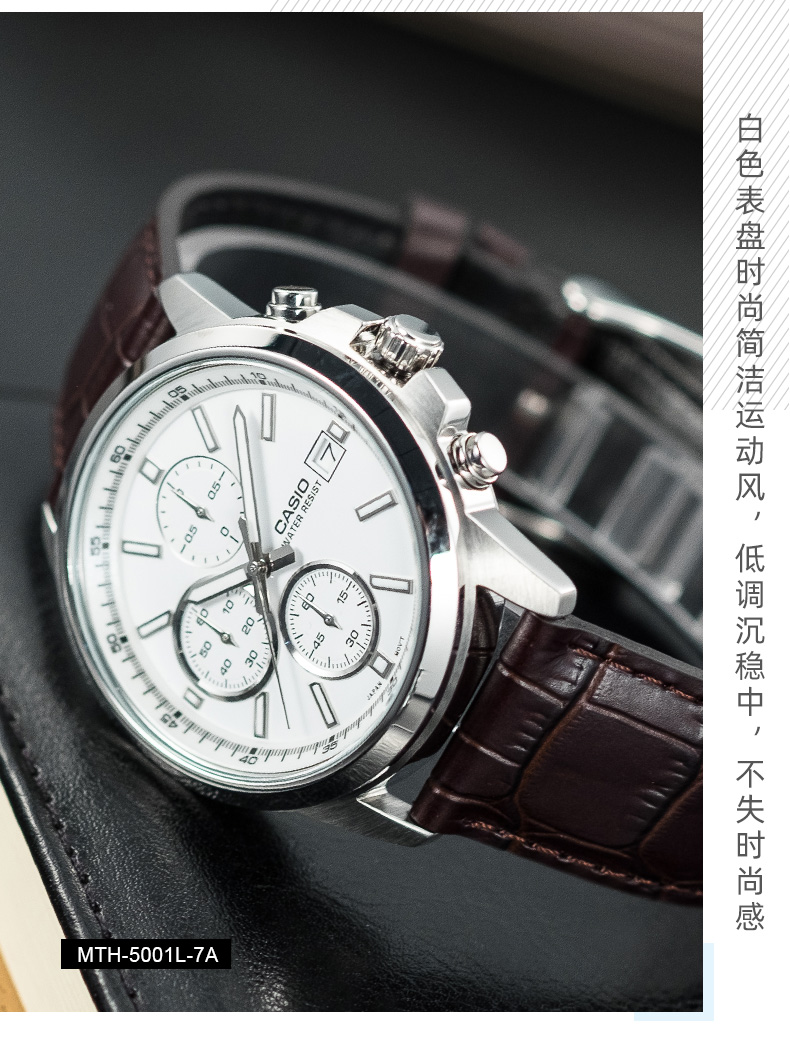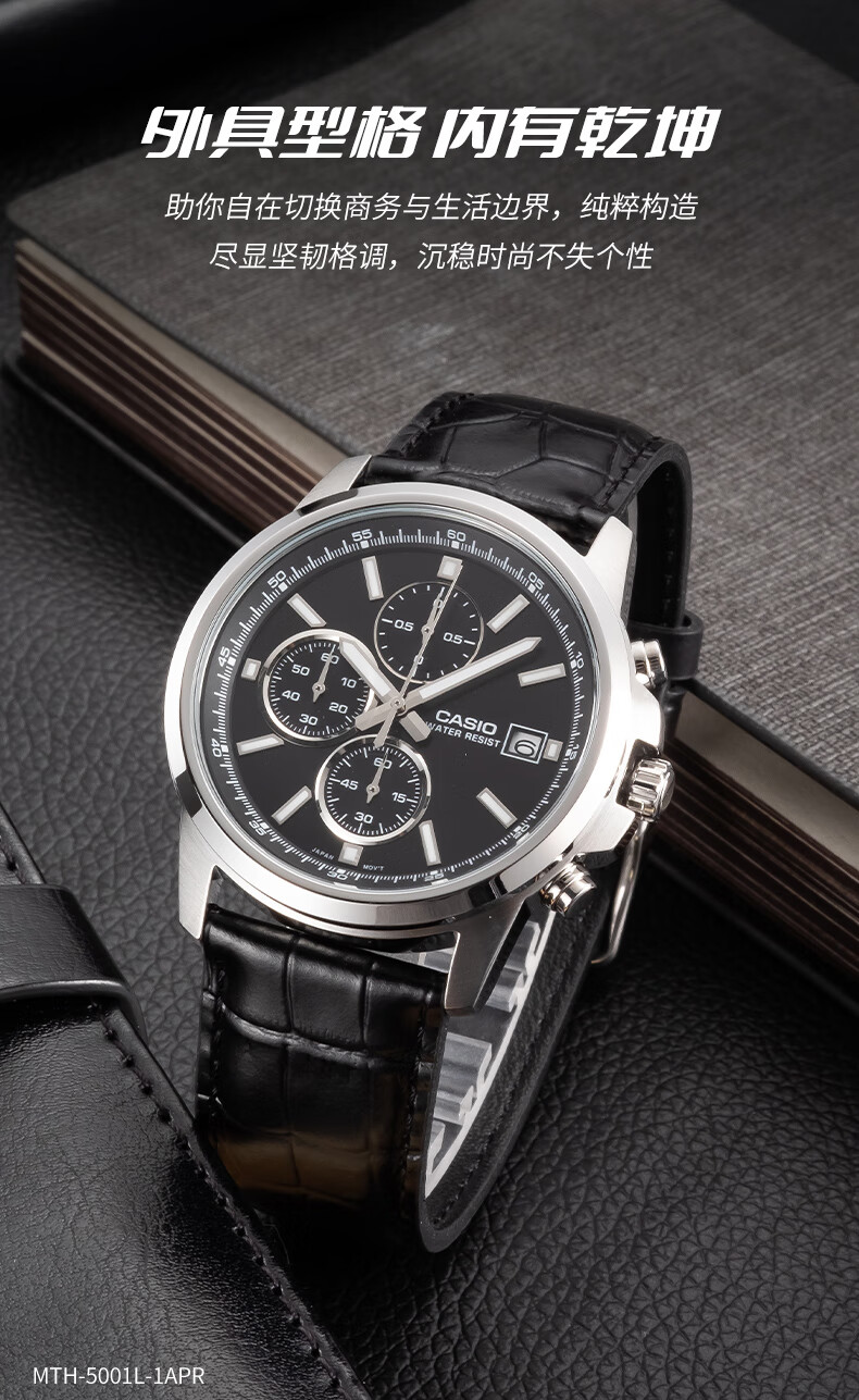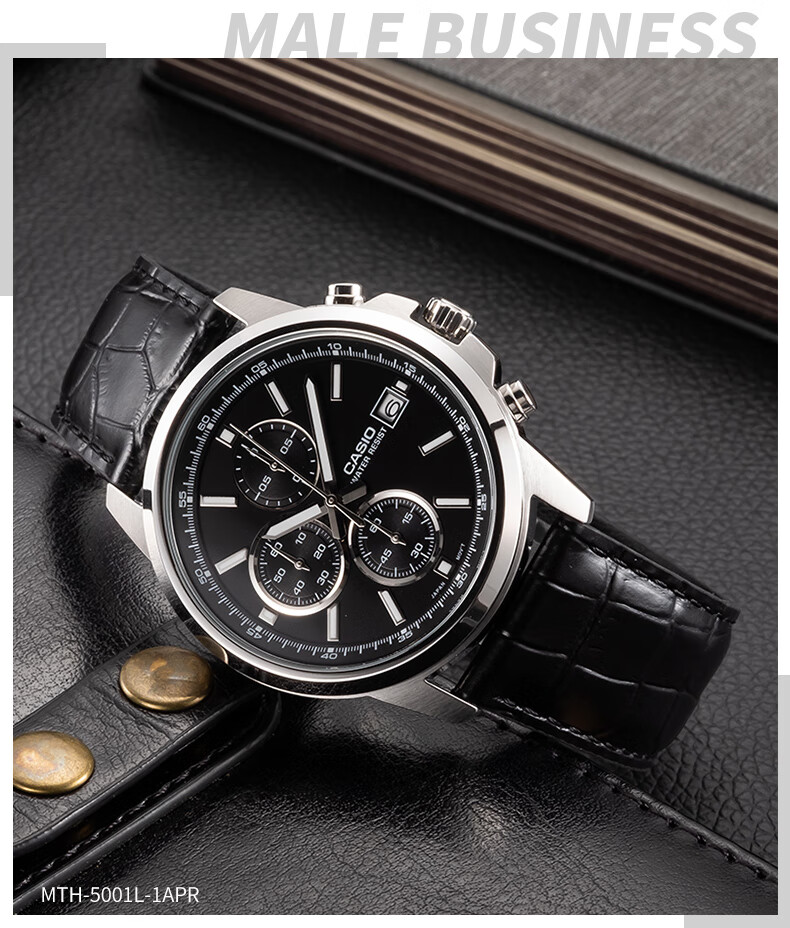 卡西欧(CASIO) 【全国联保】三眼皮带钢带商务休闲简约石英表学生男表MTH-5001 MTH-5001L-1A