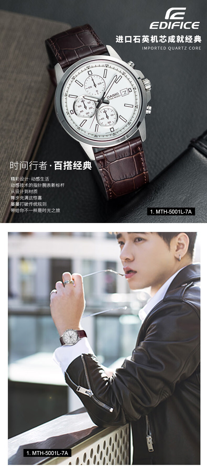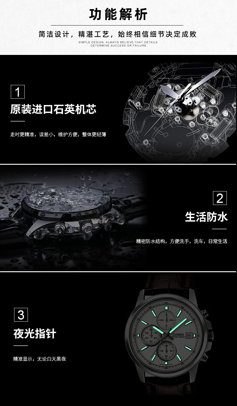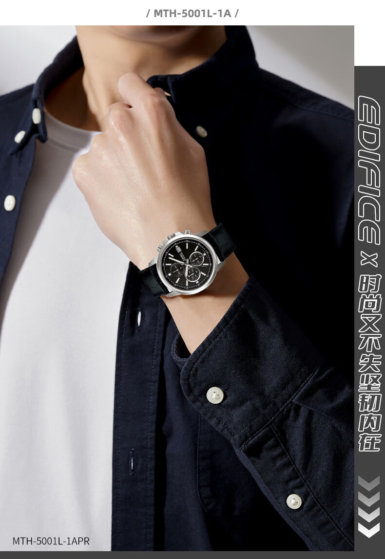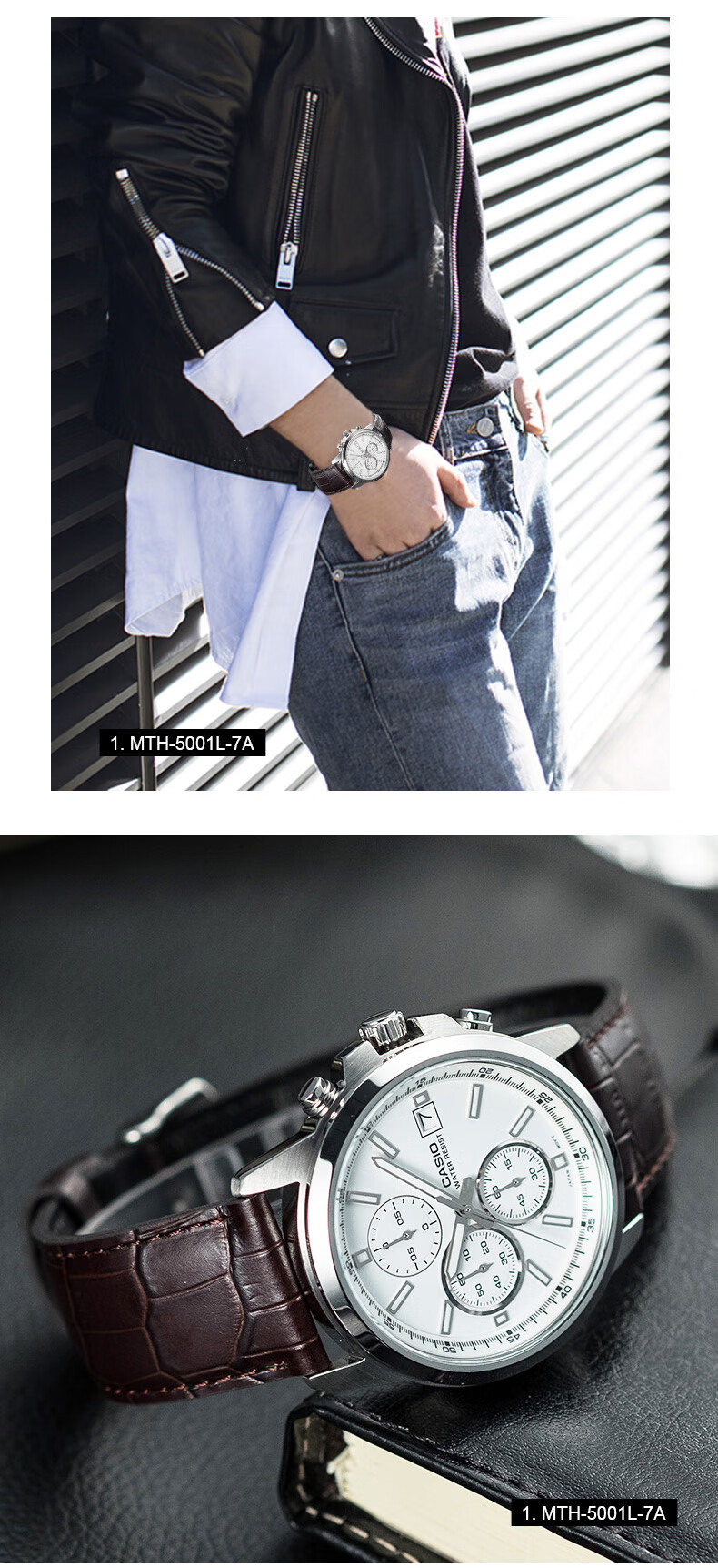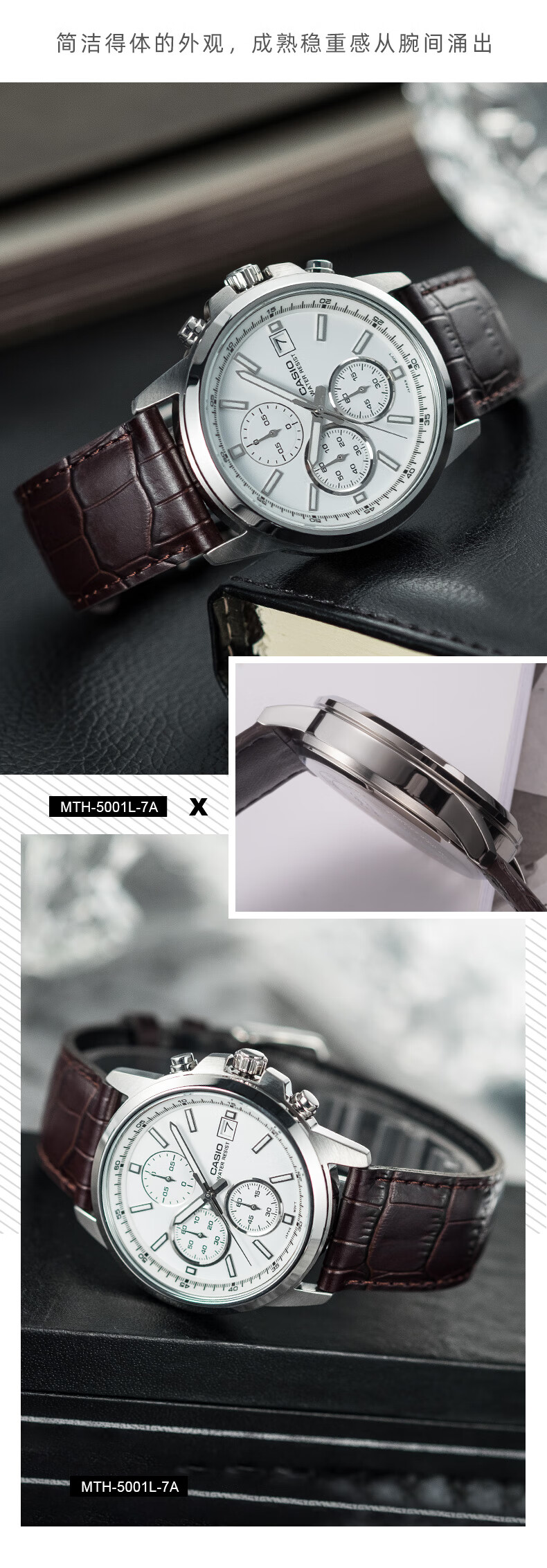 卡西欧(CASIO) 【全国联保】三眼皮带钢带商务休闲简约石英表学生男表MTH-5001 MTH-5001L-1A