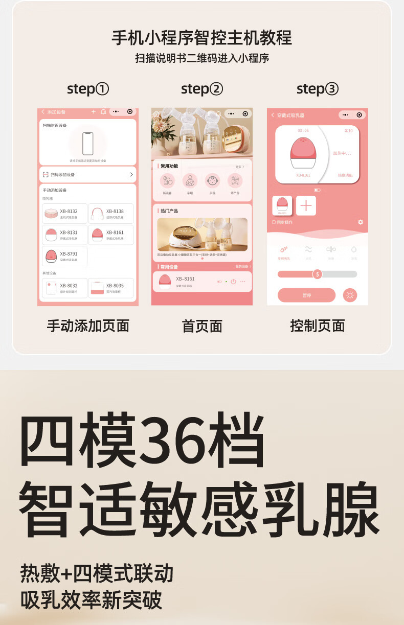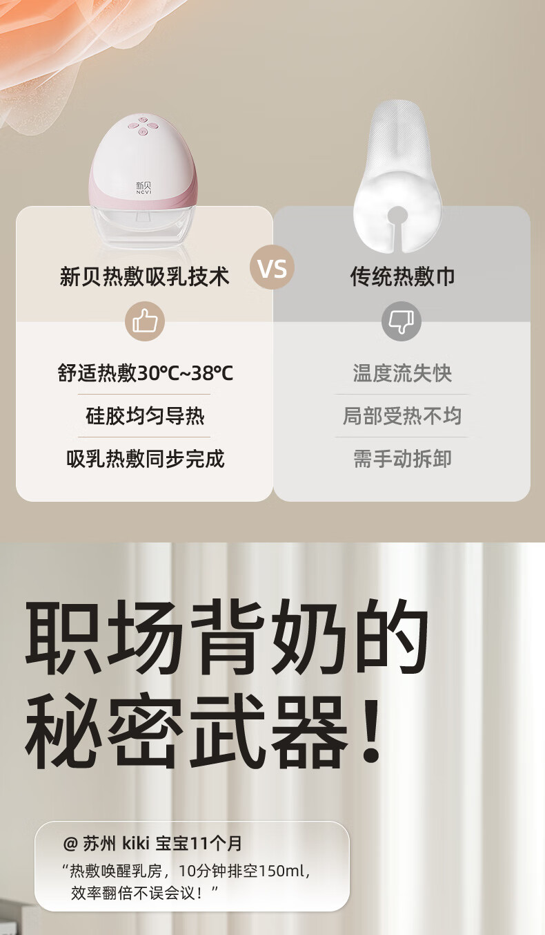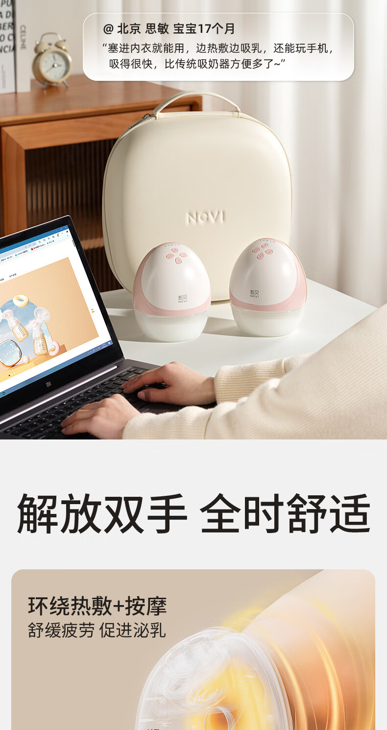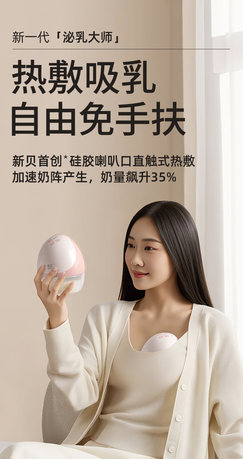 新贝吸奶器 电动一体穿戴免手扶无痛全自动热敷便携 手机双控8161