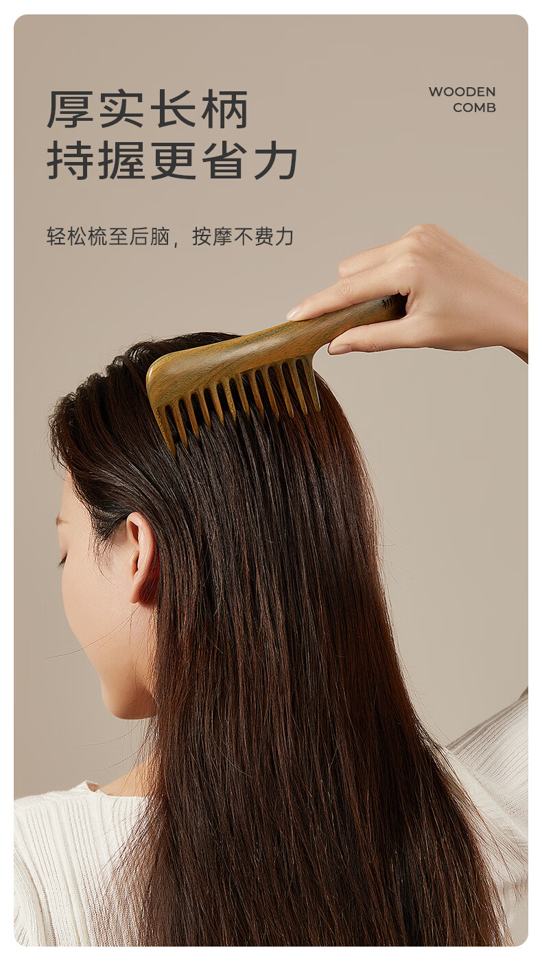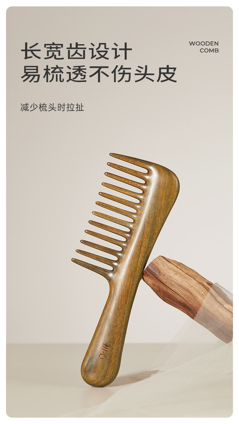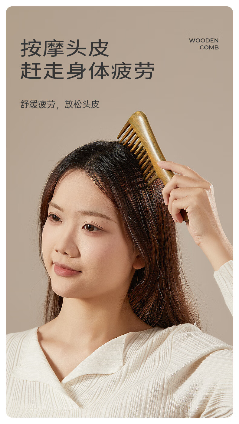 初心母亲节礼物檀木经络按摩梳长齿扁梳女士专用梳子顺发护发木梳 顺安梳