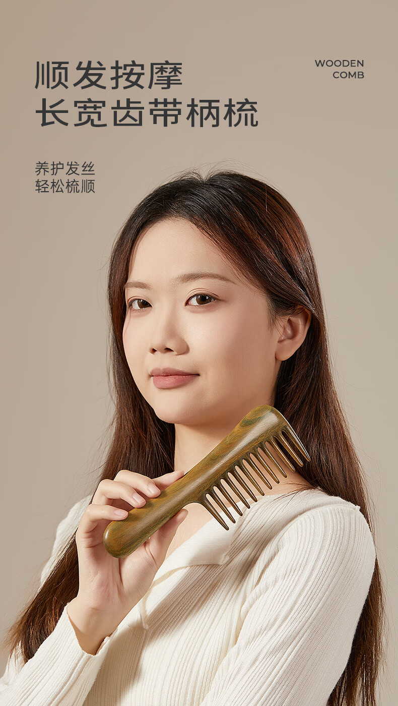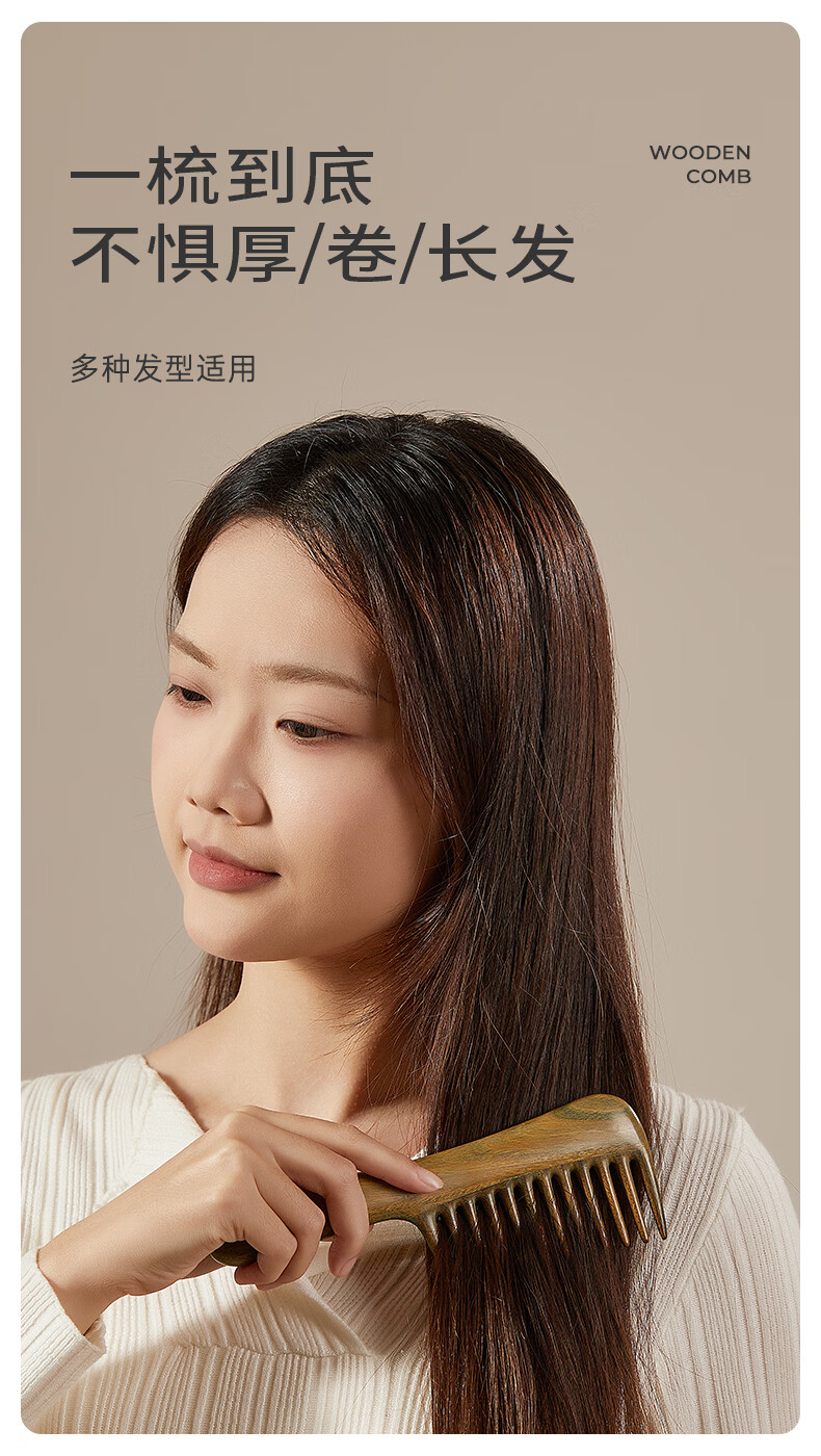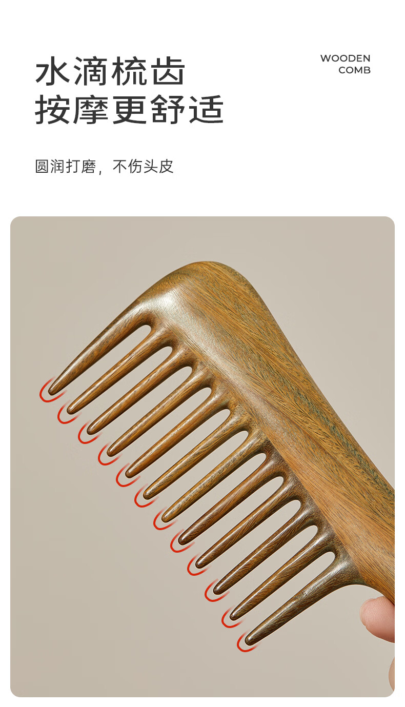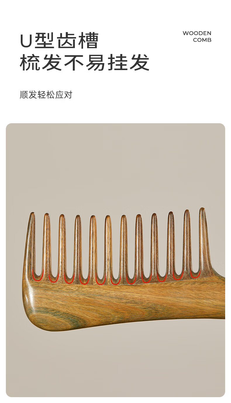 初心母亲节礼物檀木经络按摩梳长齿扁梳女士专用梳子顺发护发木梳 顺安梳