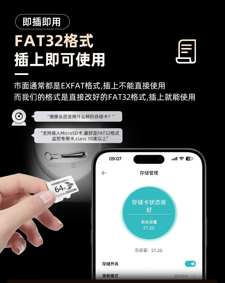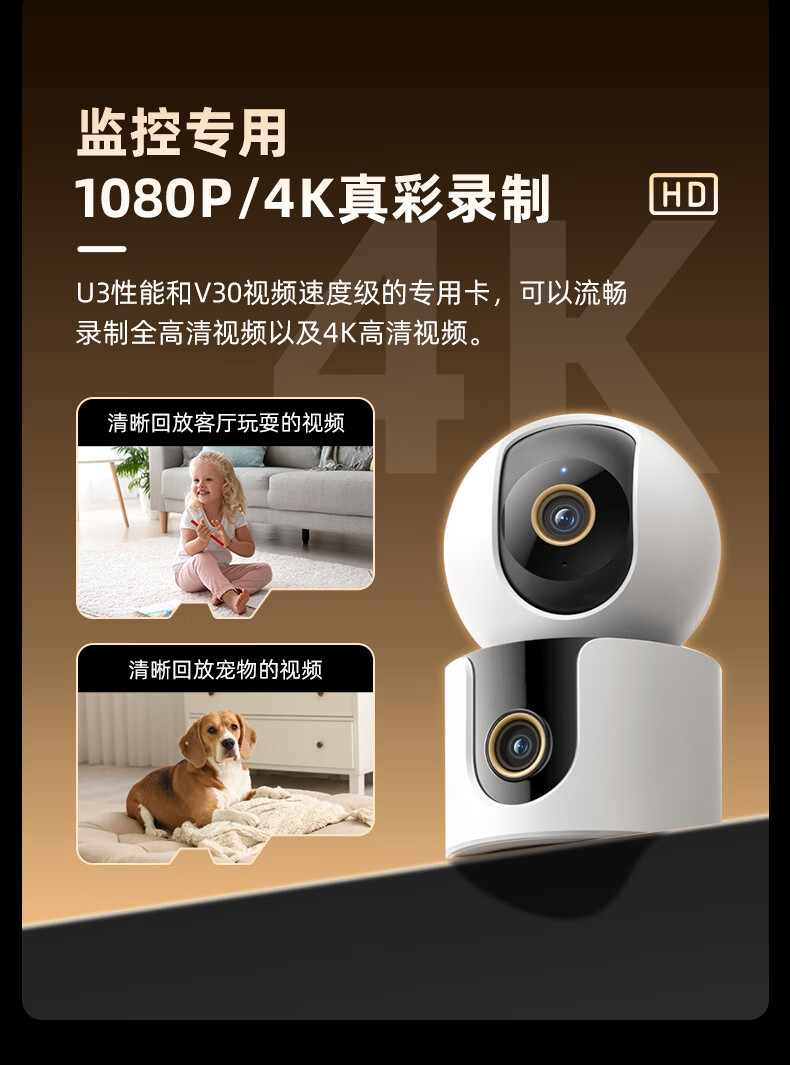 华存存储TF卡适用神眸监控摄像头内存卡高速Class10专用fat32格式循环录制Micro sd卡 TF256G【监控摄像头专用内存卡】配读卡器